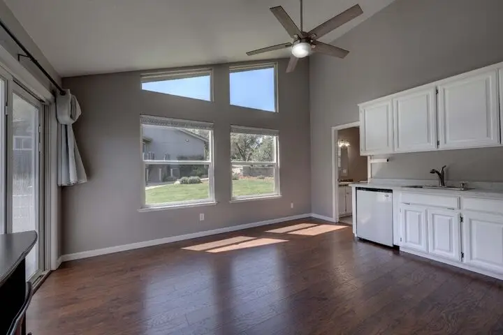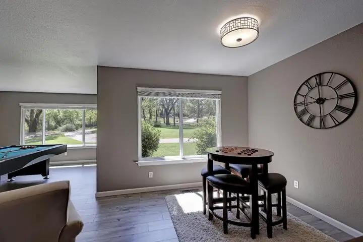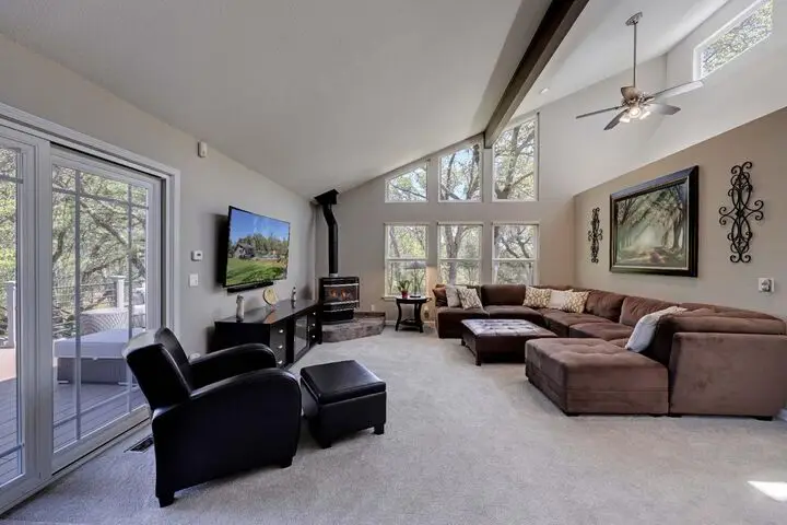 • Generous window views in living room