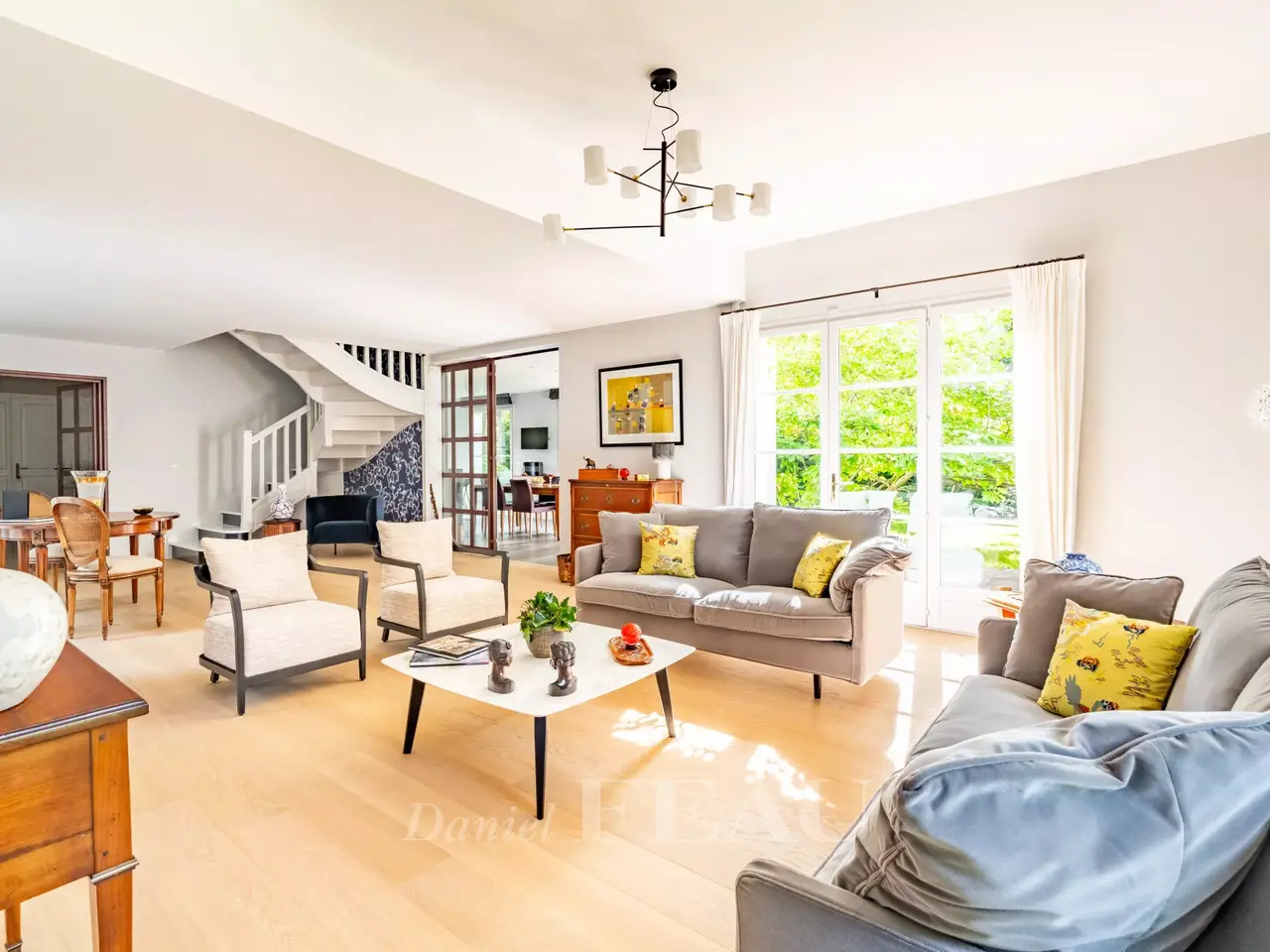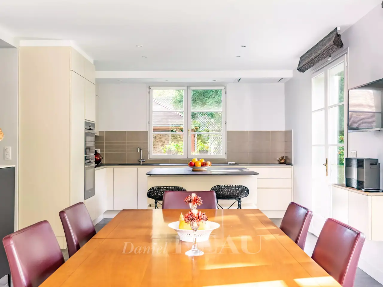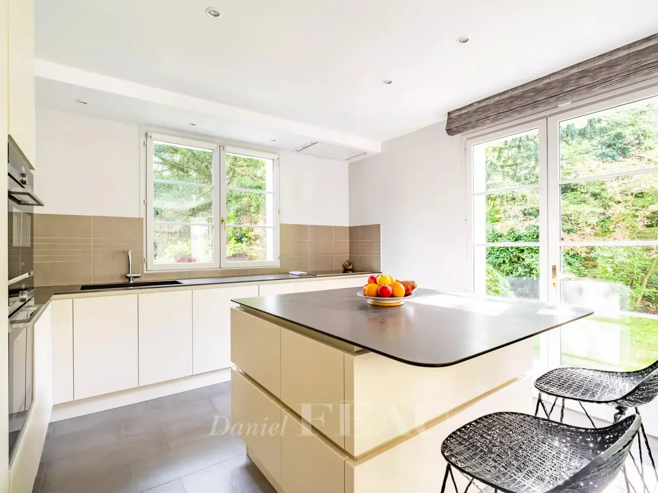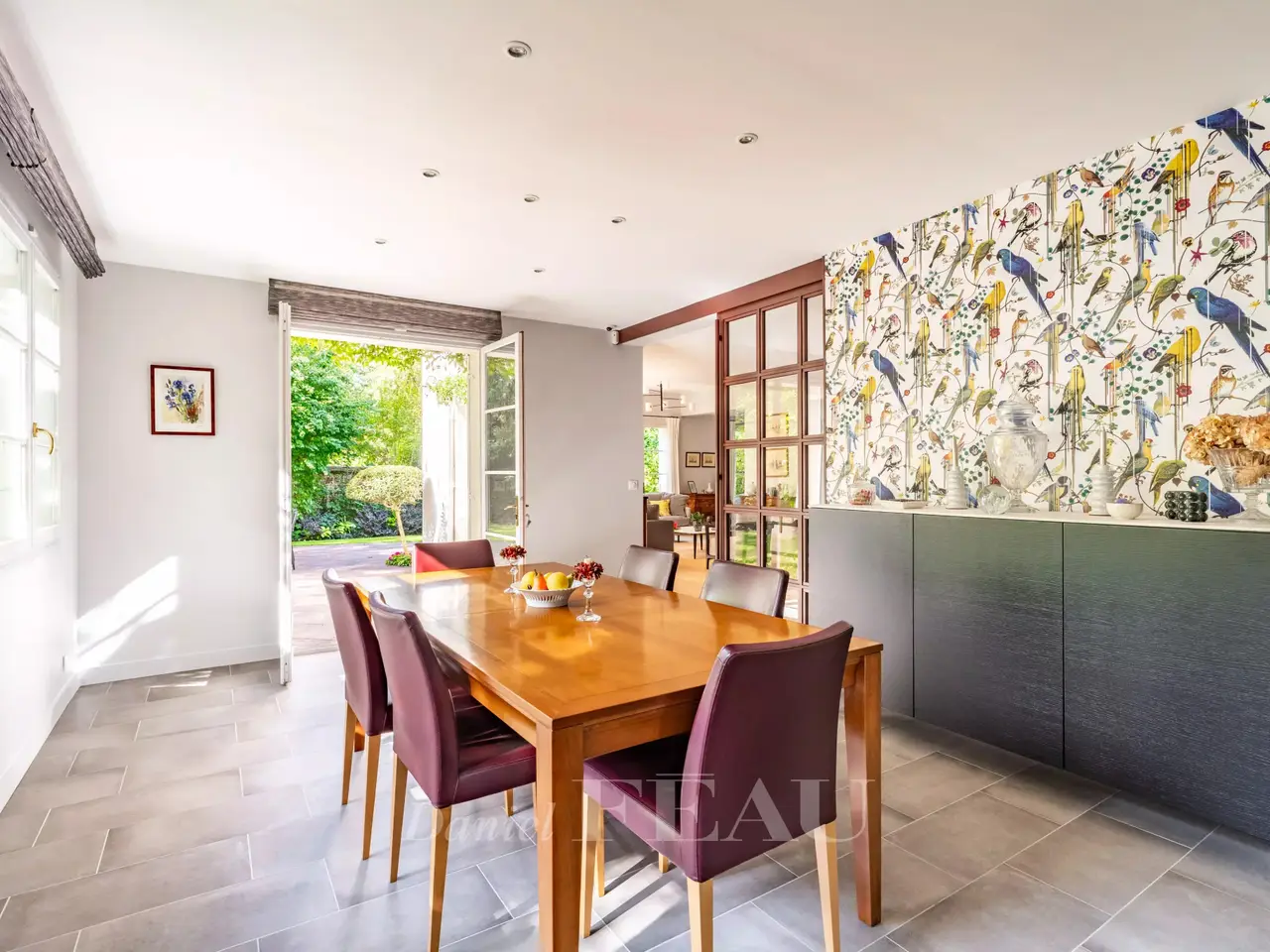 This superb contemporary property hidden from view in a leafy 1100 sqm garden on the edge of the forest offers 306 sqm of floor space and 285 sqm of living space. Set around a glazed central patio, it includes an entry with a cloakroom, a spacious living/reception room opening onto a terrace and the garden, an elegant kitchen with dining facilities, a dining room, and a utility room. It would be possible to create a ground floor bedroom if required. Upstairs a bright landing leads to a master suite with a bathroom and a dressing room, and three further bedrooms with a shower room. The fitted attic could create a spacious bedroom, a study or a recreation room. With a near 26 sqm annex comprising a garage, cycle storage premises and a self-contained apartment. The landscaped garden benefits from terraces and a paved carport. The property is beautifully appointed, benefiting from floor heating, double glazing, solid oak parquet flooring, motorized shutters and an alarm. The roofing has recently been renovated.