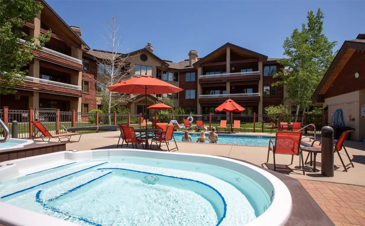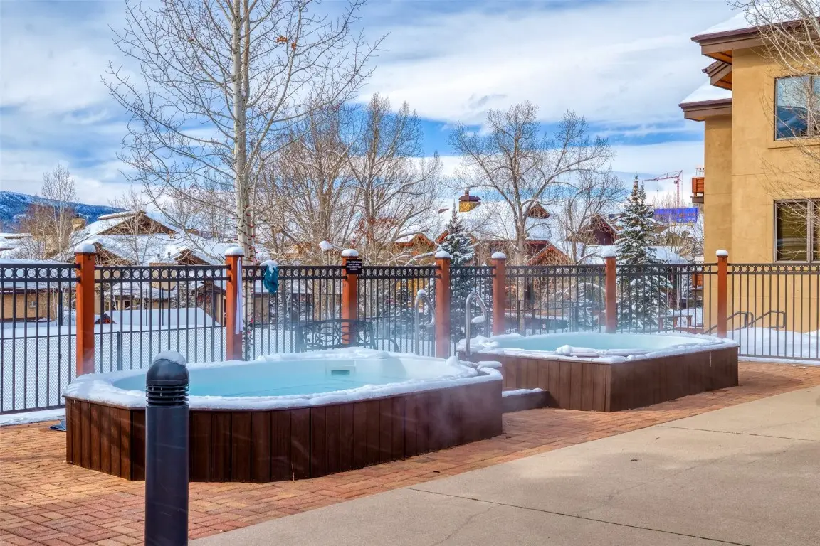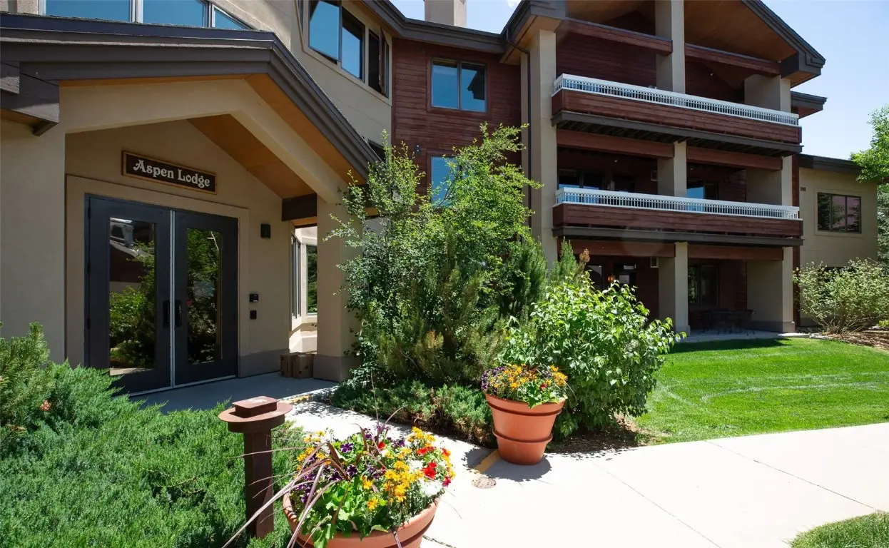 Aspen Lodge at Trappeur's Crossing is one of Steamboat's most highly coveted resorts just two blocks to the Steamboat Ski Area. The outstanding amenity package includes a friendly full-service front desk and check-in, multiple year-round heated pools, spa/hot tubs, fire pit, fitness center, tennis, underground parking with elevator access up and locked private storage closet, business center surrounded by beautiful, well-tended grounds. There is also a convenient shuttle service and owners are allowed to bring their dogs. This three bedroom, three bath ground floor condo is offered turn-key and features a gas fireplace, granite countertops and stainless appliances. It has a wonderful SW facing patio that provides walk out access to the pool, hot tubs and grill area. Large windows in the main living area provide ample natural light and views to Emerald Mountain. The primary bedroom has a full bath with jetted tub, closet and ample space. The second bedroom has its own bath and is opposite the living area providing plenty of privacy for family or guests and the third bedroom, the bunkroom gives the kids their own space. There are also multiple locked owner's closet in the unit itself. Beautifully furnished and ready for you to move right in. In the green zone for nightly rentals if you choose to offset costs through rental.  Steamboat Springs is a year-round destination. Walk (or shuttle) to world class skiing, Wild Plum Grocery and other mountain restaurants and night life. Aspen Lodge unit 4107 at Trappeur's Crossing is a rare opportunity to easily experience the very best of Steamboat Springs.