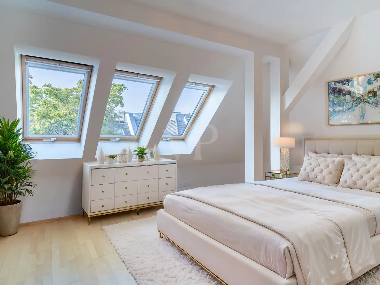 This exclusive top-floor apartment was built in 2010 in a handsome old building built in 1906, with stucco decorations on the façade. It towers over the entire historic part of the building. Due to war damage, the part of the building belonging to the old building was rebuilt in 1982. From here, the apartment can be easily reached via an elevator. Upon entering the apartment, the open-plan living area with its elegant fitted kitchen and adjoining sunny south-west-facing terrace immediately catches the eye. At the front of the property, in addition to the living area, there are two further rooms, ideal for use as bedrooms, children's rooms or guest rooms, as well as a daylight bathroom with shower. There is also a spacious checkroom and a utility room for storage. An eye-catcher is the elegant fireplace, which, in addition to its visual appearance, is also useful for warm and cozy moments on cold winter days. In addition to the partially covered terrace, which is also ideal for barbecues on sunny days, the living room has an exit with a view towards the Kudamm. The walk-through room, which leads to the rear of the apartment, is ideal for use as an office or home office. The adjoining hallway leads to the bright and spacious master bathroom and a practical utility room. The individual floor plan is completed by the cozy master bedroom with integrated dressing room. There are numerous bicycle parking spaces in the inner courtyard. A large cellar unit is assigned to the apartment. Underground parking spaces can be rented at REWE, which is a 5-minute walk away.