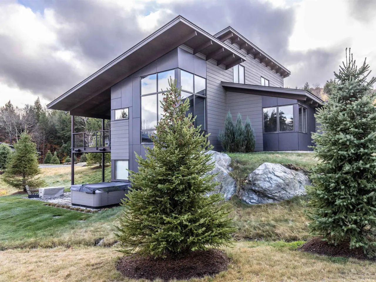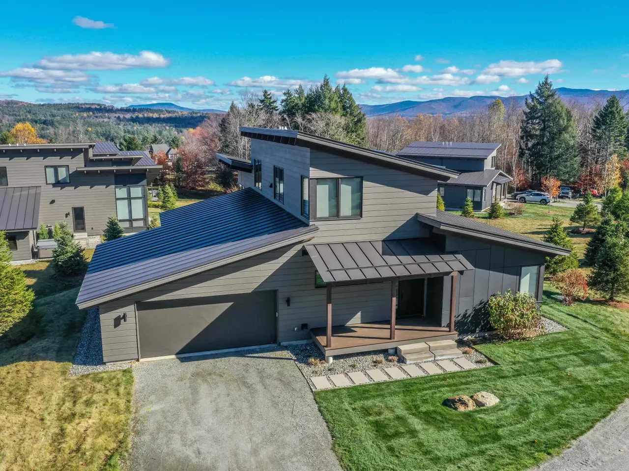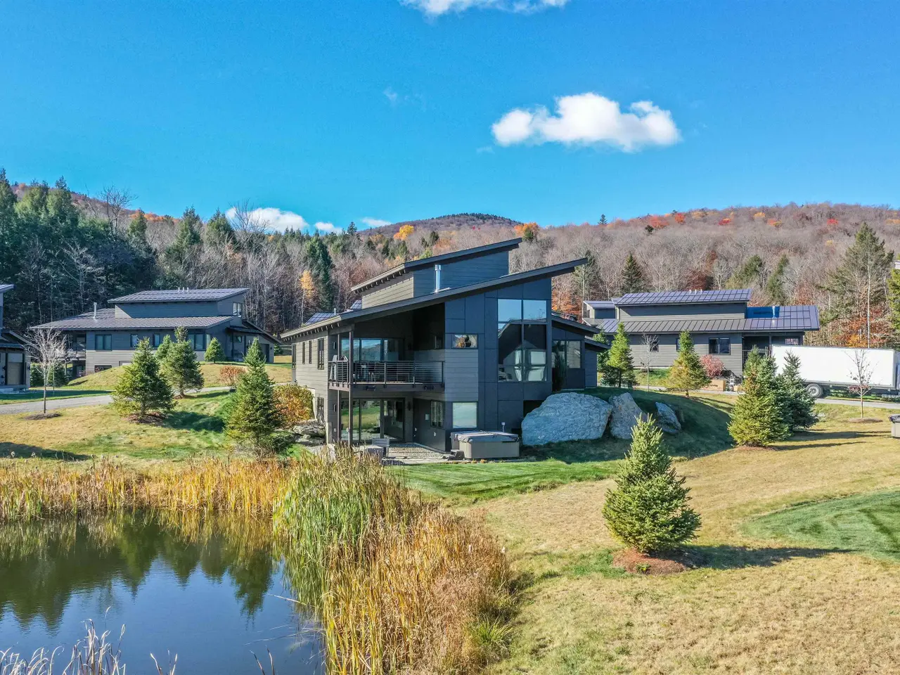 Wildewood offers a year-round residential experience immersed in nature, just minutes from Stowe Mountain Resort. The “Birches” home features four bedrooms and three floors of beautifully finished living space, including a covered porch, a spacious first-floor primary suite, and a bright walk-out level with a second bedroom suite and inviting family room. This meticulously crafted Mountain Modern residence showcases open-concept living areas with soaring ceilings, refined finishes, and a dramatic faux-steel-clad gas fireplace as a stunning centerpiece. Step outside and embrace the outdoors—enjoy the community pond for summer fishing or winter skating, or set out on the Catamount Trails for walking, snowshoeing, and cross-country skiing. Summer amenities include tennis courts, a swimming pool, and easy access to nearby hiking trails. At Wildewood, every day is an invitation to reconnect—with nature, with friends and family, and with the simple joy of Vermont living.