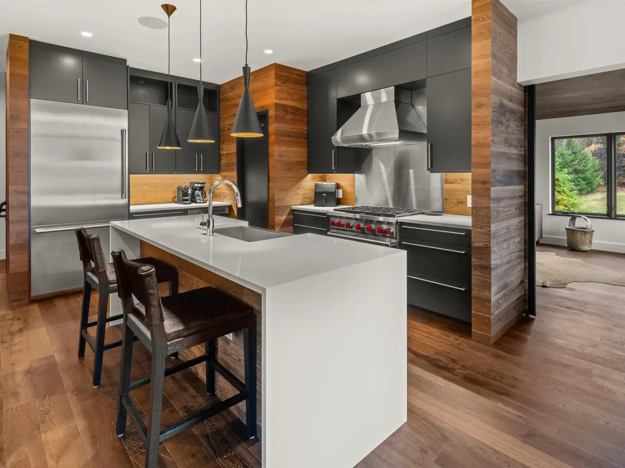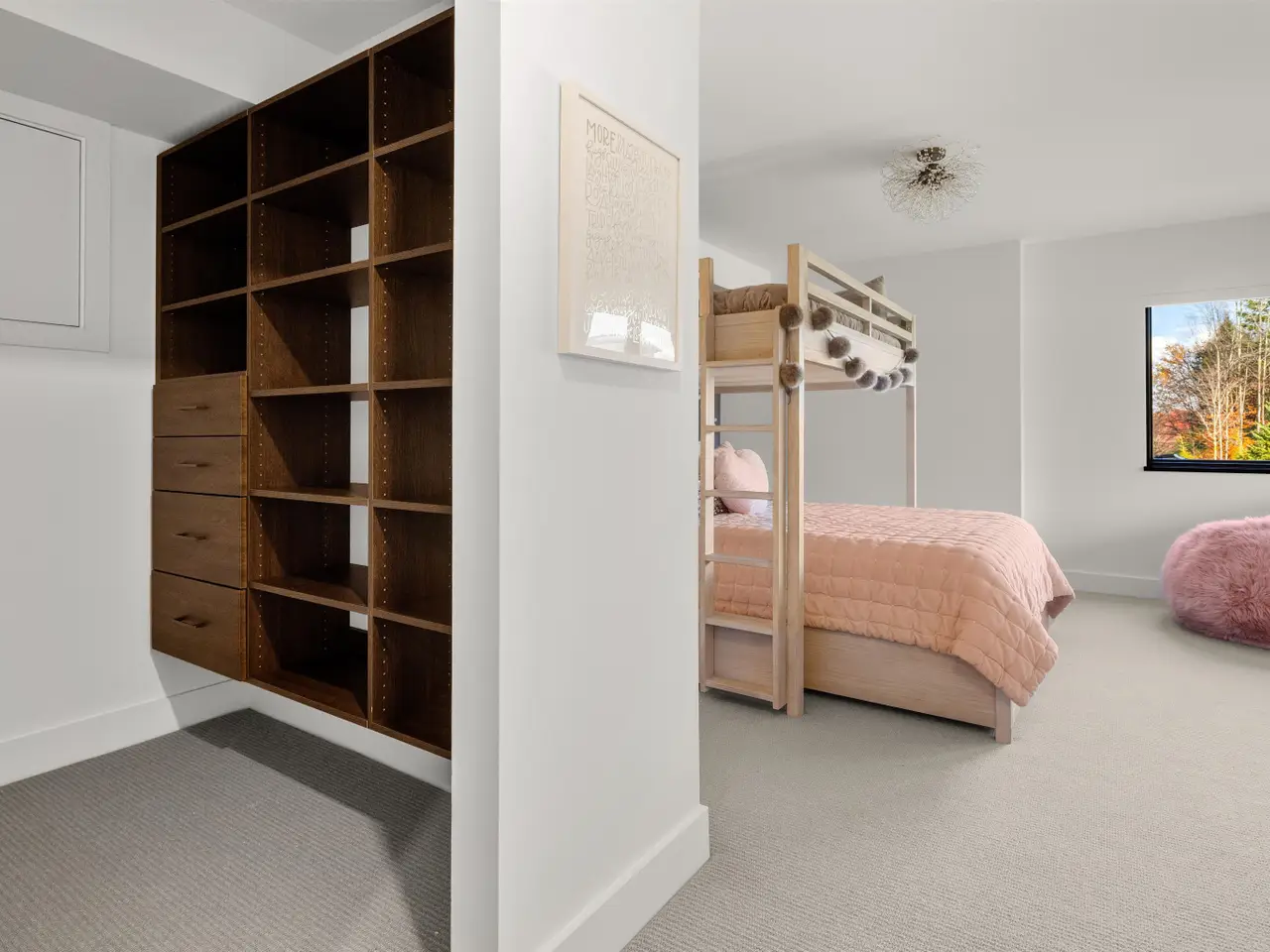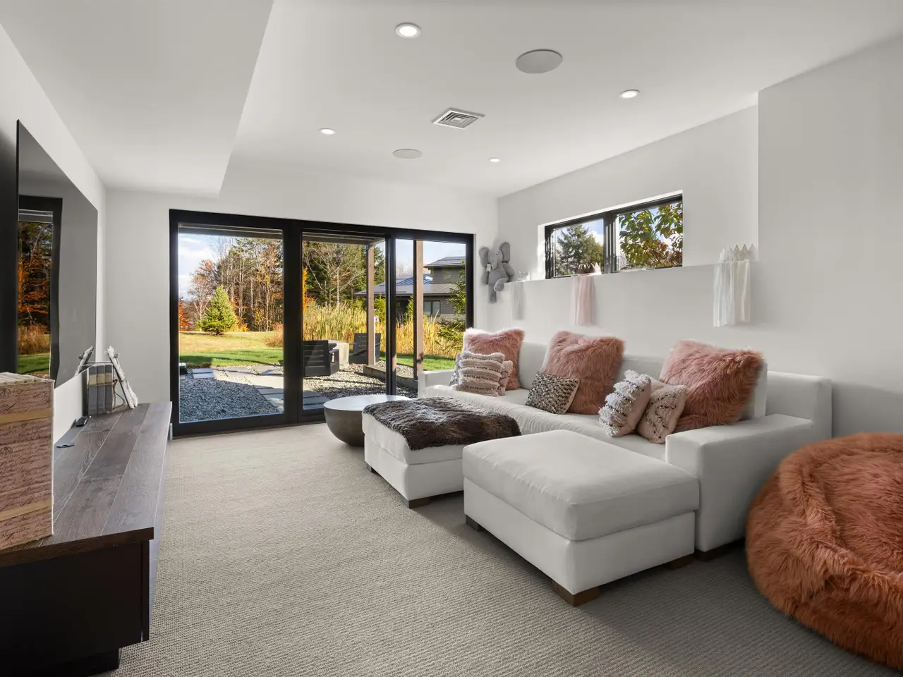 Wildewood offers a year-round residential experience immersed in nature, just minutes from Stowe Mountain Resort. The “Birches” home features four bedrooms and three floors of beautifully finished living space, including a covered porch, a spacious first-floor primary suite, and a bright walk-out level with a second bedroom suite and inviting family room. This meticulously crafted Mountain Modern residence showcases open-concept living areas with soaring ceilings, refined finishes, and a dramatic faux-steel-clad gas fireplace as a stunning centerpiece. Step outside and embrace the outdoors—enjoy the community pond for summer fishing or winter skating, or set out on the Catamount Trails for walking, snowshoeing, and cross-country skiing. Summer amenities include tennis courts, a swimming pool, and easy access to nearby hiking trails. At Wildewood, every day is an invitation to reconnect—with nature, with friends and family, and with the simple joy of Vermont living.
