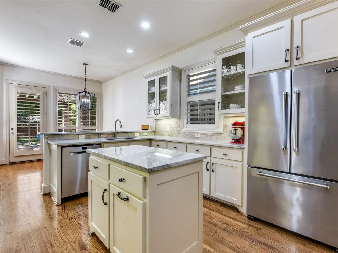 Beautiful Vickery Place Home offers prime convenience to Knox Henderson, Lower Greenville, Hwy 75, and an array of shops and dining. Recently painted with refinished floors throughout, the interior shines with natural light. The open floor plan includes a first-floor guest suite, private study with built-in cabinets and desk, and a spacious family room with custom built-ins and a wall of windows overlooking the backyard. Plantation shutters on all windows add timeless style and privacy.The chef's kitchen boasts stainless steel appliances, double ovens, and a butler's pantryperfect for entertaining. Upstairs features a versatile second living area, two secondary bedrooms, and a laundry room with sink and storage. The generous primary suite offers two custom walk-in closets for ultimate organization.A private gate opens to a thoughtfully designed backyard with a covered patio, grassy area, and two-car garageideal for both relaxation and entertaining.