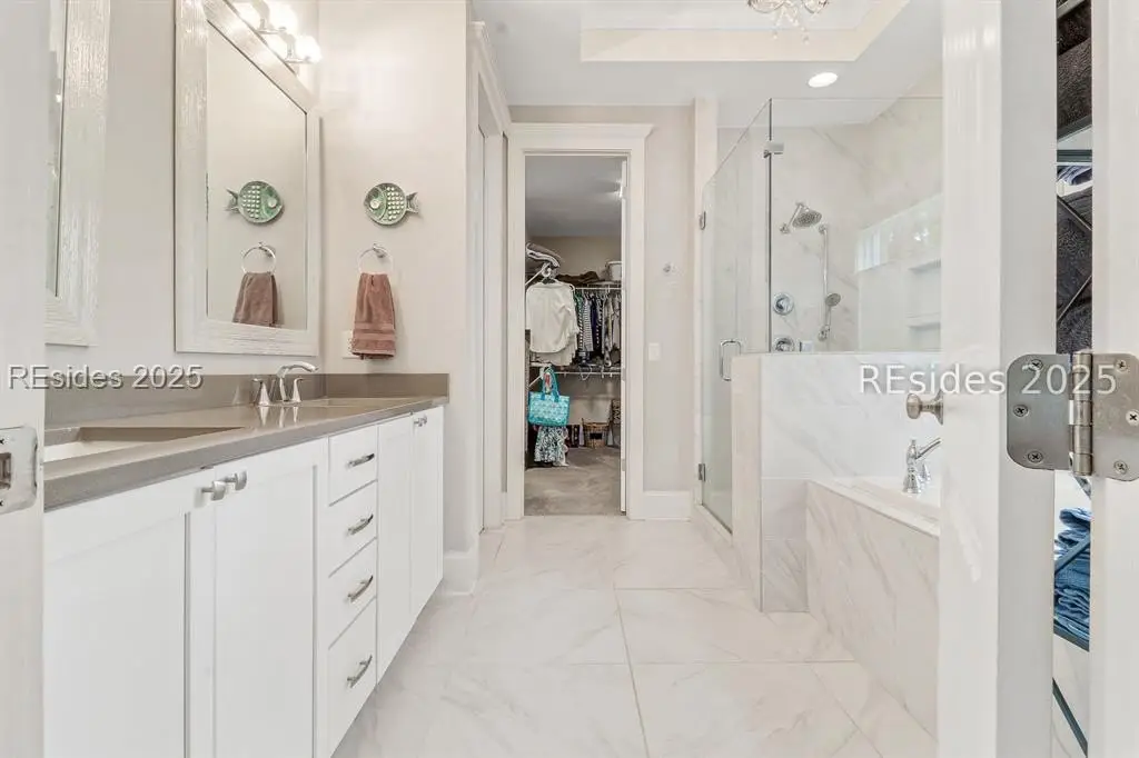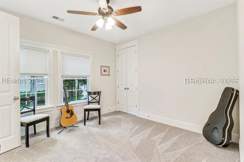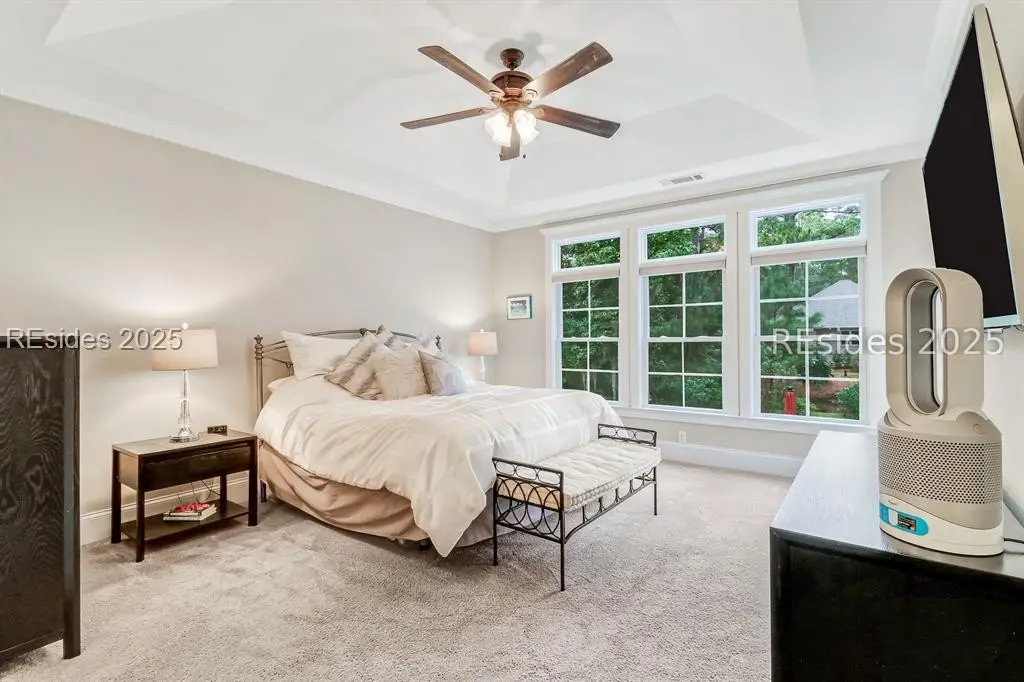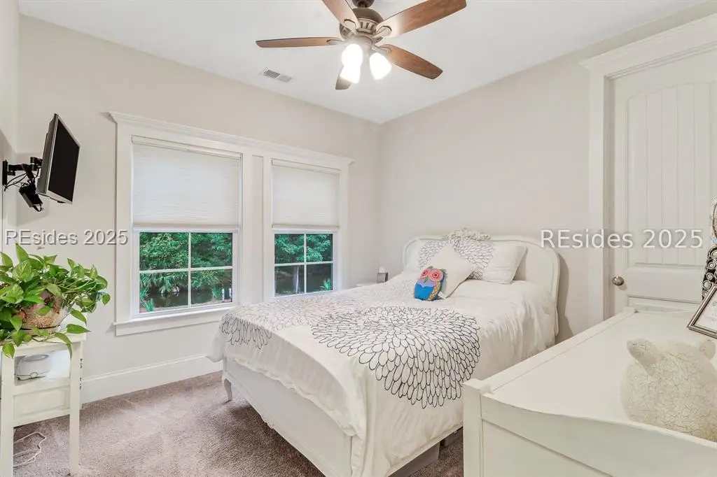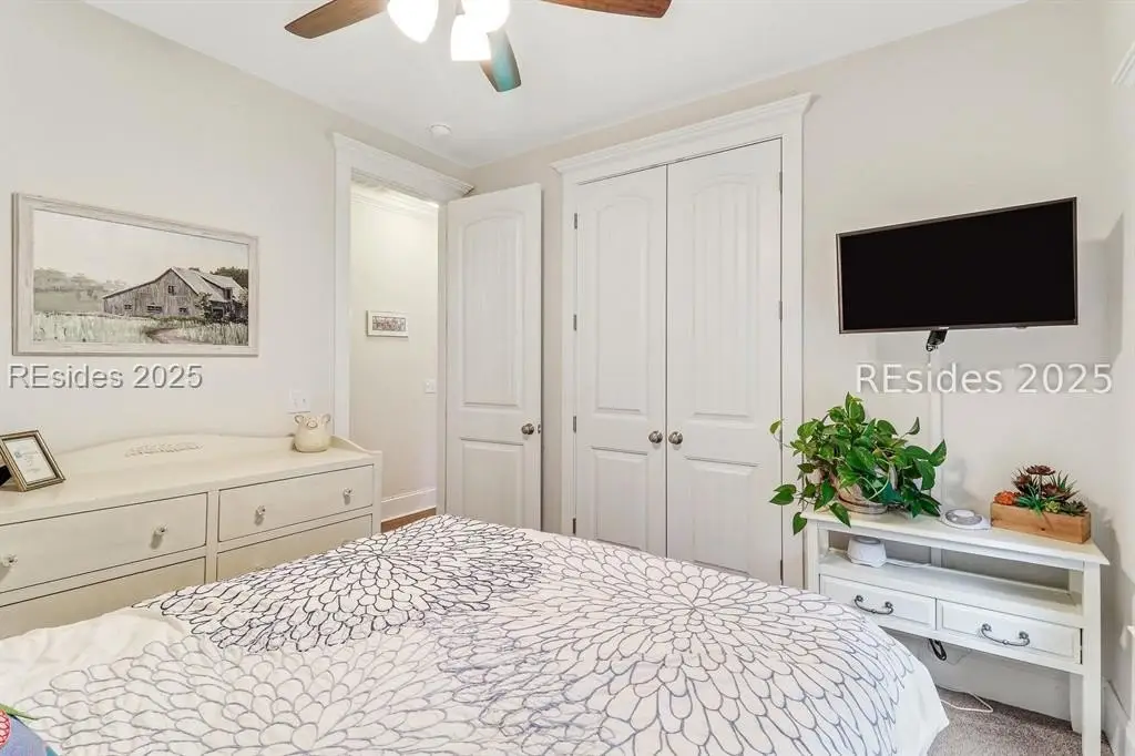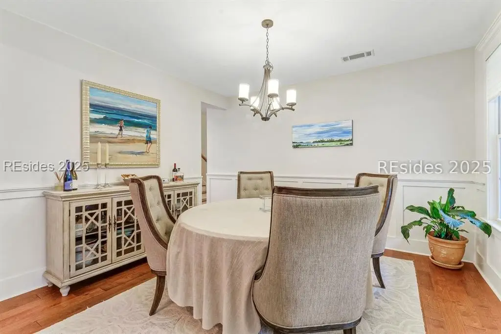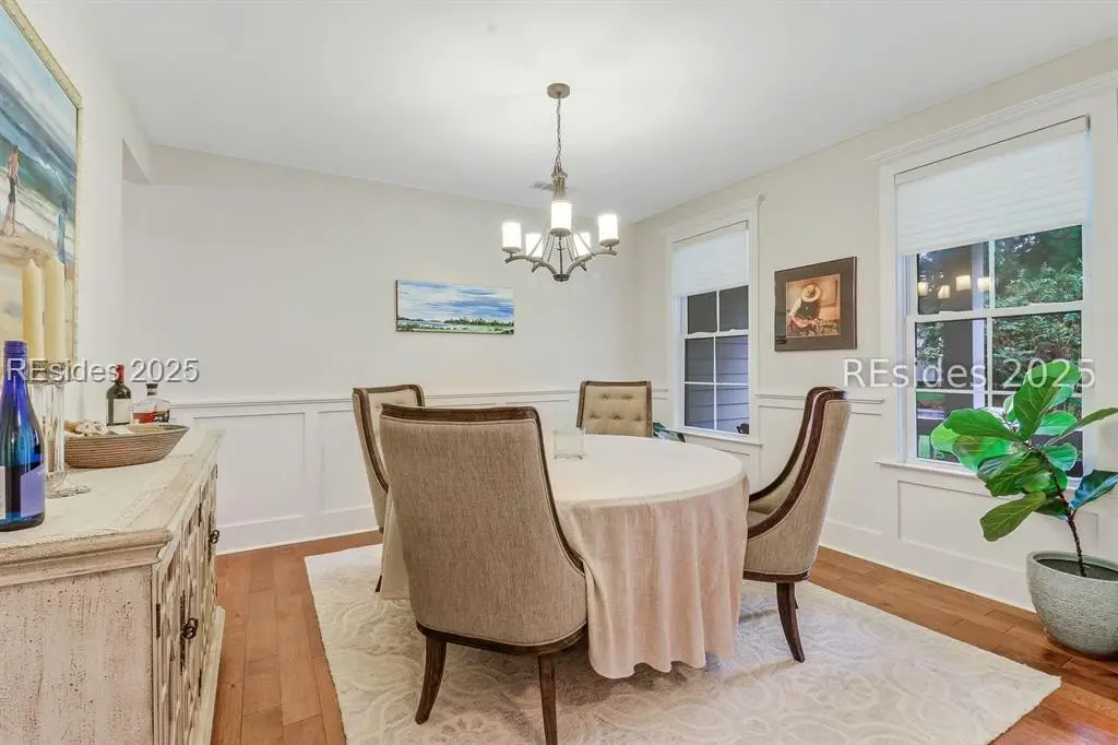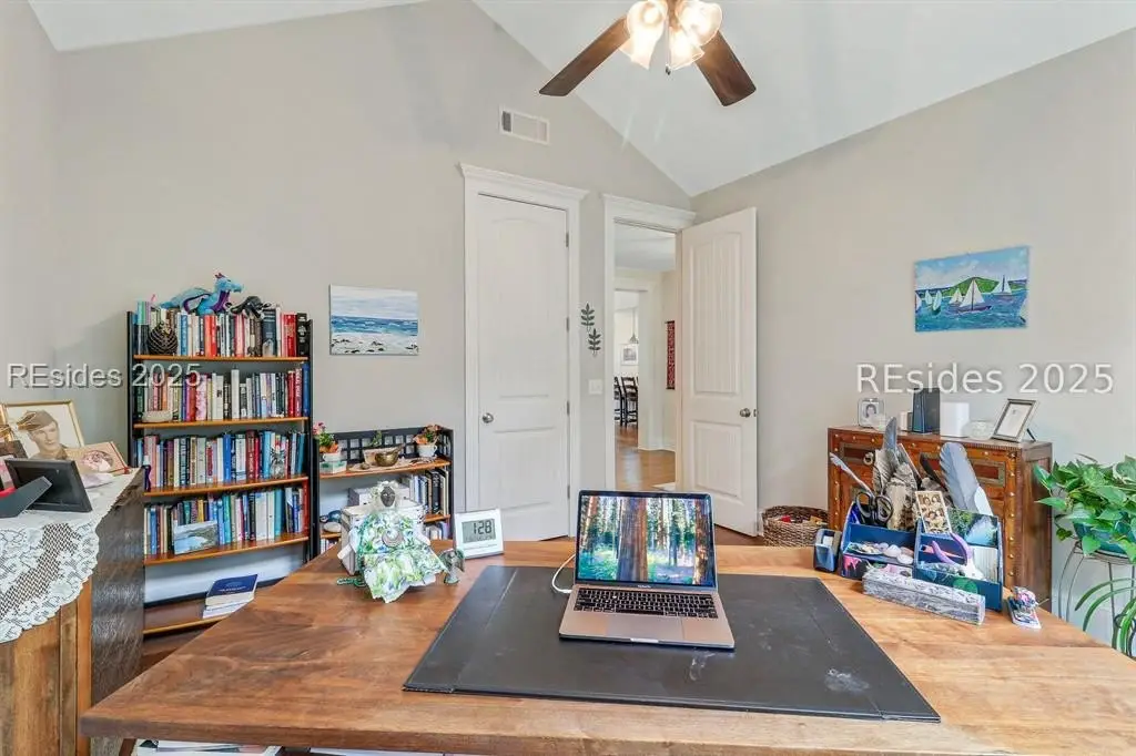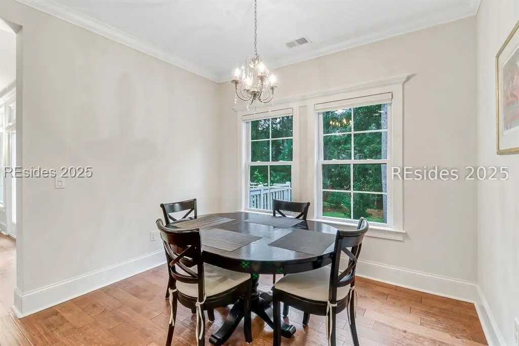 Pristine, 9 years young residence with excellent curb appeal & sweeping lagoon views on quiet cul de sac street in amenity rich Moss Creek. Interior features include smooth vaulted/tray ceilings, wood flooring, quartz counters, excellent natural light/walls of windows to view including transom & Palladian windows, impressive custom millwork (crown molding, chair rail, over height baseboards, wainscoting, etc.), built-ins and cabinetry/vanities by master craftsmen, high end stainless steel appliance package including new Wolf range/oven, 8 ft. 1st floor interior doors, gas fireplace with brick hearth/surround, designer fixtures/hardware, recessed/pendant/under cabinet lighting, ceiling fans, custom window treatments, 1 new HVAC system and ample closet/storage space throughout home. Very livable & popular floor plan boasting impressive island kitchen w/4 seat breakfast bar open to great room, formal/casual dining, den/study, laundry rm, powder rm, oversize 2 car garage and excellent BR separation w/4 BRs including expansive primary BR w/well-appointed bath & huge walk-in closet. Exterior offers attractive/durable Hardie board siding, charming covered front porch, carriage lighting, private rear deck & brick paver grilling patio, lush sub-tropical garden, specimen trees, mature lawn & large back yard. All centrally located between gated front entry and top-notch amenities in this preferred private club community offering some of the most breathtaking scenery anywhere in the Lowcountry!