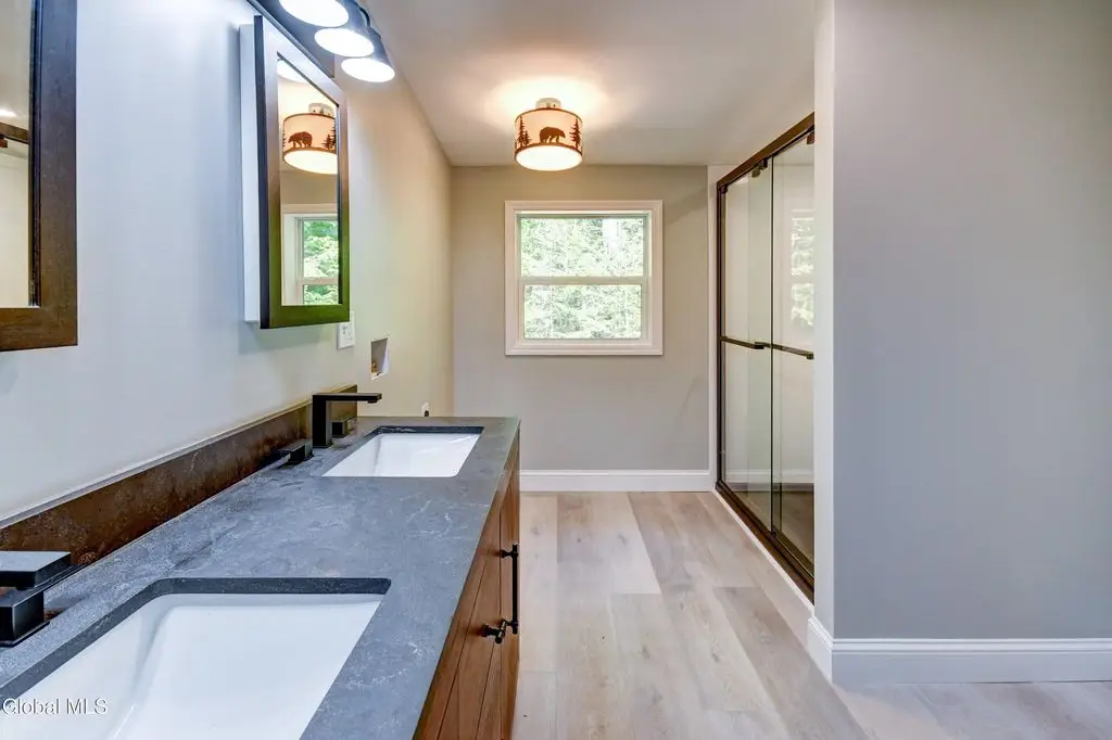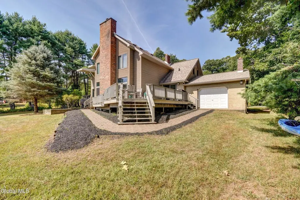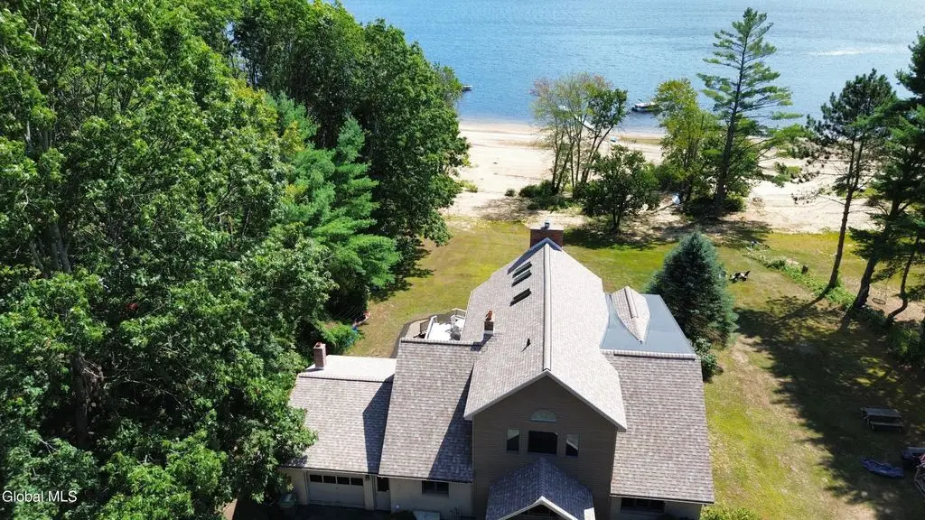 Spacious lakefront home on a level lot with 91' of sandy gently sloping beach on the Great Sacandaga, plus 2nd home for guests, woodshed and large generous barn! This lakefront retreat designed for entertaining offers an open floor plan with a great room at the center, 2-full baths and (3)-1/2 baths. The home boast abundant lake views & a wood burning fireplace. The oversized galley kitchen is fully appointed to meet all of your needs, including butcher block throughout, a huge walk-in pantry, 6-burner dual fuel double oven, gas range, with griddle; warming drawer, double door refrigerator freezer with ice maker, dishwasher, trash compactor & microwave. Most appliances are 5 years old or less. The breakfast nook also includes a wet bar with stand-alone ice maker and second dishwasher. Laundry closet is located in the mudroom off the attached one car garage with direct lake access, 1/2 bath and a wood burning stove. The master suite features lake views, vaulted ceilings with skylights, a large private bath, with jetted tub and steam shower, an oversized walk-in closet and flex room for private office or sitting area complete the space. Full basement with Bilko doors offers two finished rooms plus additional unfinished space for a workshop or general storage. In addition to the primary residence, the property also includes a second 3-bedroom, 2-bath home w/ woodburning fireplace and fully remodeled master bath. Great for guests or in-laws. Also on-site are a large, enclosed barn with carport and a second pole barn with 3 bays, all on a total of 3.7 acres. New roofs on both houses in the last 5 years. New furnace & ductwork in the smaller home. Primary residence is wired for a portable generator. Contents are negotiable.