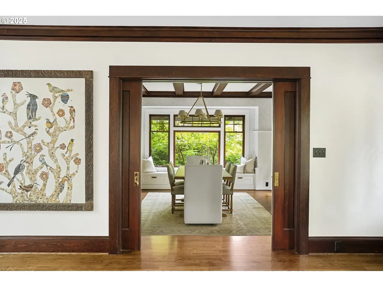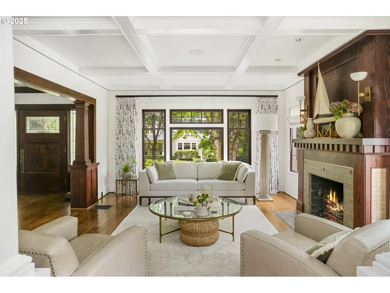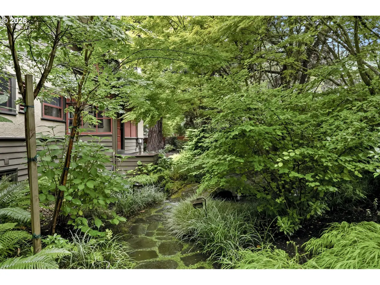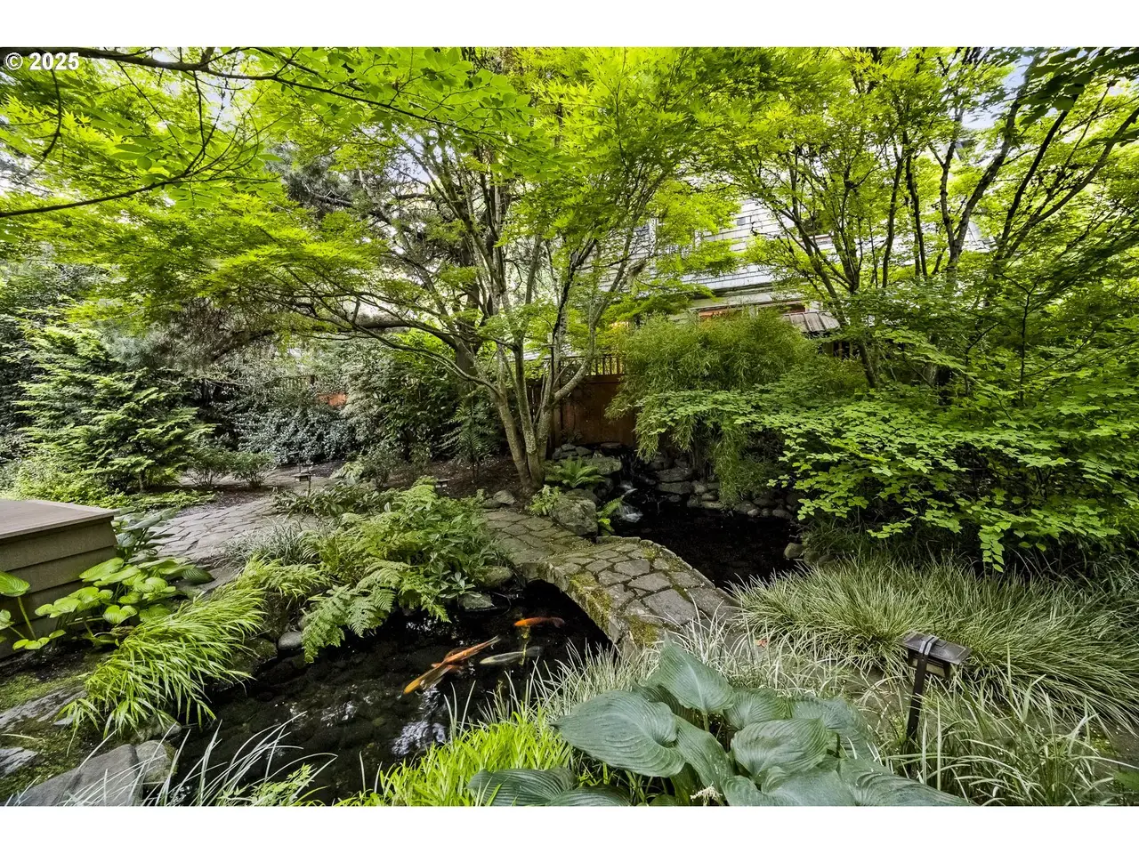 Step into Irvington history reimagined. The August Olson House, a 1910 Craftsman designed by renowned architect Raymond Hockenberry (of Crater Lake Lodge fame), is perched high on a private 12,500 sq. ft. lot, elevated above one of the neighborhood’s most beautiful tree-lined streets. Listed on the National Register of Historic Places, this grand home has undergone a decade of meticulous renovation that preserved its architectural soul while infusing it with modern livability. Freshly repainted, with new lighting, stunning hardware, and a dramatic skylight flooding the stairwell with natural light, every space feels elevated. Rich millwork and gracious proportions set the stage for elegant formal rooms, a main floor family room, and a dining room overlooking the treetops. The chef’s kitchen combines timeless design with Carrera marble counters, top-tier appliances, gorgeous new hardware, and a butler’s pantry. A sunny breakfast nook that seats 6–8, plus island seating, makes this the perfect space for gatherings. Upstairs, four bedrooms include a dreamy primary suite with a walk-in closet and spa-like bath wrapped in marble and Pratt & Larson tile. The lower level delights with an authentic English pub and a 1,000-bottle wine cellar—perfect for entertaining. Multiple zone heating and cooling with 2 high efficiency furnaces and AC units. Outdoors, the secluded backyard retreat feels like your own private park, with multiple patio spaces, a koi pond, stonework, lush gardens, and a full outdoor kitchen complete with pizza oven. Rare for Irvington, a rebuilt three-car garage adds unmatched convenience and storage. This is more than a home—it’s a piece of Portland history and one of the neighborhood’s crown jewels. [Home Energy Score = 1. HES Report at https://rpt.greenbuildingregistry.com/hes/OR10225640]