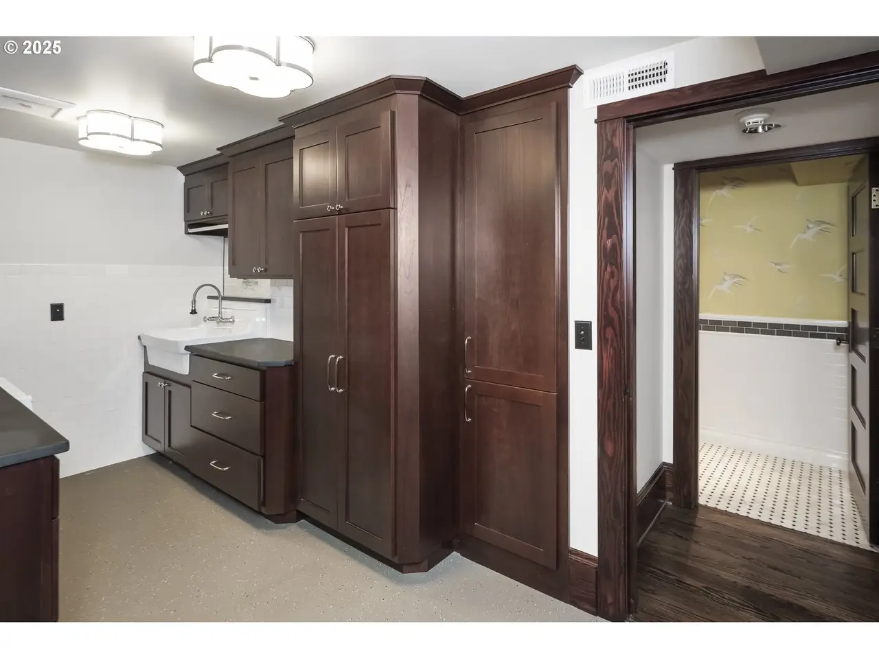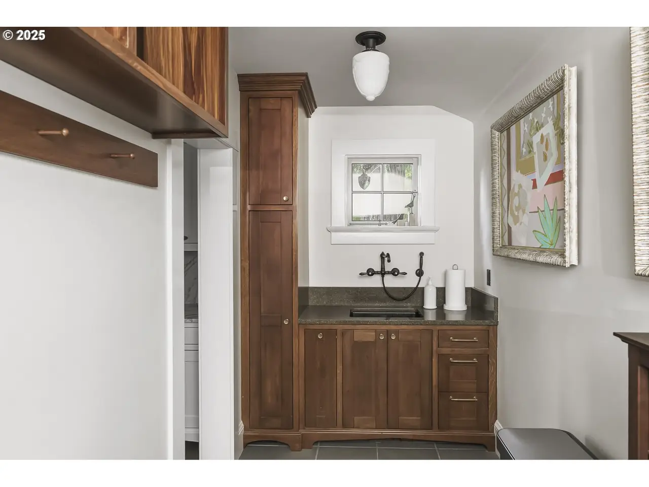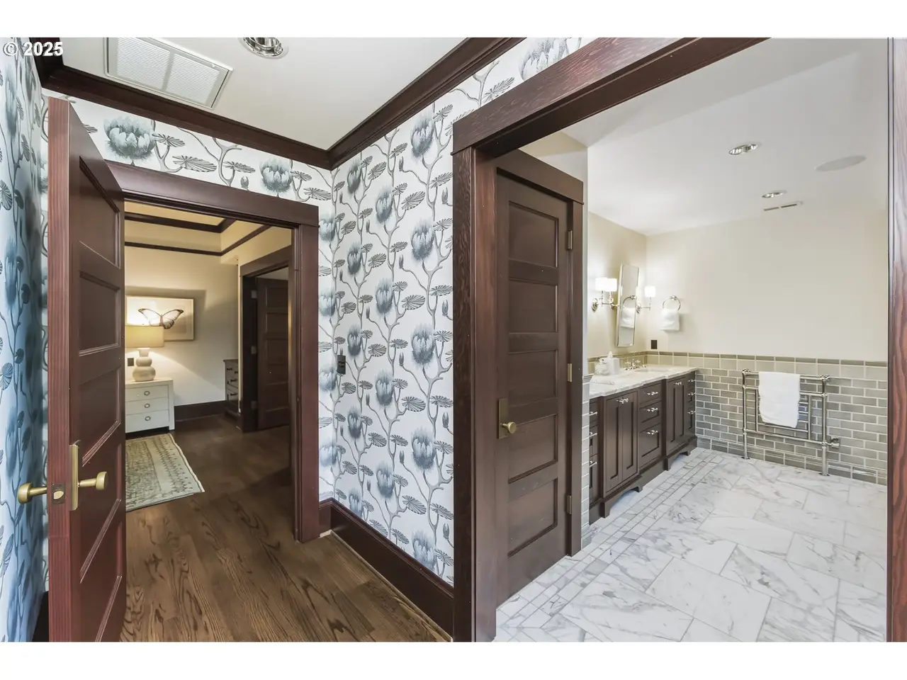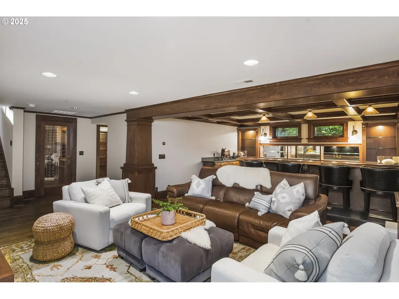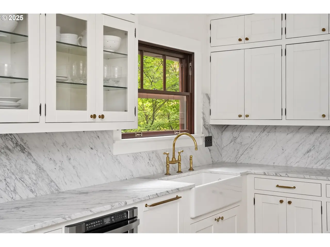 Step into Irvington history reimagined. The August Olson House, a 1910 Craftsman designed by renowned architect Raymond Hockenberry (of Crater Lake Lodge fame), is perched high on a private 12,500 sq. ft. lot, elevated above one of the neighborhood’s most beautiful tree-lined streets. Listed on the National Register of Historic Places, this grand home has undergone a decade of meticulous renovation that preserved its architectural soul while infusing it with modern livability. Freshly repainted, with new lighting, stunning hardware, and a dramatic skylight flooding the stairwell with natural light, every space feels elevated. Rich millwork and gracious proportions set the stage for elegant formal rooms, a main floor family room, and a dining room overlooking the treetops. The chef’s kitchen combines timeless design with Carrera marble counters, top-tier appliances, gorgeous new hardware, and a butler’s pantry. A sunny breakfast nook that seats 6–8, plus island seating, makes this the perfect space for gatherings. Upstairs, four bedrooms include a dreamy primary suite with a walk-in closet and spa-like bath wrapped in marble and Pratt & Larson tile. The lower level delights with an authentic English pub and a 1,000-bottle wine cellar—perfect for entertaining. Multiple zone heating and cooling with 2 high efficiency furnaces and AC units. Outdoors, the secluded backyard retreat feels like your own private park, with multiple patio spaces, a koi pond, stonework, lush gardens, and a full outdoor kitchen complete with pizza oven. Rare for Irvington, a rebuilt three-car garage adds unmatched convenience and storage. This is more than a home—it’s a piece of Portland history and one of the neighborhood’s crown jewels. [Home Energy Score = 1. HES Report at https://rpt.greenbuildingregistry.com/hes/OR10225640]