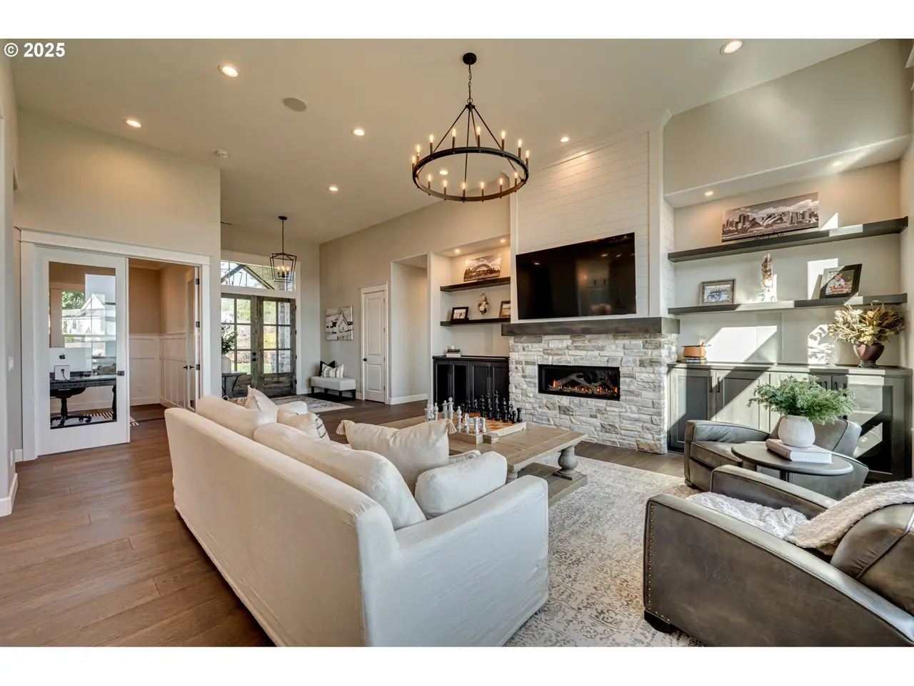 Welcome to this immaculately cared-for Custom Craftsman home perfectly positioned on a 2.32 acre lot with panoramic views of the Columbia River nestled in a gated community! The home features an open concept floor plan with high end finishes throughout, a gourmet kitchen with Thermador Pro Series appliances, steam oven, quartz counters, built-in 7.1 surround sound, custom millwork, wide plank engineered white oak hardwood floors, 10ft and 13ft ceilings and a beautifully landscaped yard. In the primary bedroom, you will be awed by the river views, coffered ceilings, feature wall, and luxurious primary bathroom. The primary bathroom features tiled floors, double-sink vanity, soaking tub, and a spacious walk-in shower with floor-to-ceiling tile. Plus, an attached roomy walk-in closet featuring custom built-in closet storage and a built-in dresser. Bedroom 2 makes a great second primary with an attached bathroom, walk-in closet, and even more river views! Relax and unwind on the large covered patio with sand-finished concrete and a beautiful tongue and grove vaulted ceiling all overlooking the panoramic Columbia River views. The 3 car extra deep garage has plenty of room to fit a full-sized pickup and more. Plus the garage has new epoxy floor and EV charger. Shop or workout flex space built under the home could have ADU potential. All this only approximately 7 minutes to I-5 on ramp, 20 minutes to Ridgefield and 40 minutes to PDX Airport. The square footage is 2,717 on the main floor and includes an additional 654sf shop or workout flex space built on the lower level of the home. Full amenities list available upon request.