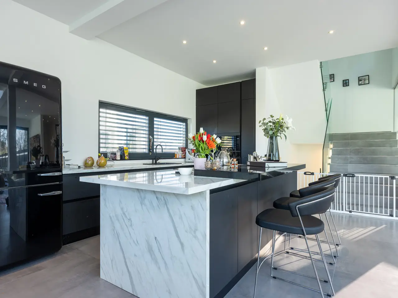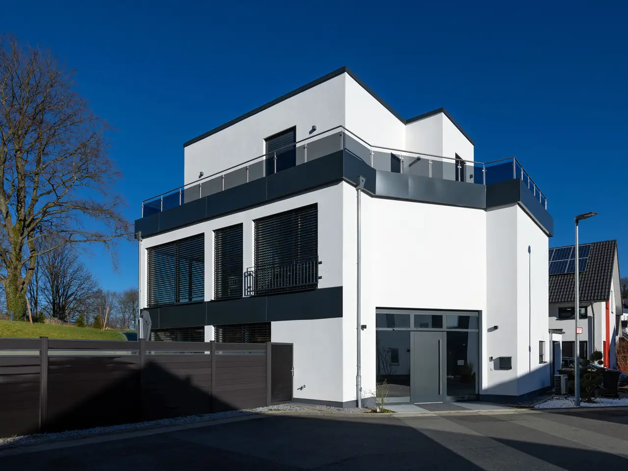 High-quality equipment for maximum living comfort The large-format floor tiles and the exclusive fitted kitchen set stylish accents and underline the high quality of construction. Here, cooking becomes a pleasure and spending time with family and friends becomes an unforgettable experience. Living in a prime location This architect-designed house combines modern living with a high level of quality of life. Convince yourself of this unique offer and arrange a viewing appointment today! We look forward to introducing you to your new home and taking the next steps into a new phase of life with you! Position This charming house is located in one of the best residential areas of Remscheid, in the picturesque district of Ehringhausen. The area is characterized by elegant detached single-family houses and stylish villas that create a pleasant living atmosphere. The most important facilities for daily needs can be reached in no time, so you can easily find everything you need on site. The lively Remscheid city center and the Allee Center can be reached in less than 10 minutes and offer a variety of shopping opportunities and leisure activities. The connection to the A1 motorway is also excellent - you can get to the expressway in just about 5 minutes by car. The center of Wuppertal can be reached in about 15 minutes, while Düsseldorf and Cologne are only about 25 and 35 minutes away respectively. Enjoy the advantages of a quiet residential area with excellent transport links and a wide range of leisure opportunities!