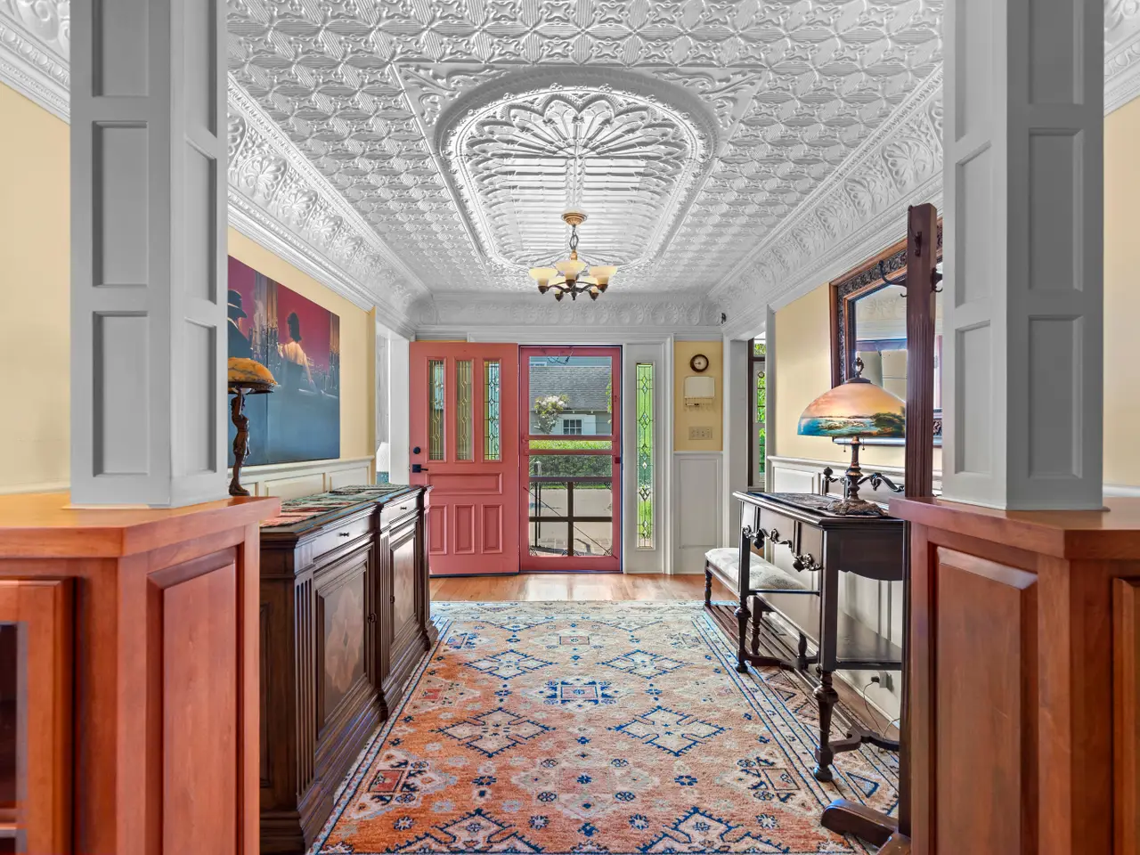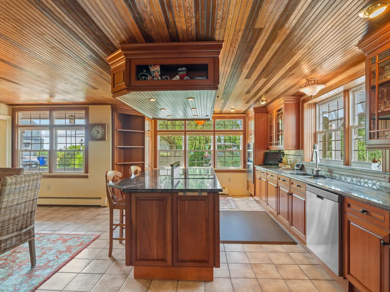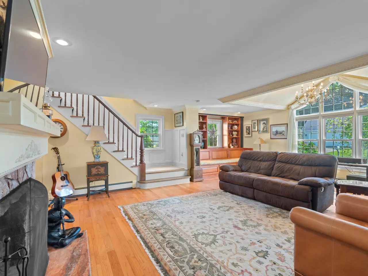 This spacious Knollwood Beach home is only ONE house from Long Island Sound featuring sweeping water views. Step into timeless elegance with this stunning home where classic craftsmanship meets modern convenience. The first floor features a gourmet kitchen and dining area complete with granite countertops, a center island with canopy, and high-end appliances. Original wainscoting ceilings and two handcrafted light fixtures add warmth and charm. The upper and lower foyers showcase exquisite tin ceilings and a striking chandelier, while the cozy family room offers washed cedar walls and serene water views. The living room is adorned with custom cherry display shelves, a built-in bench, intricate dental and crown moldings, and a granite and marble wood-burning fireplace. A Lennox-style chandelier, recessed lighting, and gleaming hardwood floors flow throughout the main level. Upstairs, the expansive primary bedroom boasts custom built-ins, original wainscoting ceiling, and an architecturally designed balcony with breathtaking views of Long Island Sound, complemented by custom window treatments. The luxurious en-suite bath features a Jacuzzi tub, double vanity, built-in cabinetry, laundry area, and spacious closets. Outside, the home's unique character continues with a ship-outline etched into the wood shingles, beautifully manicured floral gardens, and an impressive pressed concrete driveway. Additional features include a sprinkler system, invisible fencing, and heated garage Knollwood Beach features a beach, a clubhouse, basketball courts, pickleball and tennis court and a park.