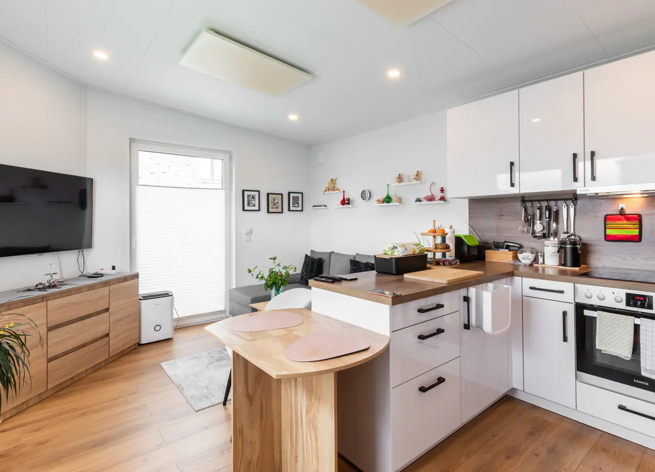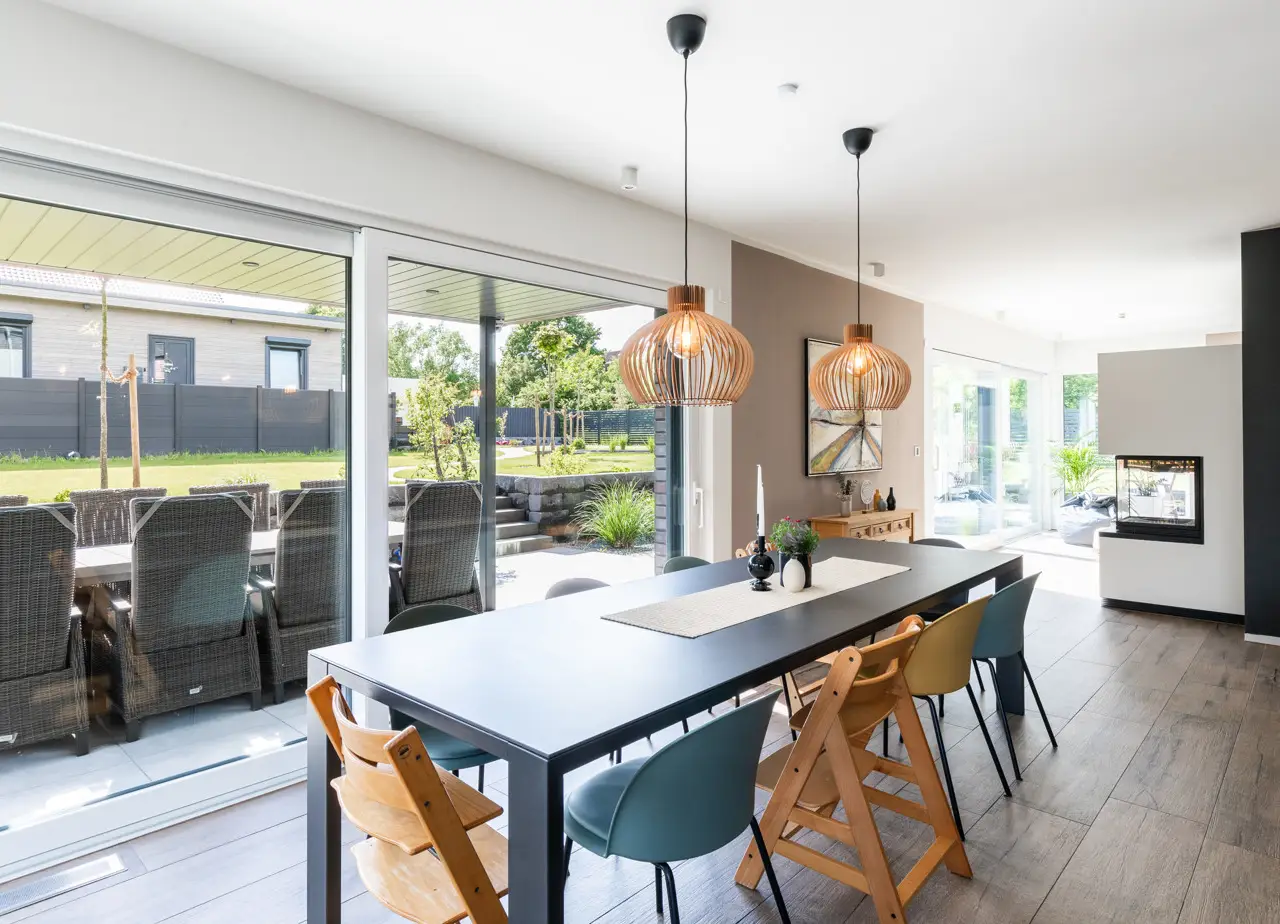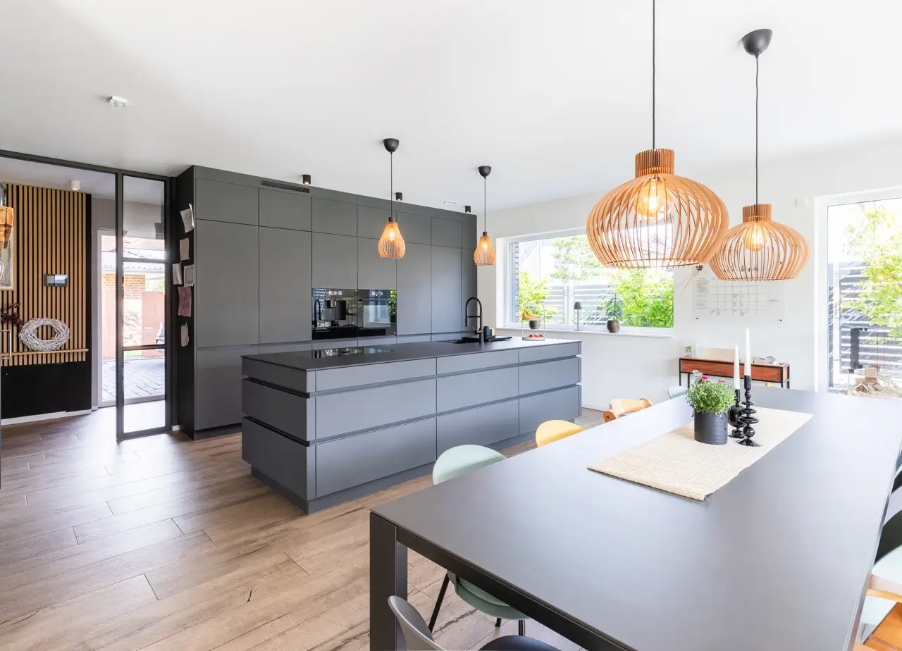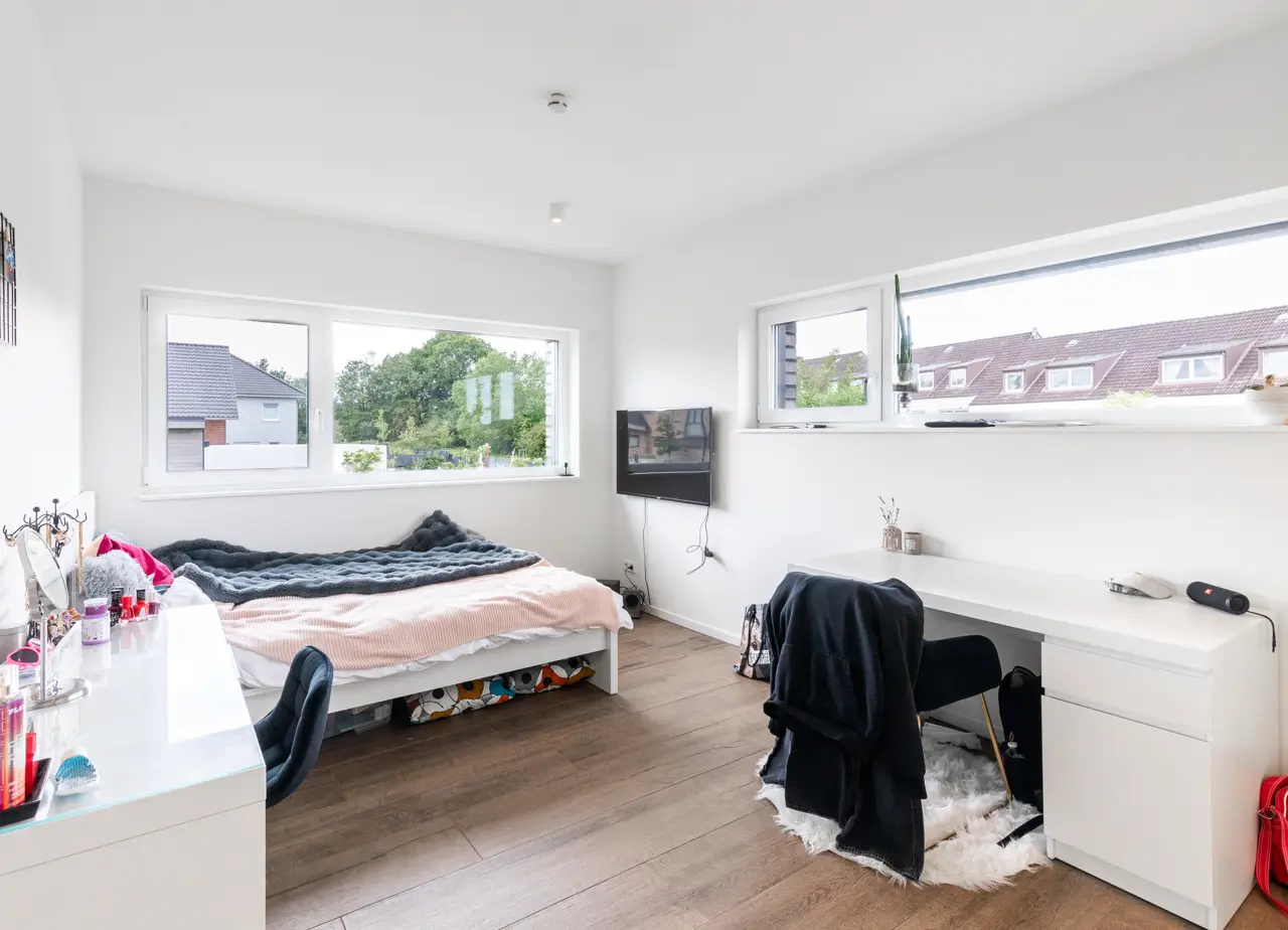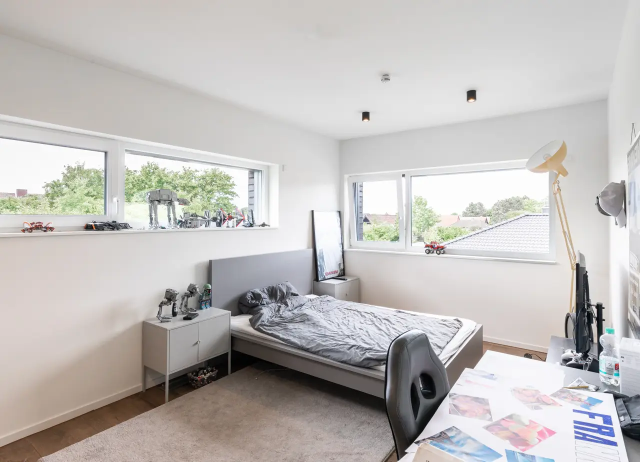 Dreamlike new building on the Baltic Sea: Exclusive amenities in family-friendly Laboe We present you a true gem on the Baltic Sea - a luxurious new building in idyllic Laboe that leaves nothing to be desired. This exquisite house was completed in 2024 after three years of construction and, with its seven rooms and four bathrooms, offers enough space for an extended family, a multi-generational household or for anyone who needs plenty of space for other activities. Luxurious living space with granny flat and tiny house The heart of the house is the spacious living space, which extends over an open living concept. The high-quality kitchen with tailor-made fittings flows seamlessly into the dining area and the living room with a cozy fireplace. Large window fronts ensure a bright and friendly feel-good atmosphere, even in changeable Baltic Sea weather. The parents' wing on the ground floor impresses with a walk-in closet and its own shower room, while the guest toilet on the opposite side of the hallway is ideal for visitors. The upper floor shines in elegant white and offers five bedrooms, all of which are a comfortable size between 16 m² and 18 m². A beautiful full bathroom and a large window front facing the garden create a positive atmosphere and a feeling of security. In the basement you will find a separate granny flat with its own access, which is ideal for renting out or as an independent living area. Two open rooms with more than 70 m², a shower room, a large storage room and a room for the building services complete this area. On the 1200 m² property there is also a luxurious Kingston brand tiny house with 44 m² of living space. This can be rented out as a holiday property or used as a private refuge for friends, in-laws or growing children. State-of-the-art equipment and sustainability The house was designed as a passive house and built according to the latest energy standards (energy efficiency A+). A heat pump, a 22 KW photovoltaic system on the roof and an associated 20 KW storage tank as well as a decalcification system ensure maximum energy efficiency. All built-in spotlights and many other devices can be controlled via Smart Home and app. The lowered, covered terrace on the ground floor and a wind-protected barbecue area in the middle of the property invite you to spend cozy hours outdoors. A double garage with wall box and an adjacent workroom offer additional comfort. Perfectly thought-out room concept This dream house offers spacious storage areas and sufficient storage space on every level. The minimalist staircase leads you to the upper floor and the basement area, which can be reached via a separate cellar entrance in the house or a separate staircase next to the garage. The four individually furnished bathrooms fulfill all your SPA wishes - from the walk-through shower to the free-standing bathtub. The ground floor is rounded off by a laundry room and an anteroom to the garage. Experience the highest level of living comfort in this unique new building on the Baltic Sea. A home that combines luxury, sustainability and functionality in perfect harmony - ideal for families, multi-generational households or anyone looking for an exclusive retreat by the sea. Welcome to your new dream home in Laboe!