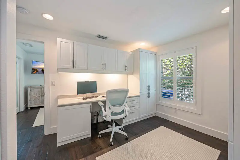 RECENT LAKE PARK HOME OF THE MONTH!! Spacious 4-bedroom plus office, 3 full bath, fully furnished home in popular Lake Park. Substantially renovated with top-quality finishes throughout on a quiet street with very private backyard and pool area. Excellent X zone location. Renovated in 2018 and 2022 including plumbing, electrical, impact resistant windows and doors, spray foam insulation, duct work, tankless water heater and new drywall throughout. Large separate walk-in storage closet. New seamless metal roof, A/C, canned lighting with dimmers in 2023. The high-quality interior finishes include wood floors, quartzite counter-tops, custom cabinetry, Recently upgraded appliances featuring, brand new Bosch stove, Cove dishwasher, Insinkerator disposal & hot water dispenser, Dacor 100 bottle wine cooler and ADT security system. Custom closet system and built-in desks in 2 rooms and 1 Murphy bed. Enjoy the new salt water pool and spa surrounded by upgraded landscaping and irrigation system, new planters with attached water systems and extensive lighting. Truly a special home just minutes to the spectacular Gulf of America and within walking distance 5th Avenue S with upscale shopping, dining and live entertainment. Exceptional furniture package included, purchased within the last 3 years. Call for full feature list.