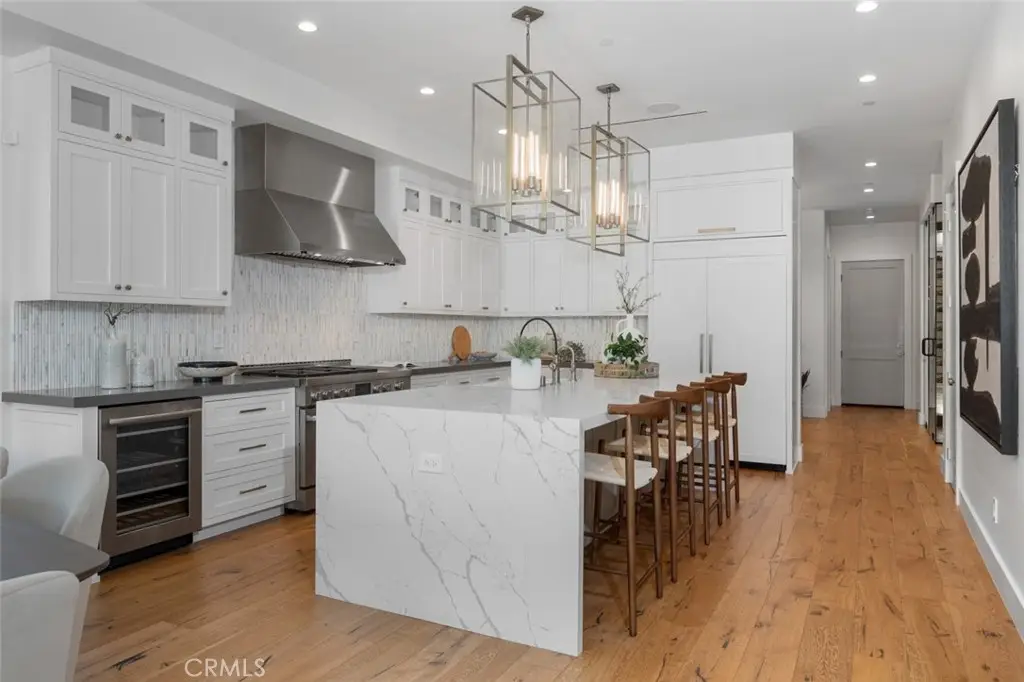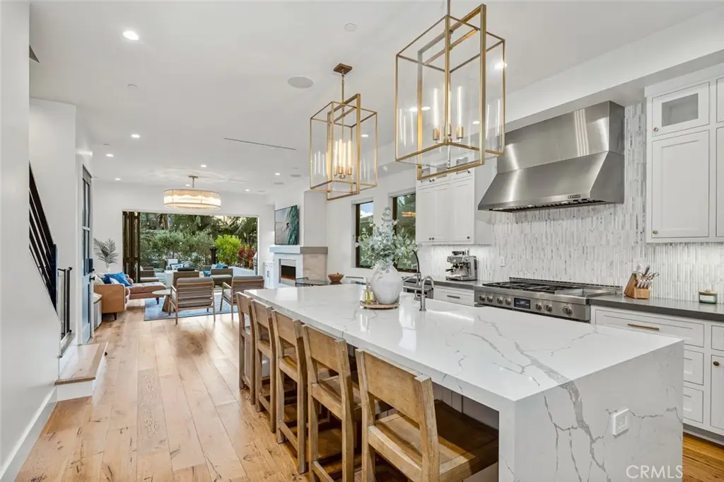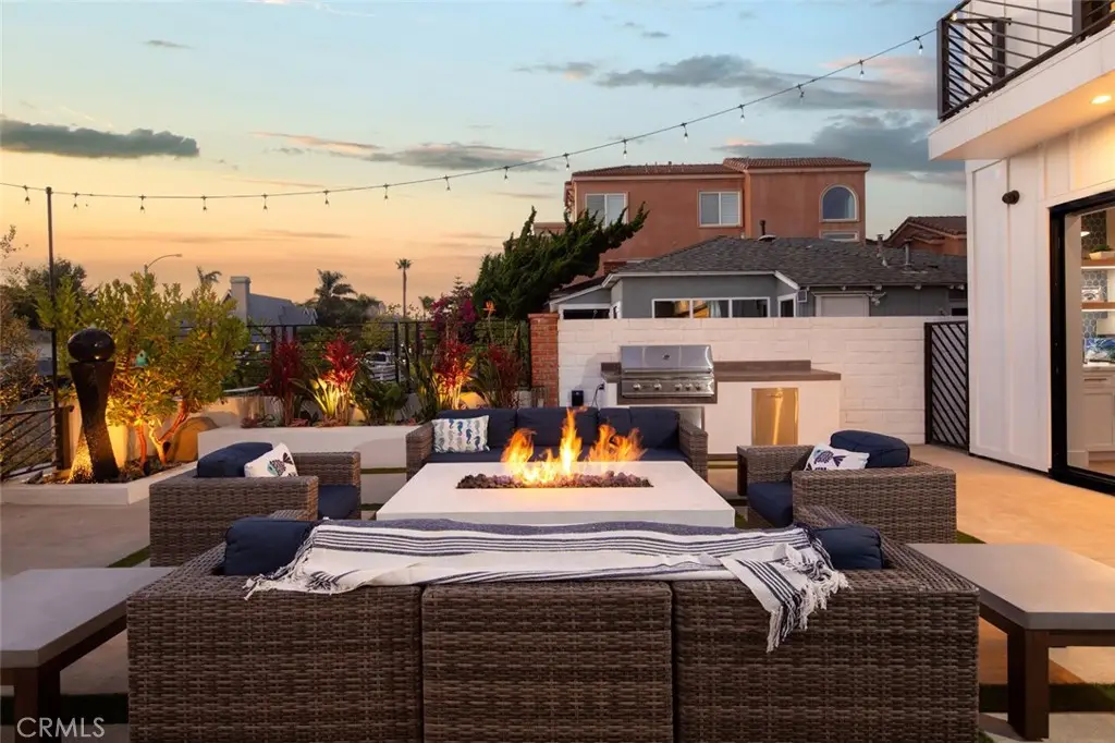 Experience elevated coastal living in this newly built modern farmhouse, ideally situated less than one mile from Pacific Coast Highway in the heart of Huntington Beach. Designed to capture the essence of refined seaside living, this residence combines timeless craftsmanship with contemporary elegance just moments from Main Street's acclaimed dining, boutique shopping, and vibrant entertainment as well as walking distance to the beautiful outdoor shopping venue, Pacific City. The inviting 800 sq.ft. front patio sets a distinguished first impression, offering an idyllic setting for open-air gatherings with a built-in fire pit, barbecue, artificial turf, and thoughtfully illuminated landscaping. Inside, expansive bi-fold doors open to create a seamless indoor-outdoor flow, uniting sophisticated design with relaxed coastal ambiance. At the heart of the home, the chef's kitchen features stunning white quartz countertops, a marble backsplash, a walk-in pantry, and a grand center island. Professional-grade appliances include a six-burner double oven range, complemented by Restoration Hardware lighting and custom cabinetry that exude luxury and functionality. Distinctive touches throughout the home include an 80-bottle glass wine room, a versatile den with a Murphy bed, and multiple en-suite bedrooms that provide comfort and privacy for family and guests. The primary suite is a true retreat, offering a private fireplace and a spa-inspired bath designed for indulgence and tranquility. The third-floor bonus room enhances the home's entertainment appeal with a wet bar and private terrace showcasing sweeping views--an ideal vantage point for sunsets and summer fireworks. With five full bathrooms and exquisite finishes throughout, this residence embodies the pinnacle of modern coastal sophistication, delivering an unparalleled Huntington Beach lifestyle just steps from the ocean.