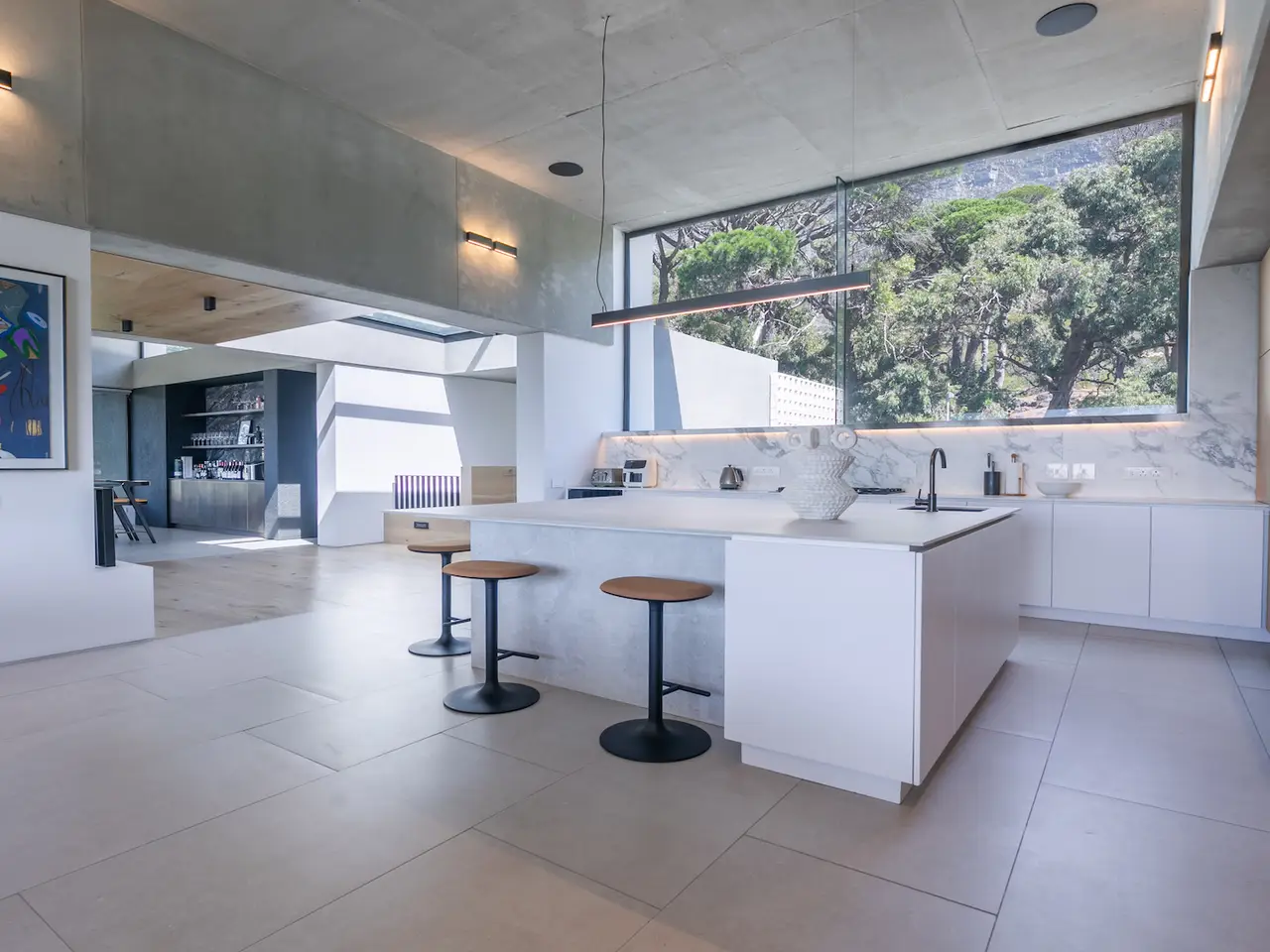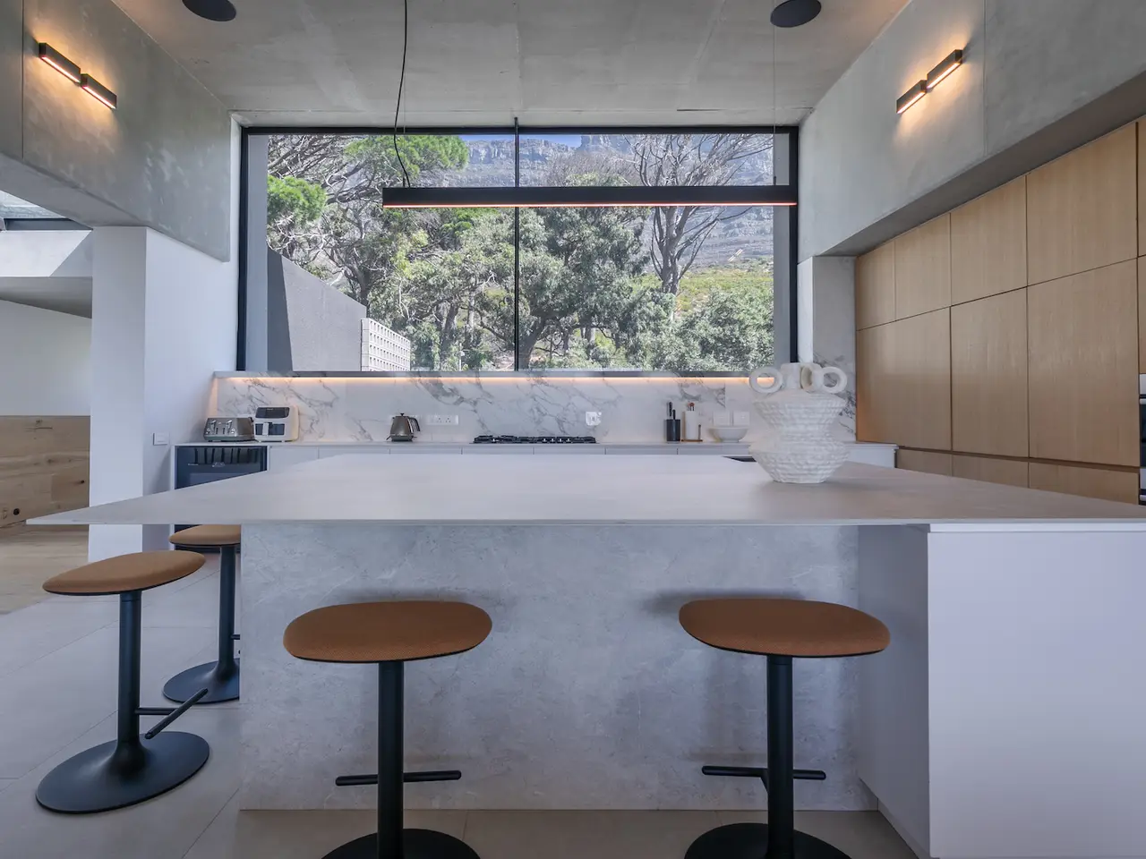 Set high on the slopes of Table Mountain in the prestigious suburb of Oranjezicht, this multi-level home captures the essence of fine Cape Town living. It is tastefully designed for elegant entertaining, relaxed everyday comfort and privacy. The sweeping views of the mountain, the city, and the bay provide a spectacular backdrop for every season. Main Living Level: Open-Plan Kitchen & Dining — A beautifully appointed space with seamless sightlines to Table Mountain, the city skyline, and the blue sweep of the bay. Entertainment Lounge & Bar — A sophisticated indoor bar and lounge that flows through sliding doors to an outdoor sitting area, perfectly placed to enjoy the adjacent forest during the day and the city lights by night. Study — A quiet, private workspace framed by mountain views. Guest Toilet — Discreetly positioned for visitors’ convenience. Bedrooms & Private Spaces: Main Suite — A north-facing sanctuary with a luxurious en-suite bathroom. The shower opens via sliding doors onto a secluded courtyard — a rare touch of resort-style luxury. Second & Third Bedrooms — Share a generous bathroom, with a separate toilet and basin for practicality. Fourth Bedroom (Guest Suite) — Ideal for guests or extended family. A private courtyard and its own street entrance ensure independence and ease. Pajama Lounge — A warm, north-facing snug for family time or quiet evenings. Laundry room. Outdoor Living Downstairs: Covered Entertainment Terrace — Suited to all seasons, perfect for long lunches or evening drinks. Pool & Sun Deck — Set for full enjoyment of Cape Town’s summer days. Built-In Braai Pit with Seating — An inviting, social space for casual gatherings. Guest Toilet & Basin — Conveniently located without interrupting indoor living. A Rare Offering This residence pairs contemporary comfort with the drama and calm of nature — a home that allows its owner to choose daily between retreat and celebration. A truly exceptional opportunity to live above the city, beneath the mountain, in one of the most coveted pockets of Cape Town.