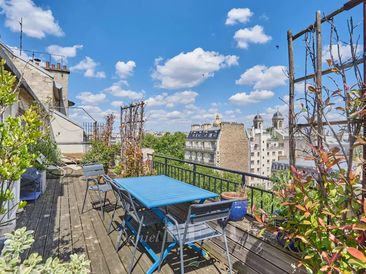 Saint-François-Xavier neighbourhood. This 55 sqm apartment benefiting from a 66 sqm terrace is on the 8th and top floor of a mid 20th century building with a lift. It comprises a corner living/reception room opening onto the terrace commanding open views of Montmartre and the Invalides Dome, a separate kitchen, a bedroom, a bathroom, a utility room and a separate wc. A second bedroom with a shower room would be possible. Cellar. The buildinbg benefits from cycle storage premises.