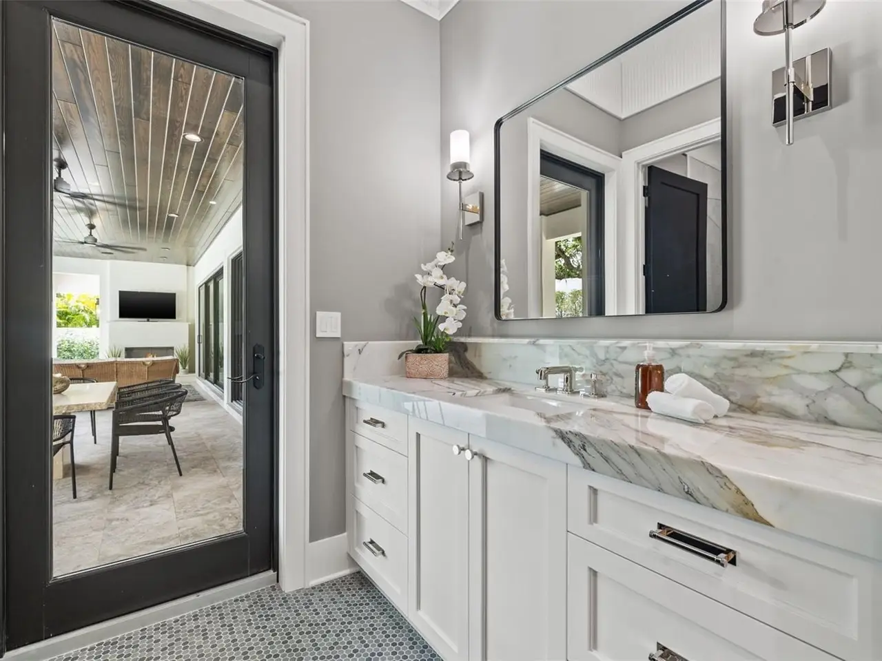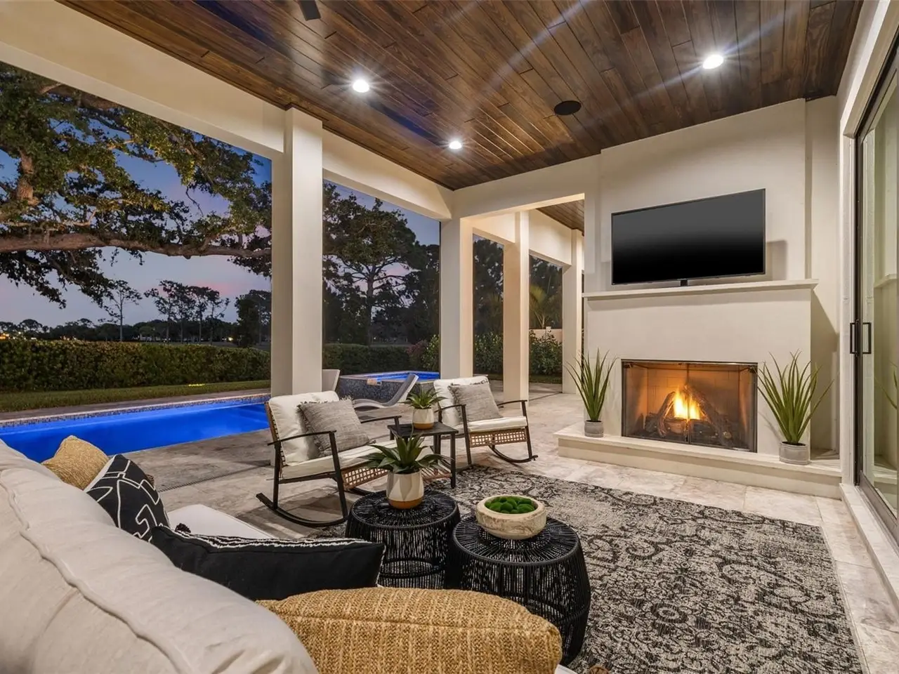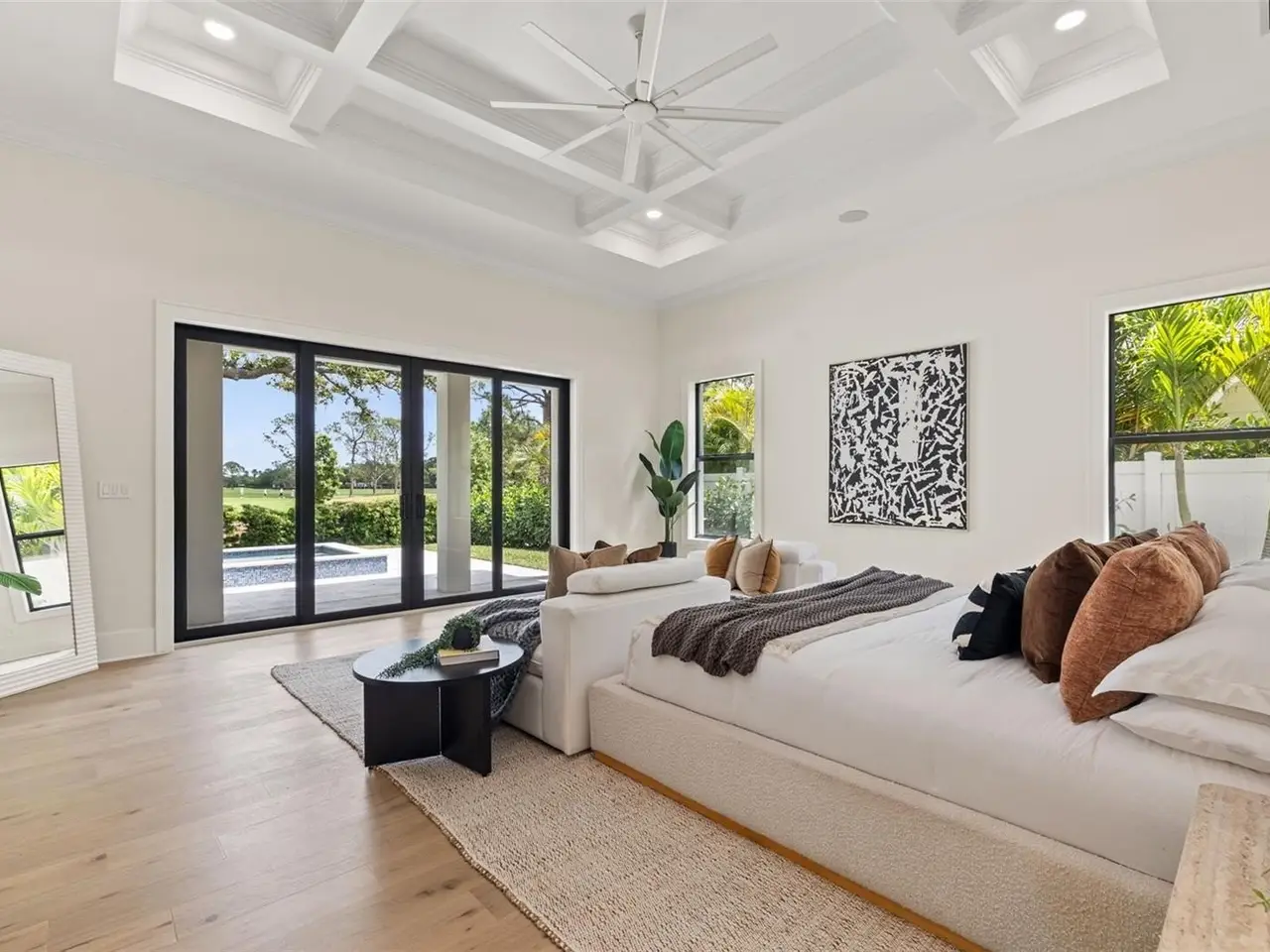 Attention all Annika LPGA tournament attendees! Be among the first to step inside this brand new, never lived-in home with golf course views, just in time for all the LPGA action. Move straight into an untouched masterpiece overlooking the 5th fairway of the prestigious Pelican Golf Club, widely regarded as Pinellas County’s finest private course. Completed in 2025 and never occupied, this executive residence pairs crisp modern architecture with warm, livable spaces, creating an ideal setting for everyday comfort, grand entertaining, and multigenerational living. A dramatic great room welcomes you with oak floors, 14-foot coffered ceilings, and an entire wall of glass that frames manicured fairways and bathes the interior in natural light. The adjacent chef’s kitchen is a true showpiece, anchored by dual center islands, bespoke cabinetry, dramatic marble countertops, Kraus workstation sinks, Waterworks fixtures, and professional-grade appliances that are equally suited to casual breakfasts or catered soirées, while the open dining and living areas flow seamlessly to the outdoors through hurricane-rated sliders. The primary suite is a private sanctuary with two generous walk-in closets and a spa-inspired bath featuring dual oversized rain shower heads, a deep soaking tub, and dual vanities with a dedicated cosmetics station. A split-bedroom layout ensures privacy for family and guests, and a versatile bonus room can serve as an executive study, formal dining room, or fifth bedroom. Everyday convenience is elevated by two full sets of washers and dryers in the interior laundry room, and climate-controlled storage in the oversized two-car garage; a separate air-conditioned single garage, about 375 square feet, that can easily accommodate a third vehicle or golf cart. Outback, resort living awaits: a salt-water pool and spa, motorized retractable screens, and a gas fireplace create an effortless venue for sunset cocktails beside the fairway. A 26kW whole-house generator, concrete-block construction, impact glass, and high-efficiency HVAC deliver peace of mind and low operating costs. Minutes from Clearwater’s beaches, marinas, and dining—yet worlds away in privacy and prestige, this brand-new residence offers flawless finishes, cutting-edge systems, and an unrivaled golf-course backdrop. Virtual tour and floor plans are available upon request. Private showings available by appointment only.
