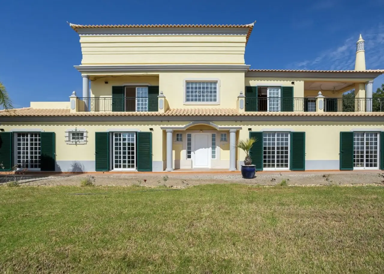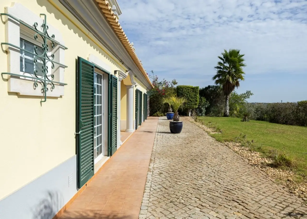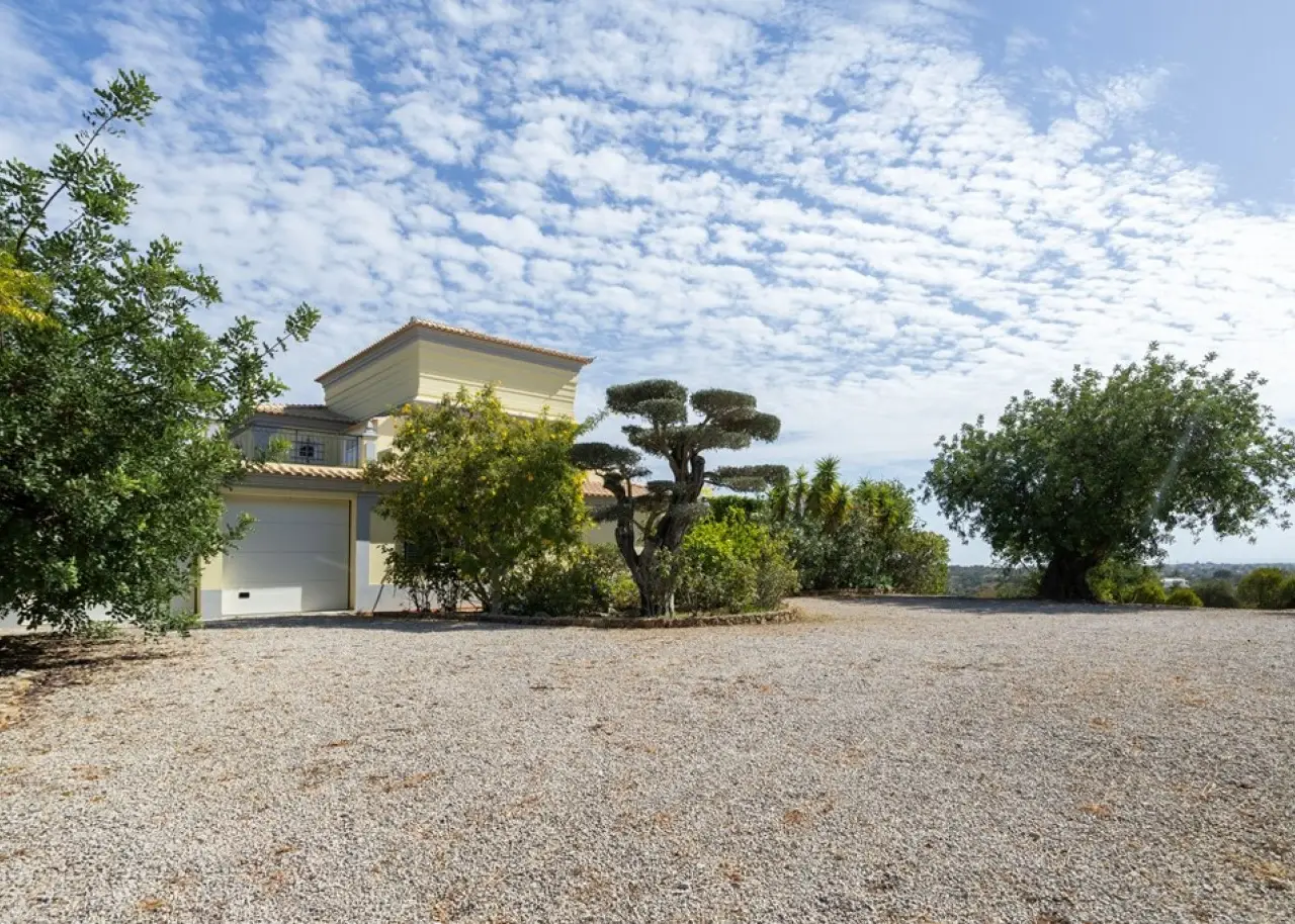 Magnificent 5 bedroom villa, set in a vast plot of approximately 14,000 m², with fruit trees and a variety of ornamental plants. Combining rustic charm with contemporary comfort, this property offers an authentic haven of tranquillity and natural beauty, enjoying breathtaking views over the Atlantic Ocean and the Ria Formosa, in Olhão. On the ground floor, there is a large fully equipped and furnished kitchen, a practical laundry room and a spacious living room with a fireplace, from where you can contemplate the immensity of the sea. This floor also has a suite, two bedrooms, two bathrooms and an office, ensuring the perfect balance between functionality and family comfort. The first floor accommodates two additional bedrooms and a master suite with a walk-in closet and a generous bathroom. All the rooms on this floor have direct access to an extensive terrace, ideal for enjoying the views of the sunrise and sunset over the ocean, in a setting of serenity and inspiration. The villa also has a closed garage for two vehicles and several outdoor parking areas. Comfort and efficiency are ensured by solar panels for water heating, air conditioning, double-glazed window frames, an alarm system and ample storage areas, offering practical and sophisticated living. This is a unique opportunity to acquire a dream home in the Algarve, where natural beauty, privacy and elegance come together in perfect harmony. Located just 6 km from Praia dos Cavacos and the center of Olhão, the property benefits from excellent accessibility to the main amenities and the ferry docks to the islands of Armona and Fuseta - true natural paradises in the Algarve. CHARACTERISTICS: Plot Area: 13 960 m2 | 150 264 sq ft Useful area: 259 m2 | 2 790 sq ft Deployment Area: 195 m2 | 2 094 sq ft Building Area: 296 m2 | 3 189 sq ft Bedrooms: 5 Bathrooms: 4 Garage: 2 Energy efficiency: C FEATURES: 5-bedroom villa Office Laundry room Views over the Ria Formosa Sea views Equipped and furnished Closed garage Land