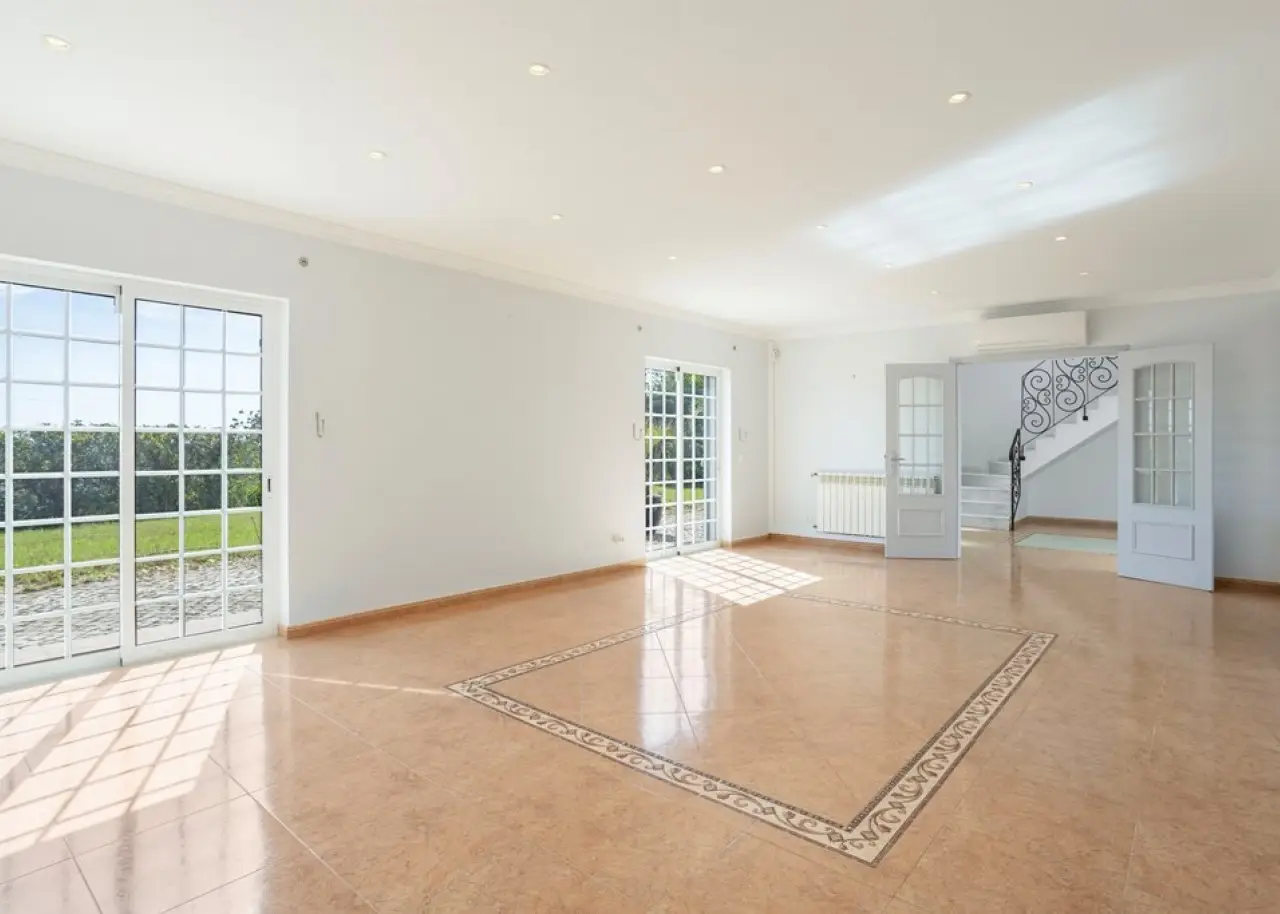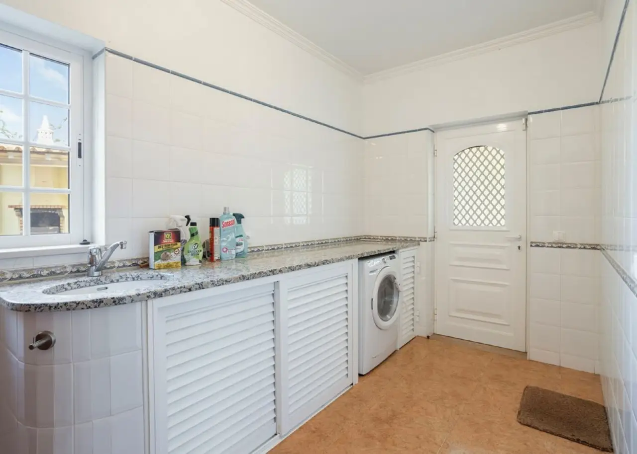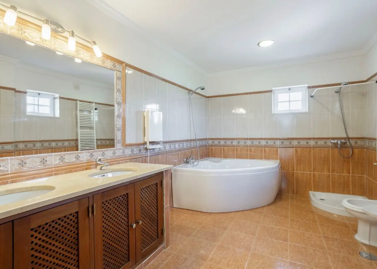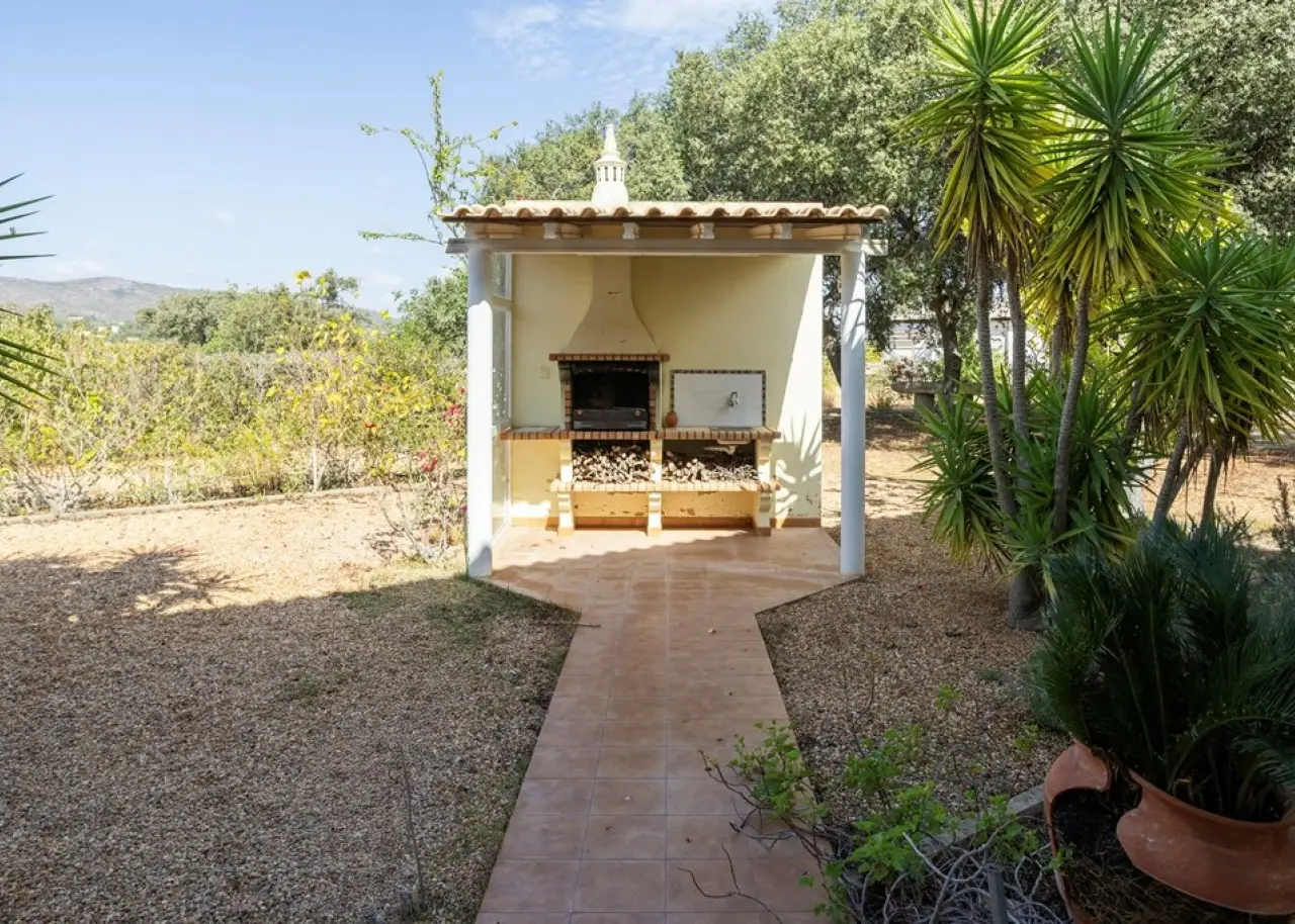 Magnificent 5 bedroom villa, set in a vast plot of approximately 14,000 m², with fruit trees and a variety of ornamental plants. Combining rustic charm with contemporary comfort, this property offers an authentic haven of tranquillity and natural beauty, enjoying breathtaking views over the Atlantic Ocean and the Ria Formosa, in Olhão. On the ground floor, there is a large fully equipped and furnished kitchen, a practical laundry room and a spacious living room with a fireplace, from where you can contemplate the immensity of the sea. This floor also has a suite, two bedrooms, two bathrooms and an office, ensuring the perfect balance between functionality and family comfort. The first floor accommodates two additional bedrooms and a master suite with a walk-in closet and a generous bathroom. All the rooms on this floor have direct access to an extensive terrace, ideal for enjoying the views of the sunrise and sunset over the ocean, in a setting of serenity and inspiration. The villa also has a closed garage for two vehicles and several outdoor parking areas. Comfort and efficiency are ensured by solar panels for water heating, air conditioning, double-glazed window frames, an alarm system and ample storage areas, offering practical and sophisticated living. This is a unique opportunity to acquire a dream home in the Algarve, where natural beauty, privacy and elegance come together in perfect harmony. Located just 6 km from Praia dos Cavacos and the center of Olhão, the property benefits from excellent accessibility to the main amenities and the ferry docks to the islands of Armona and Fuseta - true natural paradises in the Algarve. CHARACTERISTICS: Plot Area: 13 960 m2 | 150 264 sq ft Useful area: 259 m2 | 2 790 sq ft Deployment Area: 195 m2 | 2 094 sq ft Building Area: 296 m2 | 3 189 sq ft Bedrooms: 5 Bathrooms: 4 Garage: 2 Energy efficiency: C FEATURES: 5-bedroom villa Office Laundry room Views over the Ria Formosa Sea views Equipped and furnished Closed garage Land