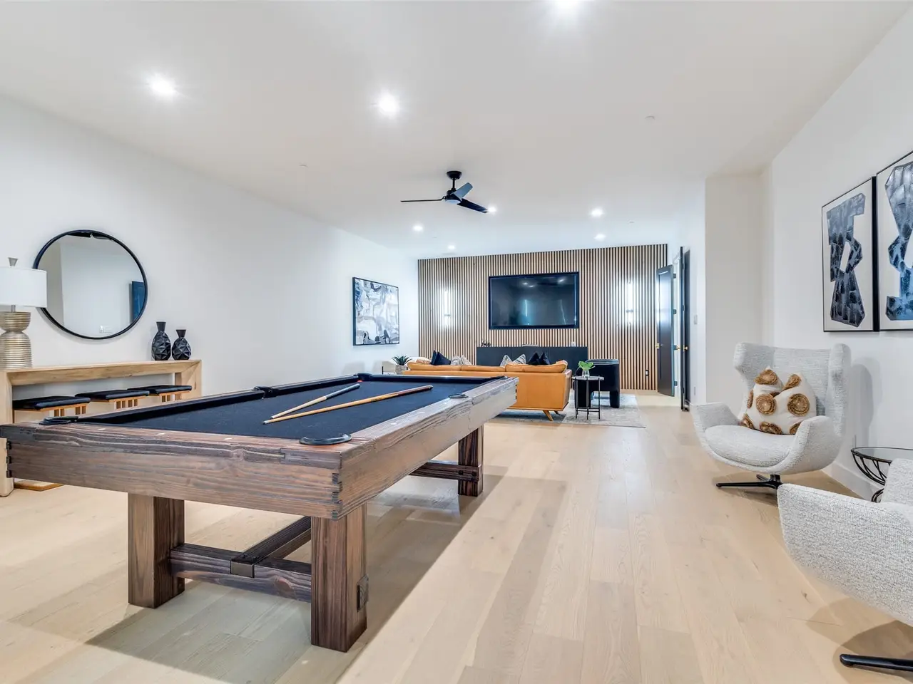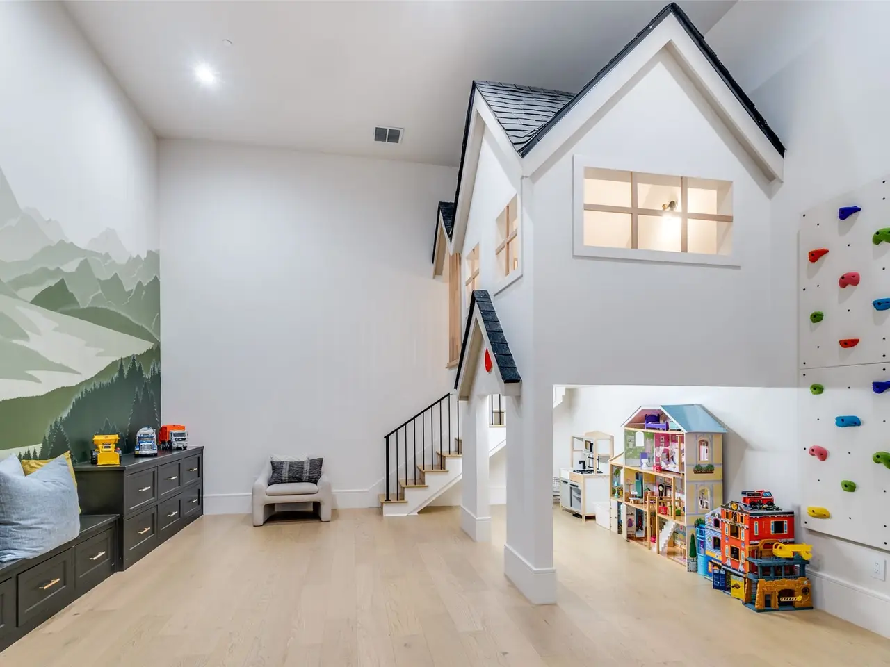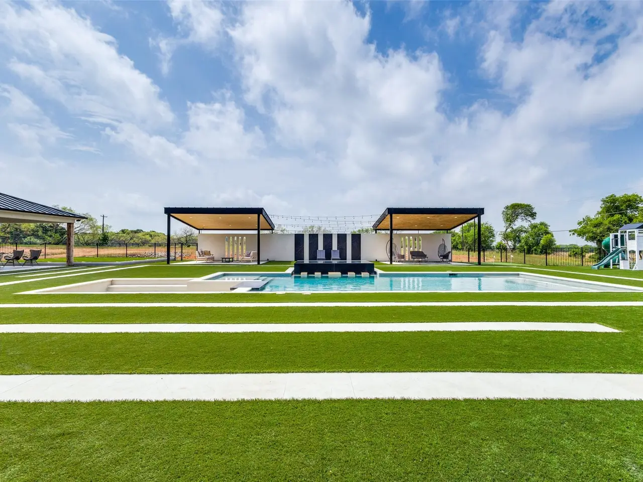 Extraordinary estate that offers an unparalleled blend of elegance, comfort and modern amenities, making it the ultimate dream home! The grandeur begins as you enter the stately foyer, leading to expansive living areas designed for both relaxation and entertainment. The gourmet kitchen, complete with top-of-the-line appliances and custom cabinetry, flows seamlessly into the inviting family room. Entertainment options abound with a state-of-the-art media room and a delightful kids' playroom with a climbing wall and clubhouse. Step outside to your private oasis featuring a sparkling pool and a fully equipped pool house with its own kitchen, ideal for hosting. Kids will love the in-ground trampoline! The backyard is enhanced by synthetic grass, ensuring a pristine landscape year-round. At the front of the property, a serene lake with a charming fountain adds a touch of tranquility. This magnificent home is a rare find, offering the perfect blend of sophistication and family-friendly features.