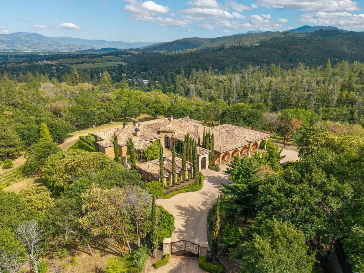 Masterpiece of Art in Southern Oregon, 1st time on the market! Overlooking Jacksonville Mts and City lights! Private park-like 5 acres w/city water! Mediterranean/Old world style w/stone gated entry. 12 car garage. 9904 SQ FT of luxury. Attention to details throughout this amazing property. 4 primary stes, 6 baths, Pebble tec pool and spa, covered patios w/stone fireplace, gated courtyard w/large fountain and guest Casita! Fall in love before entering 13' dbl door entry that takes you into a grand great room w/many 9' French doors opening to the outdoor living room, 8 fireplaces and dome ceilings. Lg stone fireplace in kitchen/breakfast rm. Beautiful kitchen that any chef would love w/butler pantry and catering area w/third sink and wine fridge. Primary suites w/custom tall ceilings. Temperature controlled wine cellar, elegant formal dining rm w/built-ins. Downstairs family, theater and exercise rms. Built & architecturally designed by Mike Pagnini a premier builder in Southern Oregon.