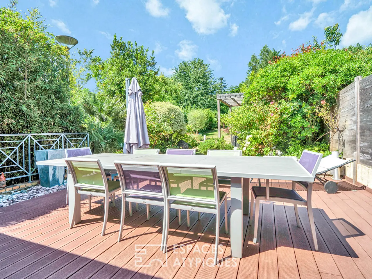 Located in the sought-after residential neighborhood of Coteaux Malassis in Vitry-sur-Seine, this contemporary home built in 2011 offers 242 m2 of living space on a generous 1,141 m2 wooded plot. Set back from the street in a quiet location, it offers a rare combination of space, functionality and potential for future development, less than 10 minutes' walk from public transport and renowned schools. The garden level is organised around a flowing, light-filled circulation, designed to accommodate the highlights of everyday life as well as moments of relaxation. As soon as you enter, the surprisingly high ceilings reveal a double perspective towards the first floor. On the reception side, the house features a vast 46.5 m2 south-west-facing space, combining a dining room with direct access to a terrace and landscaped garden. This light-filled space is extended by a 23 m2 alcove lounge, ideal for creating a media or reading area. Recessed speakers in the ceiling provide a discreet accompaniment to everyday living. The separate kitchen, measuring just over 30 m2, is extended by a pantry and a service entrance. Glazed sliding doors allow it to open fully onto the living area. A corridor leads to a shower room with window, a separate toilet and a study or spare bedroom, with warm parquet flooring contrasting with the large-format tiling in the living areas. Upstairs, the central landing of just over 14 m2 leads to four large, bright bedrooms, all with parquet flooring. Two of these share a connecting balcony, while another has a built-in dressing room. A windowed bathroom with whirlpool bath and separate toilet complete this level. An unfinished attic (approx. 70 m2 floor area), already equipped with velux windows and veneered under-roofs, offers the possibility of creating a master suite or creative space to suit every taste. On the lower level, a 150 m2 level is surprisingly spacious and versatile. Much more than just a basement, it houses a garage, sports room, games room, reception area and even a screening room. A discreet wine cellar completes the ensemble, for a complete art of living. On the practical side, the house is a 7-minute walk from the elementary school, 5 minutes from the middle school, and less than 10 minutes from EPIN, a private, secular school renowned for the excellence of its teaching and results. Local shops are within walking distance, as is the T9 tramway for quick access to the gates of Paris and the Villejuif Paul Vaillant-Couturier station (metro line 7). REF. 11483 Additional information * 7 rooms * 5 bedrooms * 1 bathroom * 1 bathroom * 2 floors in the building * Outdoor space : 1141 SQM * Property tax : 6 010 € Energy Performance Certificate Primary energy consumption c : 107 kWh/m2.year High performance housing