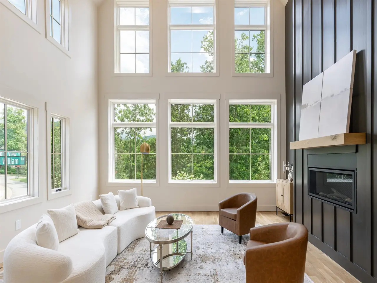 Stunning new construction in Thoms Estate! This custom-built home in the heart of North Asheville offers main-level living with a spacious open floor plan & high-end finishes throughout. The great room has soaring +20ft ceilings, abundant natural light, & mountain views. The main level primary bedroom featured vaulted ceilings, a natural gas fireplace, & an ensuite bath with walk in shower & soaking tub. The laundry room, pantry & mud room feature heated floors. Easy entry with age-in-place features including an elevator for access to the second level. Relax on the front porch & take in the mountain views or entertain guests on the large back patio complete with a natural gas stub-out for grilling. Extremely convenient location minutes away from Fresh Market, Ingles, Beaver Lake and the Country Club of Asheville. Vibrant downtown Asheville is less than 4 miles away. Thoms Estate amenities include a gated entrance, walking trails, community garden, pavilion area, & pickleball courts.