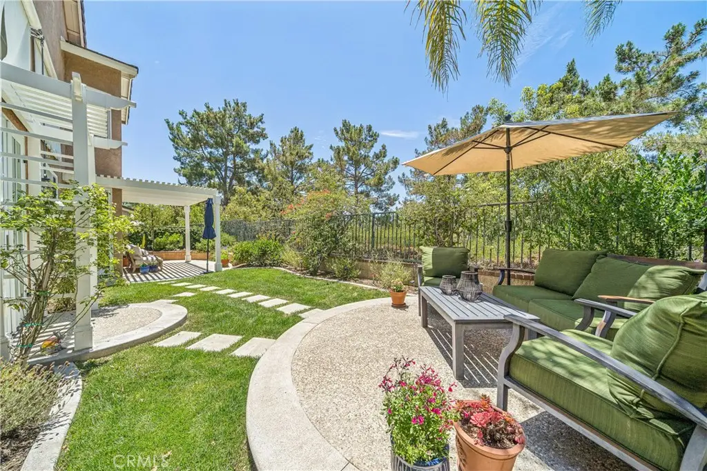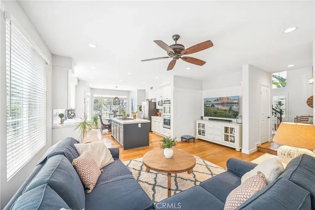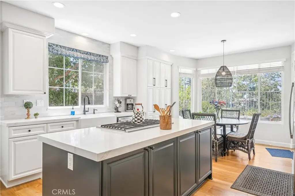 Light, bright and airy residence situated at the heart of great neighborhood cul-de-sac in the prestigious highly sought after guard-gated community of Canyon Crest. Beginning with great curb appeal, that includes mature planter beds and statement piece shade tree, the tone is set before one even steps inside. Upon entry, rich, warm and inviting wood floors, and neutral tones, host an exceptional abundance of natural light. With soaring vaulted ceilings, the living and dining room spaces are ample in size and showcase an elegant setting for hosting. Just off of the formal living areas is a downstairs bedroom and, along with the three quarter lower level guest bath, this could be an ideal one-story living option. A separate laundry room with a dedicated task sink adds convenience. The spacious family room, just off the kitchen, is the perfect space to gather around the fireplace, making entertaining effortless. The kitchen is a chef's dream, with beautiful quartz countertops, a central island with an inset gas cooktop, tons of great prep and storage space, top-of-the-line appliances, custom cabinetry, and updated fixtures, lighting and hardware throughout. A convenient eat-in area and great light make the kitchen and family room the places where all the action is sure to happen. Upstairs, the grand primary suite offers a tranquil retreat, complete with great light, vaulted ceilings and an ensuite with a large dual sink vanity, step-in shower, soaking tub and a private water closet. The two upper guest bedrooms share a full bathroom with Jack-and-Jill sinks. The backyard is perfect for enjoying evening sunsets and has a large grassy lawn and multiple seating areas making this a fantastic spot to entertain under the stars. A large three-car garage offers ample storage space for vehicles and more and a large 3 car driveway completes the residence. Homeowners in this exclusive community enjoy low HOA fees, which includes access to the clubhouse, three pools, a spa, a full gym, sauna, sports courts, tennis courts, a multipurpose room, park, 24-hour roaming security guards, and multiple gates. Conveniently located near award-winning Blue Ribbon schools, Lake Mission Viejo, shops, restaurants and the best of what South OC living has to offer. This home presents sophistication and practicality in what is definitely a must see opportunity. WELCOME HOME!