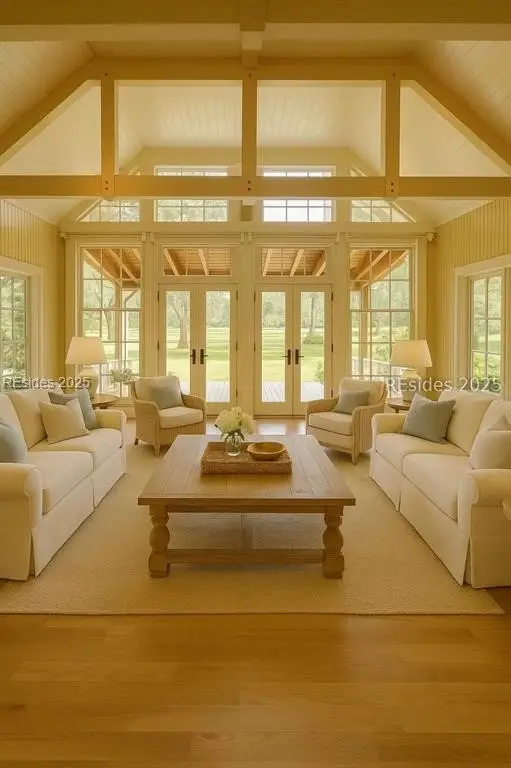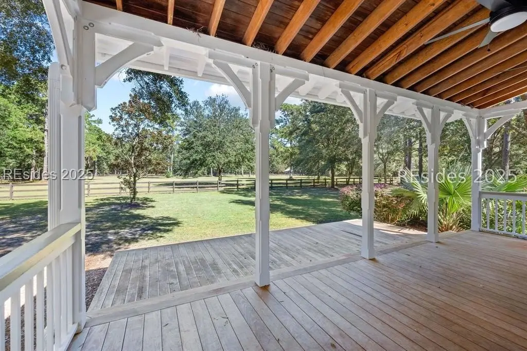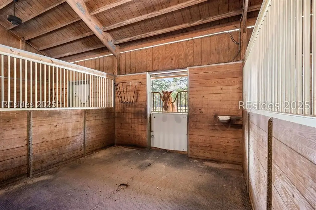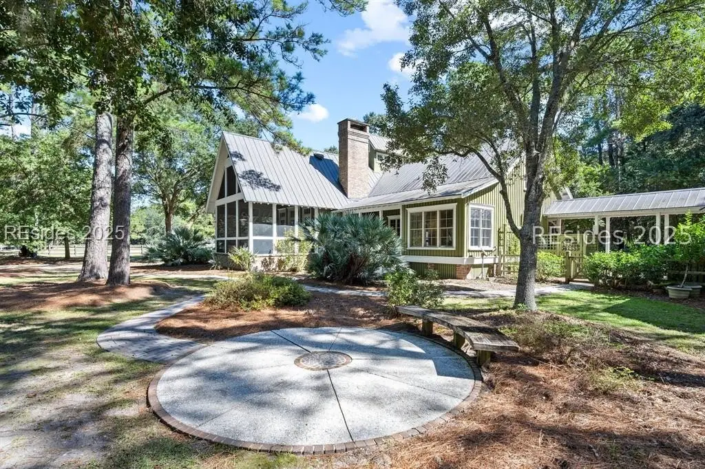 A Refined 13+ Acre Lowcountry Equestrian Retreat on Spring Island - A long, oak-lined drive leads to this extraordinary 13.2-acre equestrian estate - an intimate compound within the private, gated community of Spring Island. The property features a main house, guest cottage, 2+ car garage with golf cart bay and potting shed, the Orvis retreat, an equestrian viewing gazebo, three-stall barn, and two large, fenced pastures plus one paddock around the stalls. The main residence offers a welcoming front porch with sweeping views of pastures and the barn. French doors open to a vaulted great room filled with natural light and fine craftsmanship. The chef's kitchen with dual islands and premium appliances flows into a keeping room anchored by a Savannah brick fireplace. A screened porch opens to gardens for year-round Lowcountry living. The primary suite includes a sitting area, spa-style bath, and private porch. Guest suite, laundry, and bright studio or "woman cave" complete the main living areas. A breezeway connects the main house to the garage and potting shed, ideal for gardeners and nature enthusiasts. The guest cottage offers front and back porches, a sitting area with kitchenette, and two ensuite bedrooms, providing privacy and comfort for family or friends. Across a wooden bridge, the Orvis Room "man cave" features a wraparound porch with outdoor fireplace overlooking a tranquil water feature. Inside, a great room, office, or bourbon room, and full bath create an ideal gathering place. The gazebo overlooks pastures, perfect for entertaining or watching dressage. The three-stall barn includes a tack room, bath, utility area, and space for future living quarters. Two large, fenced pastures and one paddock provide ample room for horses. Life on Spring Island is unlike anywhere else, offering 3,000 acres of preserved natural beauty and premier amenities: Arnold Palmer-designed golf, equestrian center, tennis and pickleball, fitness complex with heated and chilled saltwater pools, scenic trails for walking or riding, a 7.5-acre community garden, and an inspiring art barn. (Note - 5 photos with furniture in them have been virtually staged to show the home's potential)