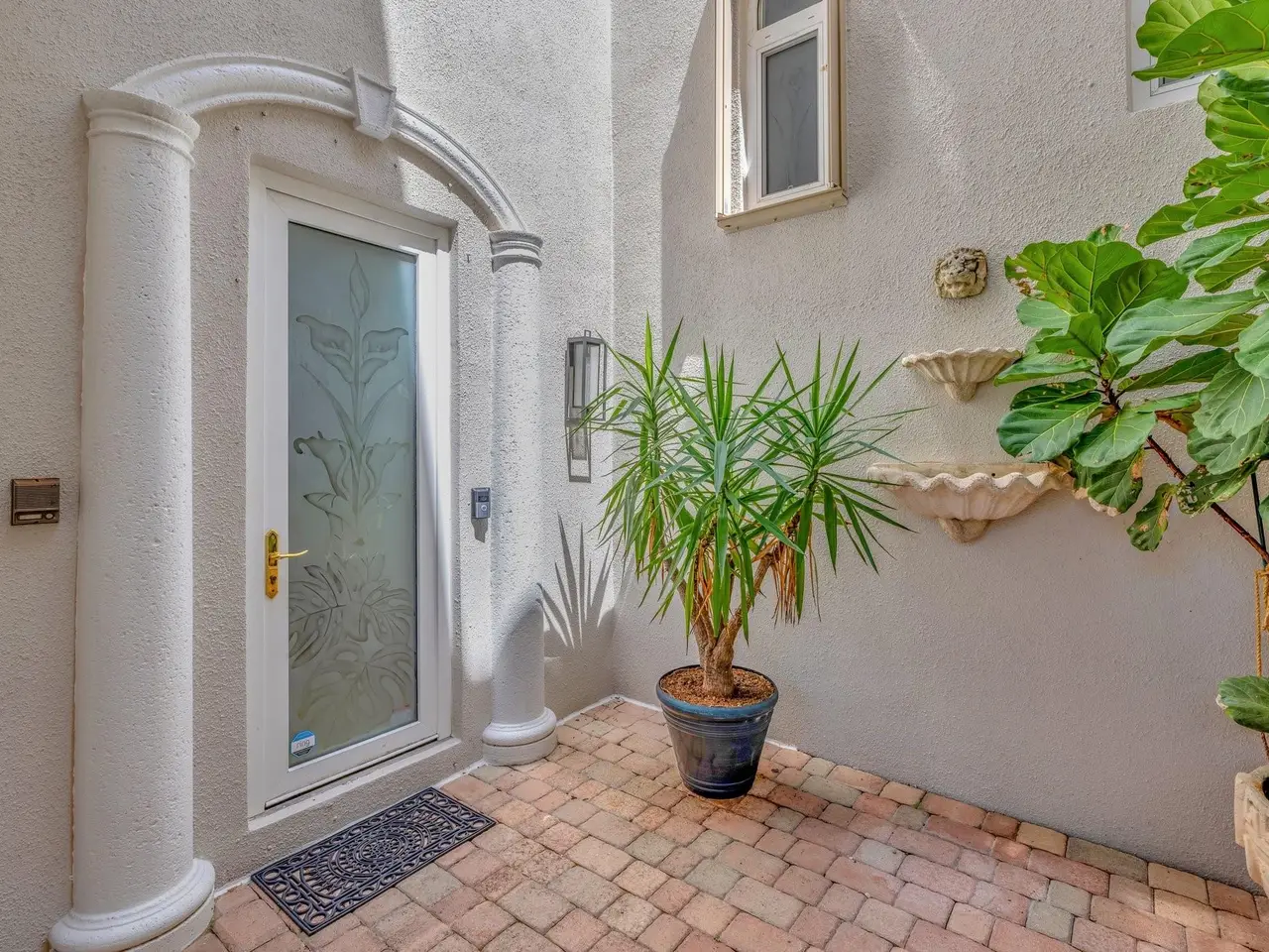 Experience coastal elegance in this gorgeous three-level townhome located in an exclusive gated oceanfront community. Hillsboro by the Bay features a private beach access via a residents-only bridge. This luxury complex, just steps from the sand is located on the Atlantic Ocean and offers the perfect blend of privacy, luxury, and convenience. This beautifully appointed residence features marble flooring, spacious open balconies (3 balconies), a private elevator, new upstairs AC unit (2025) and a 2-car garage. Cooking is a pleasure with a gas range and stylish SS appliances in the kitchen. Enjoy your own private pool (New pump 2025) and backyard, ideal for relaxing after a day at the beach. Live the resort lifestyle in this rare and refined coastal retreat just steps from the sand and surf.