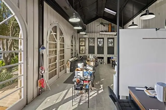A breathtaking contemporary interpretation of Southern Louisiana vernacular architecture is the dramatic Coin du Lestin residence designed by Lee Ledbetter in collaboration with his acclaimed artist client. Sheltered behind a gated entry and perched on the high end of a peninsula, with unobstructed native Louisiana bayou views, this special offering includes a main home and two art studios/guest houses. The first time on the market, the imposing one-story home was designed to respond to the landscape, with seemingly limitless views of Bayou Bonfouca and the protected marshlands beyond. The commanding entry facade features large shuttered windows, yet the home is designed to be viewed from the rear, with its tall brick columns, deep porches and vanishing edge pool which merges with the bayou beyond. The simple yet dramatic interiors are comprised of a spacious living room with a soaring 21' ceiling, walls of glass, and a fireplace surround repurposed from a doorway in Mexico; a tidy kitchen; wet bar; and two bedroom suites, one currently being used as an office. The material palette was carefully selected of travertine, glass, wood, plaster and painted brick, maintaining a cohesive neutral backdrop for furnishings and art. There are two additional dwellings, both working studios of the former owner, one of which includes a kitchenette and a loft-style bed and bath. These provide endless opportunities for guest quarters, gym, family compound etc. Framing this remarkable estate are grounds and gardens lovingly cultivated by the owner with native cypress, palmettos, wild irises, lilies, magnolias, and of course moss-laden live oaks. There are two generators, two docks, and a new (2024) treatment plant. This is a truly exceptional opportunity to acquire an artist's legacy home within a quintessential Louisiana waterfront paradise, just a 15 minute boat ride to Lake Pontchartrain.