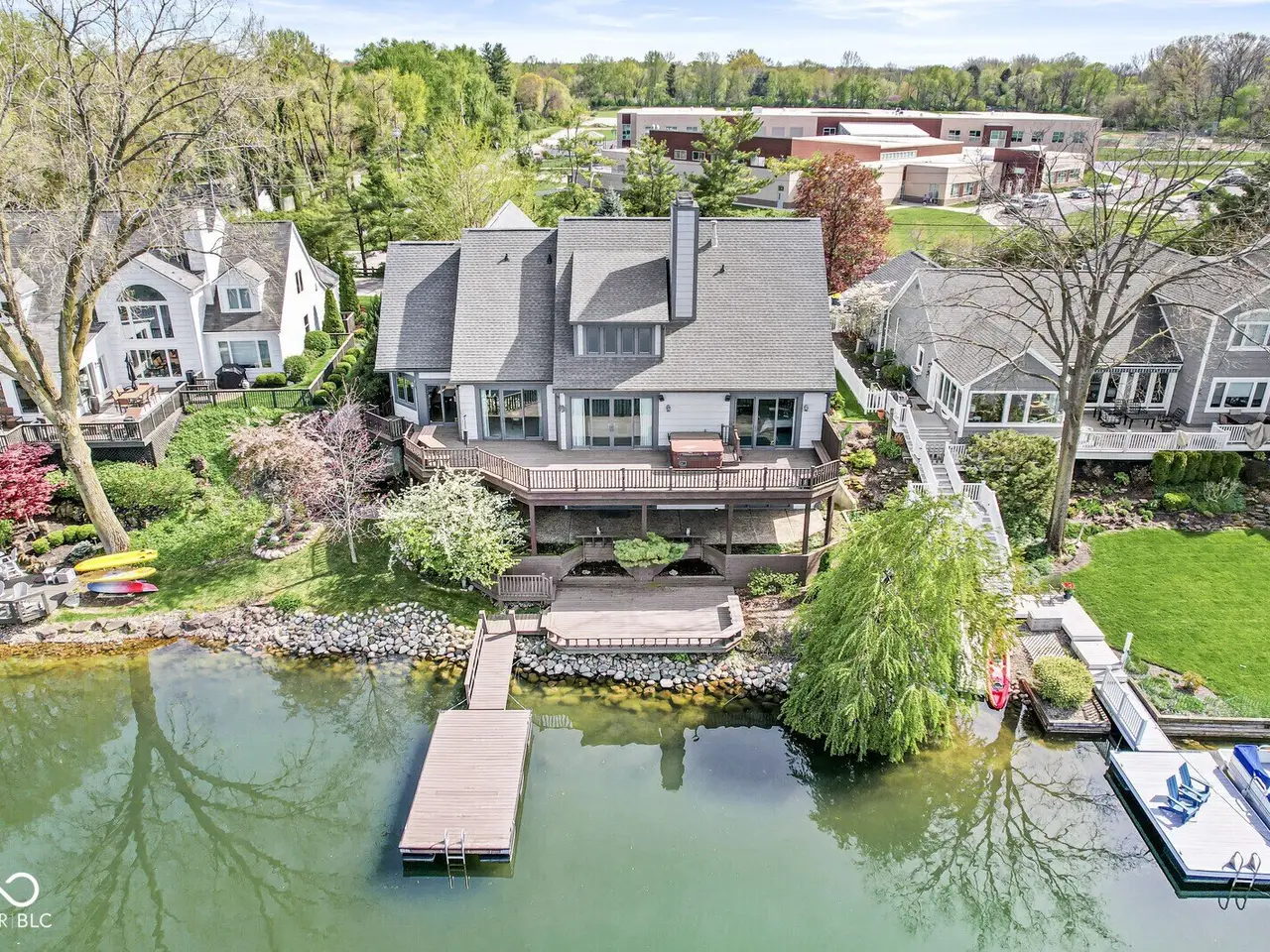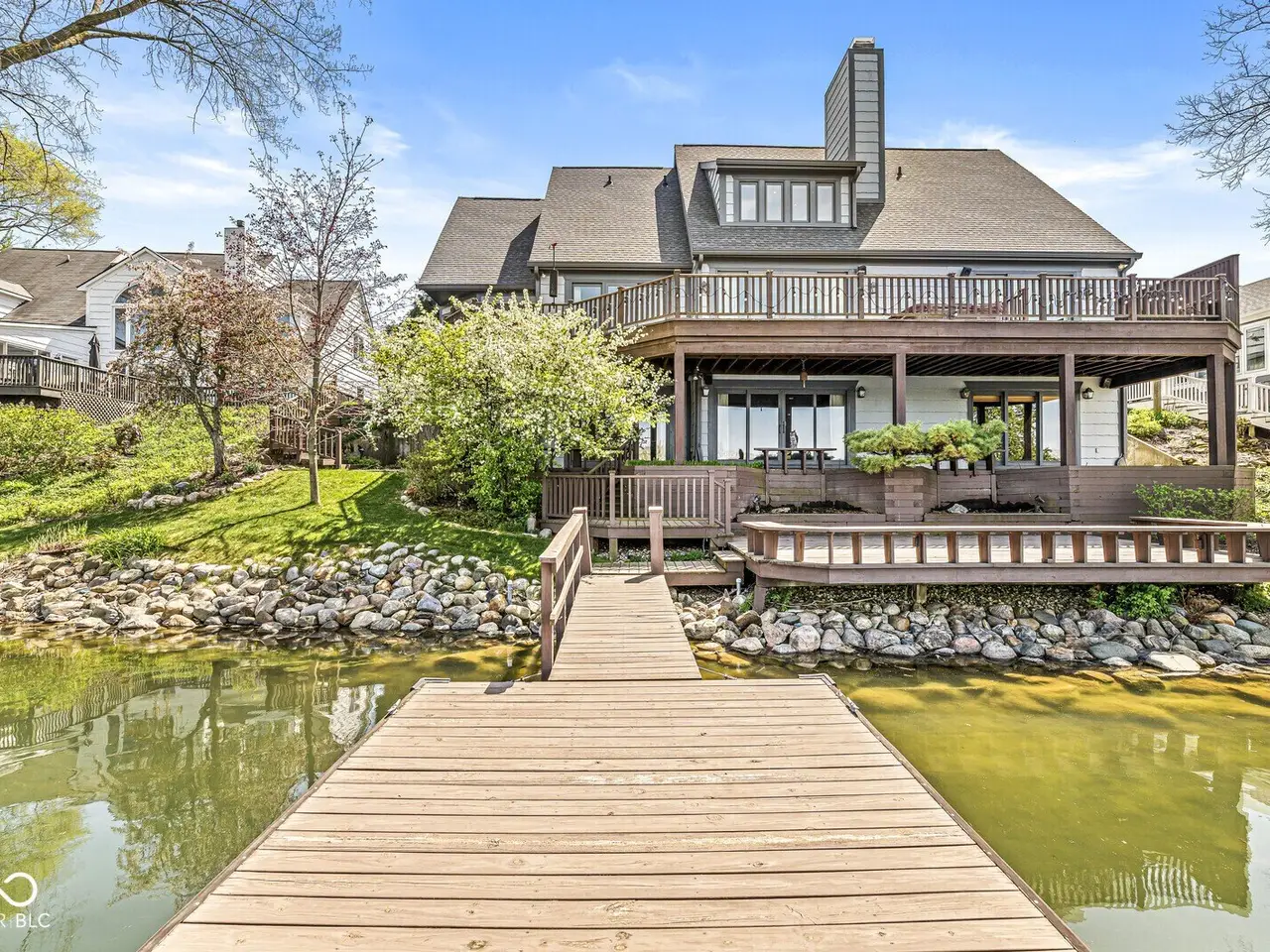 Once in a lifetime, Nantucket Bay Masterpiece with Breathtaking Water Views. Exquisite custom home stands as a testament to luxury living. Charm is enhanced by multiple decks and private boat dock, providing the perfect vantage point to soak in the beauty of the surrounding landscape. Step inside to discover a Chef's kitchen equipped with Subzero and Wolf appliances, custom cabinetry and large center island. Seamless flow between the formal dining room and family room, adorned with a coffered ceiling, creates an inviting atmosphere for gatherings both large and small. Main level primary suite with a dream closet. Upstairs features a loft that overlooks the water, second ensuite bedroom, wrapping room and storage galore above the 3 car garage. Walkout lower level has two additional bedrooms ensuite, cozy family room with included pool table, wet bar and a climate-controlled wine room for the connoisseur. A dumbwaiter connects to the garage, ensuring effortless transportation of your prized collection. Embrace the low-maintenance lifestyle and immerse yourself in the tranquility of Nantucket Bay, where every day feels like a vacation.