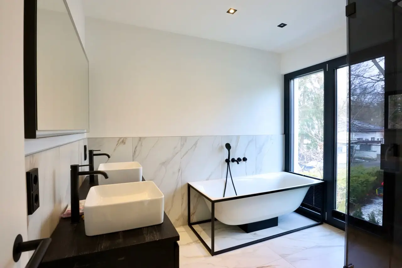 This villa in Grünwald is a home to feel at home in - a successful combination of stylish architecture, high-quality materials and a first-class location. The spacious south-facing terrace is a place of peace and relaxation, perfect for sociable evenings or relaxing moments with a view of the lovingly landscaped garden. Thanks to its ideal south-facing orientation, the sun floods the property throughout the day, creating a pleasant atmosphere. The interior reflects the harmony of the design: warm oak parquet floors, elegant tiles and an open fireplace create a cozy living atmosphere. The custom-made fitted kitchen with state-of-the-art technology leaves nothing to be desired and invites you to enjoy culinary experiences together. The bathrooms, equipped with high-quality fittings from Marina and Gessi, offer a private oasis of well-being with a spacious full bath and separate shower room. A tasteful guest WC on the first floor provides additional comfort. The well thought-out construction with energy-efficient brickwork guarantees a balanced indoor climate at any time of year. Large aluminum windows let in plenty of natural light and give the rooms an open, bright atmosphere. The top floor in particular benefits from the large window areas and creates an inviting feeling of living. The high-quality basement with natural light and separate access offers a variety of uses - whether as a granny apartment, studio or private workspace. These flexible rooms add an individual touch to the living comfort. The technical equipment also meets the highest standards: efficient district heating ensures a reliable heat supply, while the intelligent LED lighting concept adds stylish accents. Electric external blinds on the windows on the ground and upper floors allow flexible light regulation and ensure privacy. For additional security, modern video surveillance can be integrated as an option. This extraordinary villa is more than just a home - it is a place to arrive, enjoy and experience. Nestled in one of the most sought-after locations in Grünwald, it offers an exclusive living experience for people who are looking for something special. Arrange a viewing and let yourself be enchanted by this unique property.