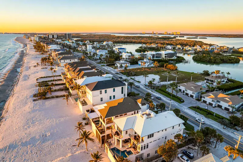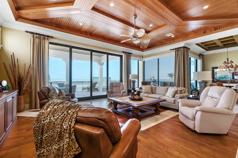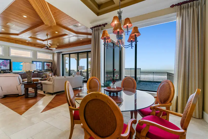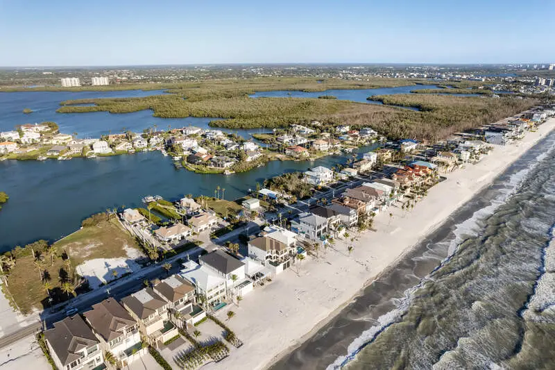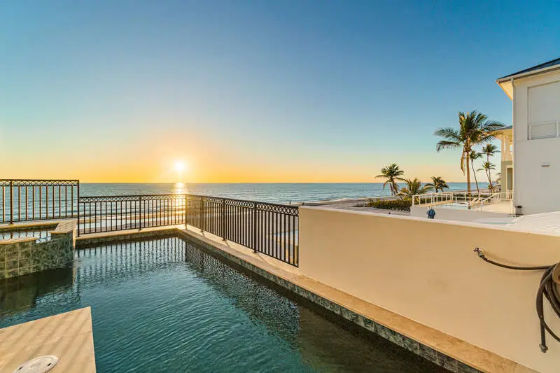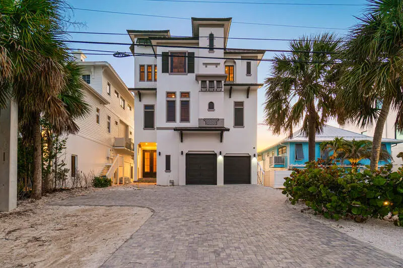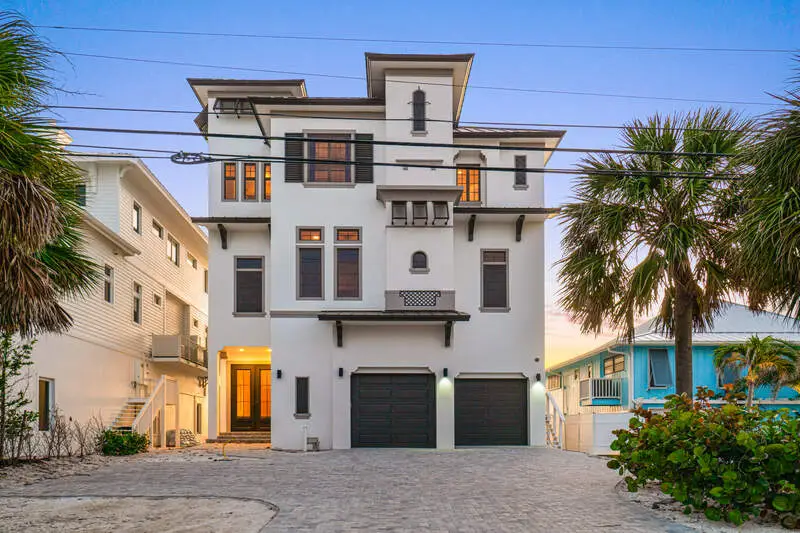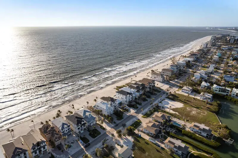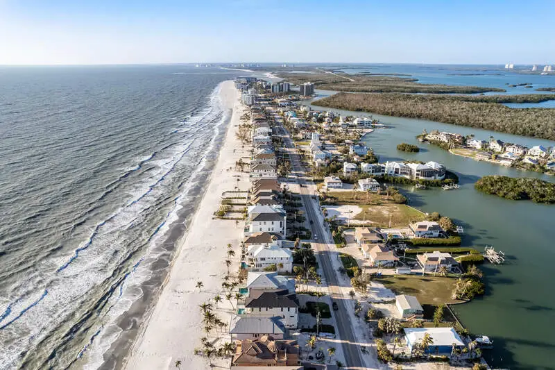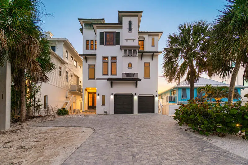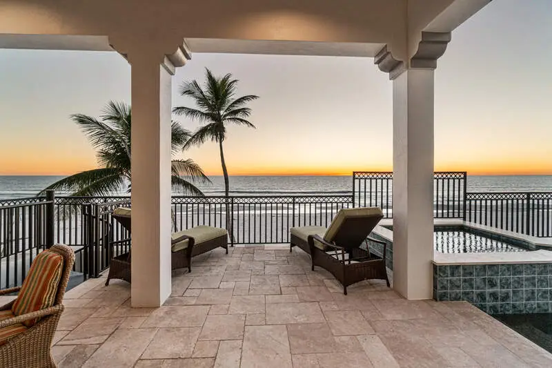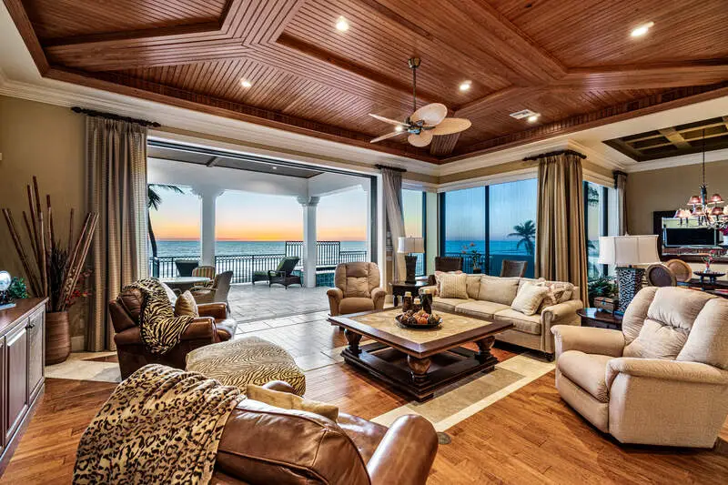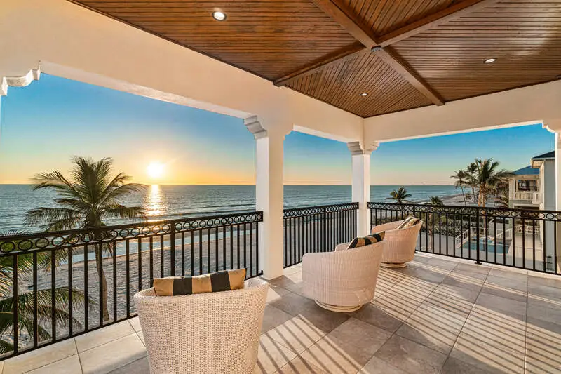 Stunning and newer-built beachfront home with breathtaking views of the Gulf, ideally situated on the highly coveted Bonita Beach. With unobstructed views of the turquoise waters and pristine white sands, this home is a true coastal gem. Built like a fortress, this home features all concrete-block construction and brand-new hurricane impact windows and sliders. Perfect for entertaining, the spacious open floor plan includes 4 bedrooms, 5.5 bathrooms, an expansive upstairs bonus room, and a versatile ground-floor flex space. Step outside to a private backyard oasis, complete with a RARE elevated pool and spa, a summer kitchen, and panoramic Gulf views. Inside, you'll find luxurious finishes throughout, including custom wood-paneled coffered ceilings and a seamless blend of hardwood and travertine tile flooring. The chef's kitchen boasts granite countertops, an oversized island, light colored custom cabinetry, an eat-in area, and a breakfast bar perfect for casual dining. Adjacent to the kitchen is a custom bar area with a built-in wine cooler, wet bar, and additional bar seating-ideal for entertaining guests. The expansive primary suite offers a serene retreat with sweeping Gulf views, a private balcony to enjoy spectacular sunsets, and a spa-like bathroom with dual vanities, a frameless glass shower, and a separate soaking tub. The upper-floor bonus room is a versatile space, complete with an ensuite bathroom, wet bar with beverage cooler, and an open-air balcony-perfect for a media room, office, or additional living area. Additional features of this home include a private elevator and a smart lighting system. Close to several fantastic restaurants and only a 10-minute drive to Mercato and the Promenade, with Waterside Shops, Coconut Point, Naples 5th Ave, and the International Airport nearby. Live the ultimate coastal lifestyle with sweeping views of the Gulf-this is luxury living at its finest!