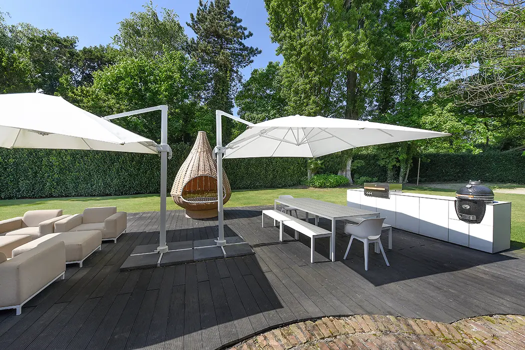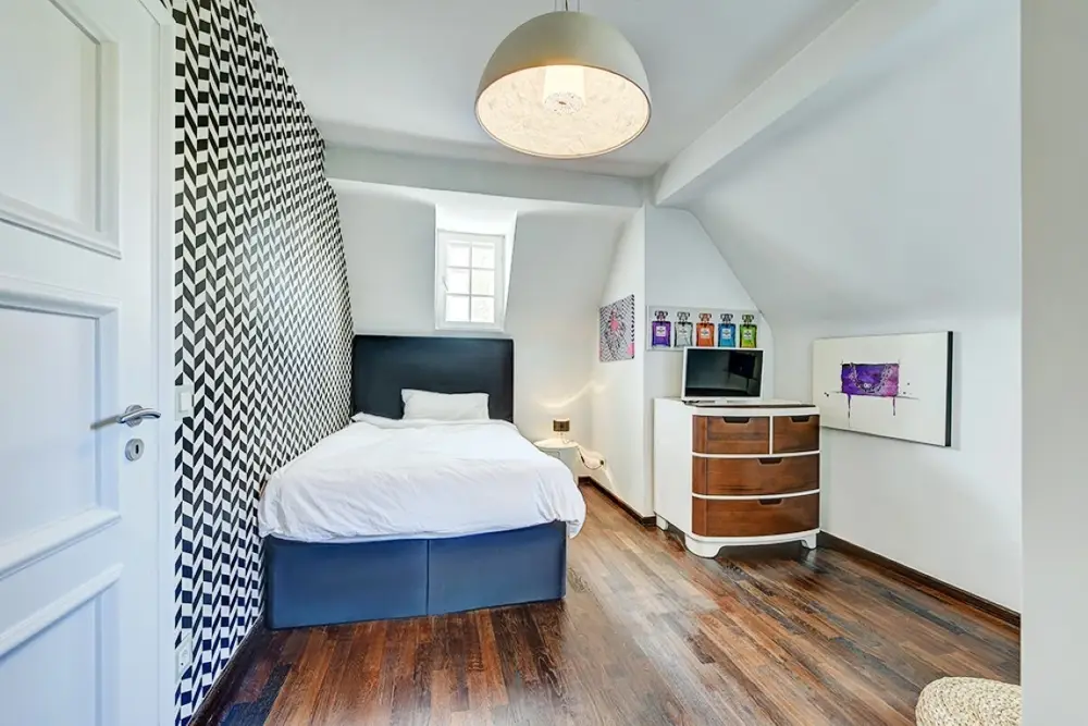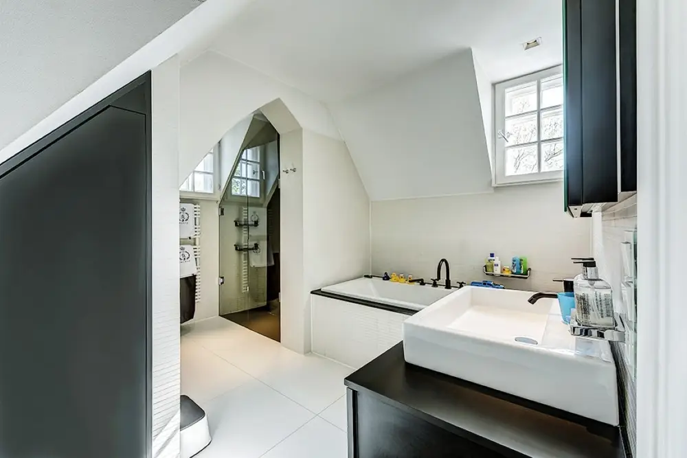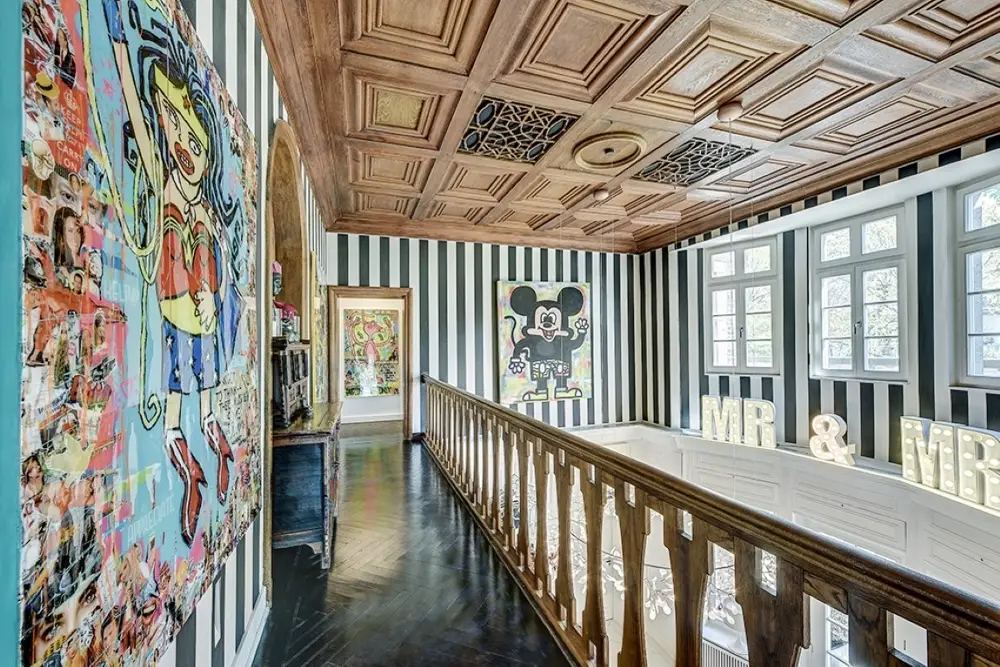 A jewel in one of the most popular residential areas in Düsseldorf. The Art Nouveau mansion, built around 1924 with baroque and gothic style elements, captivates with its stately appearance with classic elegance. The renowned Düsseldorf architect Gotthold Nestler built this impressive villa, which is an important example of upper-class representative architecture based on the classic villa architecture of the 17th and 18th centuries (citation of the list of building loads). The previous owner was the Prince of Thurn and Taxis. Hidden and only accessible through a private driveway and wrought-iron access gate, you can access the approximately 3,800 m² plot. The access road to the upstairs entrance of this villa is lined with 20 flat silver leaf plants and 4 spherical trees and illuminated for a sophisticated evening mood. The entire outdoor facilities are stylishly placed in the right light and can be controlled via the in-house bus system. This also applies to the fully automatic irrigation system. There are 5 car parking spaces and 8 carport spaces on the completely fenced, partly bricked and ingrown property. A carriage house gives them the opportunity to accommodate vehicles, such as in a garage. It is currently used as a storage facility. Adjacent to this is a colorful variety of our own products, such as a lush herb garden, a greenhouse, and an orchard with blackberries, raspberries, strawberries, gooseberries, an apple / pear and quince tree each. The wonderful planting with cherry laurel and rhododendrons offers a fantastic green view and privacy. A large sand court, once designed as a beach volleyball court and the very large meadows that are free to use, round off this harmonious garden around an approximately 111 m² terrace. There is a large whirlpool on the terrace to the side of the villa. An additional guest room with bathroom is available in the form of a mobile guest room on the front side of the property. The economic areas for garden management are also located here. The classic outside staircase with natural stone balustrade railings leads to the entrance gallery and from there to the grand entrance of this extraordinary villa. The view leads directly up over the gallery to the wood-paneled original ceiling at a height of approx. 6.30 m. A marble fireplace surrounds the inviting entrance perfectly. The view opens directly into the wonderful living area with a clear view of the garden. On the right side there is another room, which is currently used as a TV room and in turn connects to the study. This is equipped with original wooden internals of the year of construction and also has a large humidor. The study can also be entered directly from the entrance. To the left is the dining room with its practical and modern fittings, as well as direct access to the kitchen. This is equipped with a high quality fitted kitchen and various electrical appliances. A hob with gas connection and Keppanyaki plate completes this area. The kitchen can also be accessed directly from the entrance. There is a spacious guest toilet between the dining room and the kitchen. This part of the villa can also be accessed via a separate entrance. The basement offers a utility room, a fitness room, a room with wine coolers, the house connection room with heating and other technical equipment, a spacious hall with ceiling-high built-in fittings, and two large and bright guest rooms with 2 bathrooms and access to the garden. In the course of the renovation in 2014, the entire basement was exposed, excavated and drained so that it is used as living space today. Back in the grand entrance, a wide wooden staircase leads to the first floor via a charming landing with windows. The approx. 18 m² bathroom with a great view of the garden and the surrounding fields connects directly to the master bedroom with a terrace of approx. 20 m² and also a wonderful view. Opposite is the fully equipped dressing room. Via the imposing gallery with a wonderful view of the representative entrance, you reach two further bedrooms and a bathroom. On the second floor there is a separate apartment, which consists of a spacious and fully equipped kitchen, as well as a bedroom (2) and a dressing room in the loft. The bathroom is on the opposite side. Through a wide corridor you can reach three other rooms, which are currently used as play / children's and guest rooms. The villa was extensively renovated in 2014 in compliance with the requirements of monument protection and offers luxurious living comfort at the highest level. In addition to a state-of-the-art alarm system and a BUS system, the villa has various handcrafted carpentry fixtures, as well as original wood paneling, paneling and stucco decor from the year of construction. No wishes remain unfulfilled with this piece of jewelry.