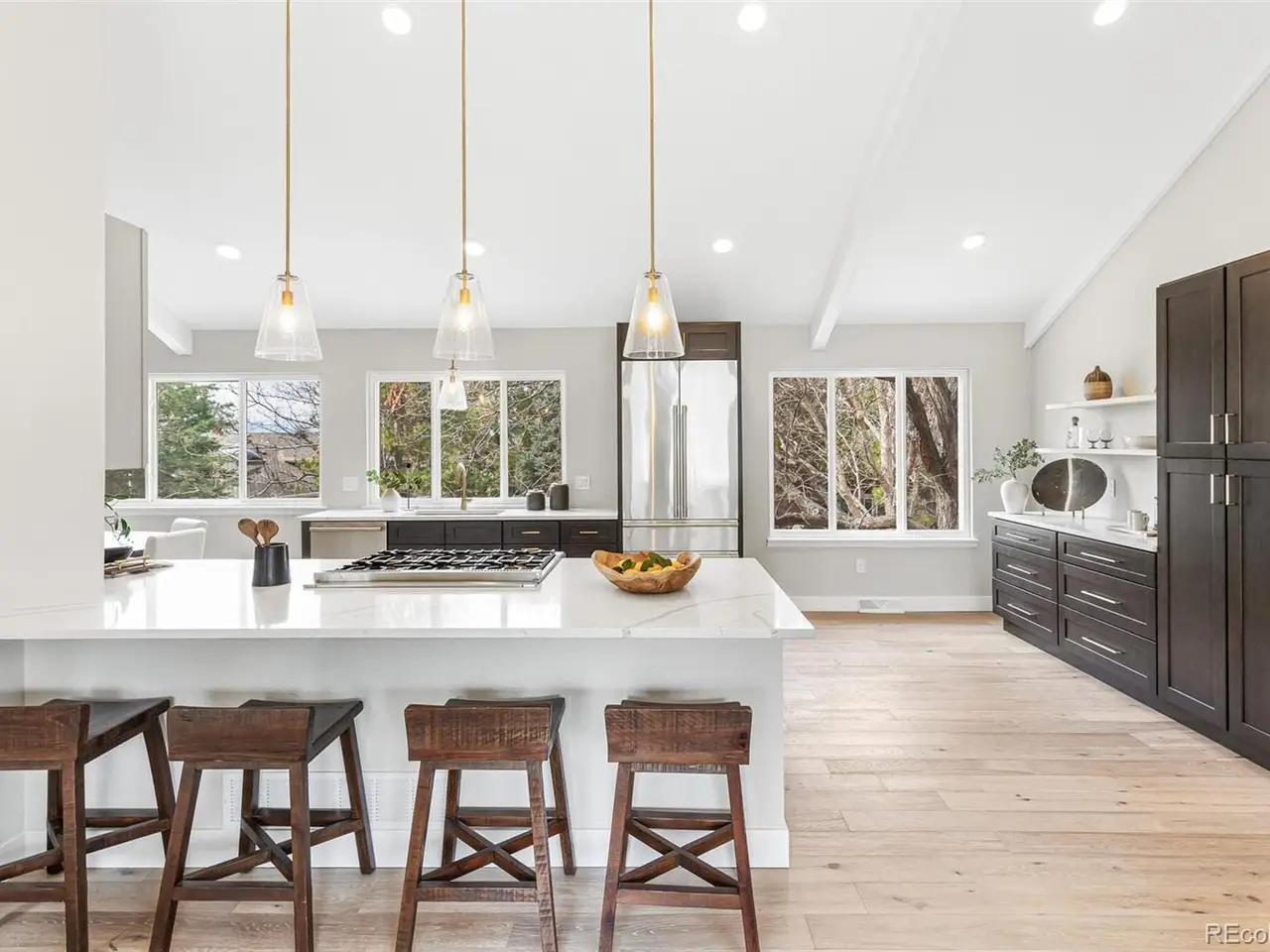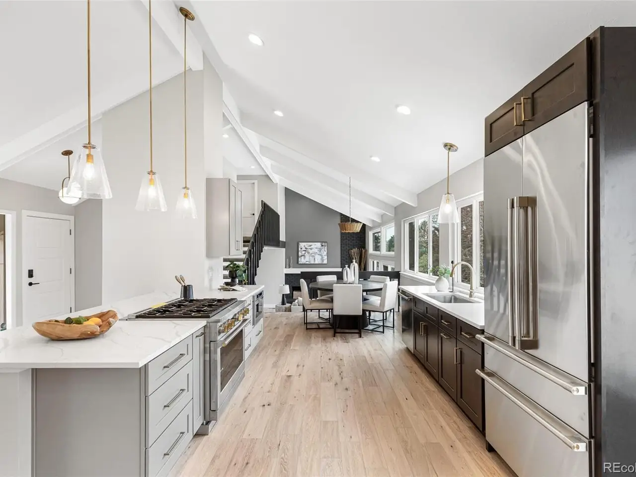 Discover and compare this beautifully remodeled contemporary home in Heritage Greens, perfectly located on a peaceful cul-de-sac just steps from Linksview Park and the South Suburban Golf Course. This home blends modern design with everyday comfort, featuring an urban-inspired interior and a stunning new kitchen outfitted with GE Monogram appliances, Highland Shaker cabinetry, and custom tilework. Expansive ceilings and large Amerimax vinyl windows (installed in 2023) flood the space with natural light, highlighting new wood flooring and plush custom carpeting throughout. The newly finished, permitted walkout basement offers a family room and 3/4 bathperfect for entertaining guests or enjoying quiet evenings at home. Sophisticated touches, including Misterio, Lux Aurum, and Pental polished quartz countertops, enhance the kitchen and bathrooms, complemented by Kohler fixtures and custom lighting. Recent upgrades include fresh exterior paint, new 4-inch gutters (2024), a refinished back deck, and an epoxied garage floor. The upgraded electrical panel and improved attic insulation add peace of mind and energy efficiency. Experience refined modern living in Heritage Greenswhere style, comfort, and location come together seamlessly.