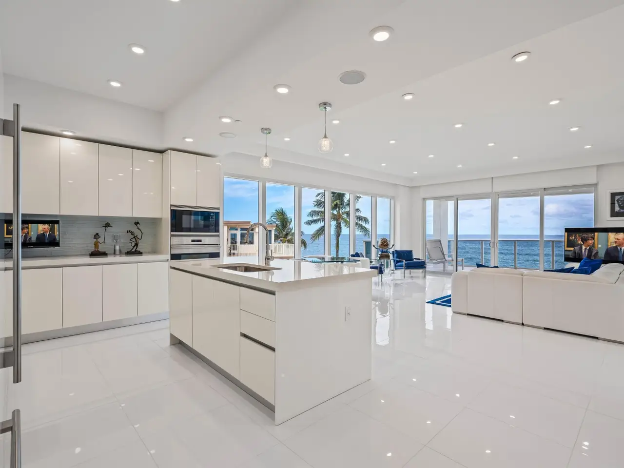 FIRST TIME ON THE MARKET, RARE OCEANFRONT CORNER PENTHOUSE WITH SWEEPING OCEAN VIEWS UP & DOWN THE COAST ON A SERENE STRETCH OF BEACHFRONT. IMPECCABLY MAINTAINED, THIS STUNNING RESIDENCE IMPRESSES WITH SOARING CEILINGS, FLOOR-TO-CEILING IMPACT-RATED GLASS FLOODING THE SPACE WITH NATURAL LIGHT, A CHEF'S KITCHEN WITH CUSTOM EUROPEAN CABINETRY, QUARTZ COUNTERTOPS, AND HIGH-END APPLIANCES (BOSCH, WOLF, SUB-ZERO). THE SPACIOUS PRIMARY SUITE OPENS TO AN OCEANFRONT BALCONY AND OFFERS MESMERIZING VIEWS, SPA-LIKE BATH & DUAL WALK-IN CLOSETS. TWO ADDITIONAL GUEST SUITES PROVIDE GENEROUS STORAGE. CONTROL4 HOME AUTOMATION INCLUDES CUSTOM LIGHTING, ELECTRIC SHADES, & SPEAKERS. 1200 HILLSBORO MILE IS A BOUTIQUE BUILDING WITH PRIVATE BEACH ACCESS, INTRACOASTAL DAY DOCK, TWO POOLS, AND A FITNESS CENTER.