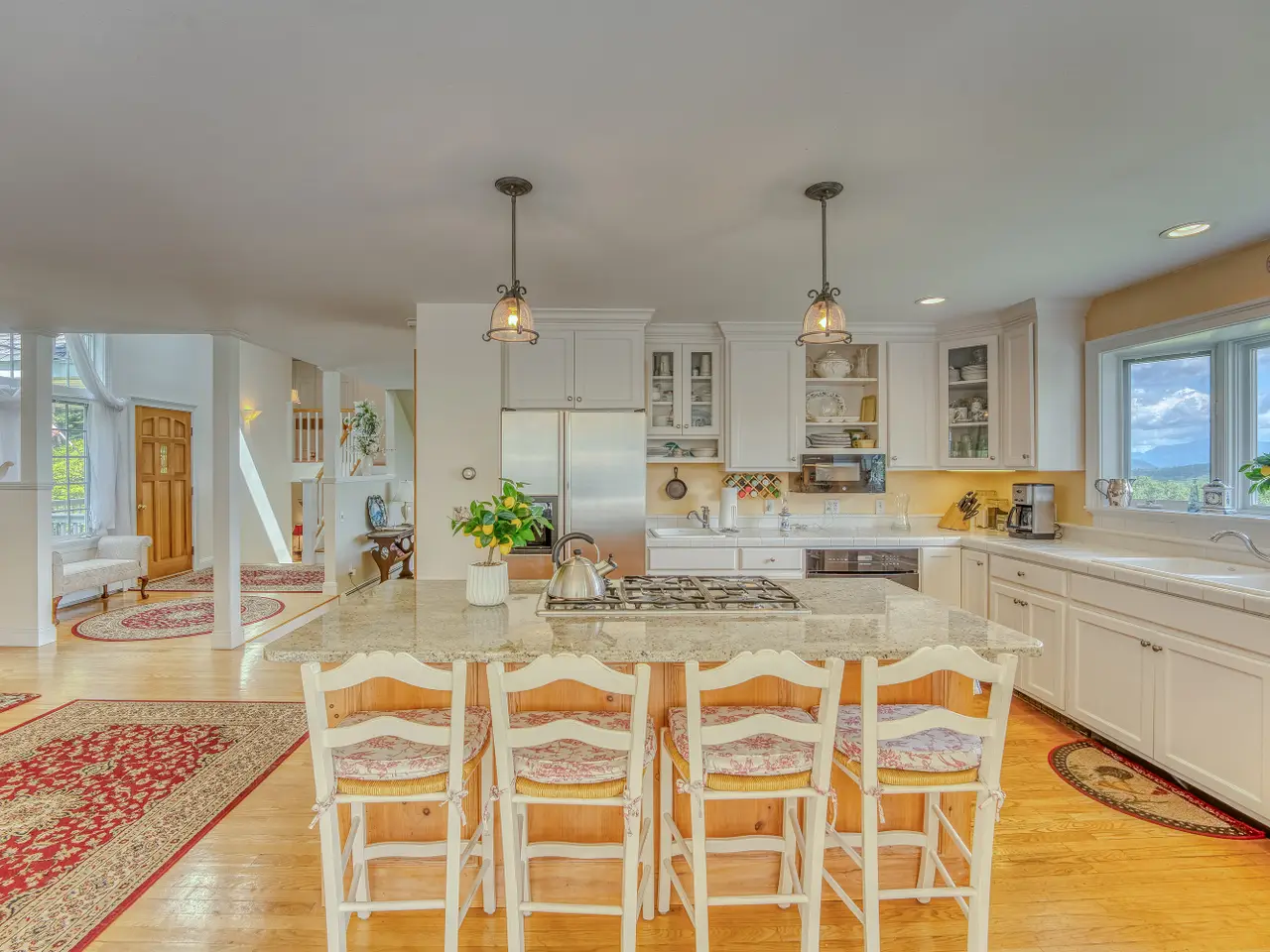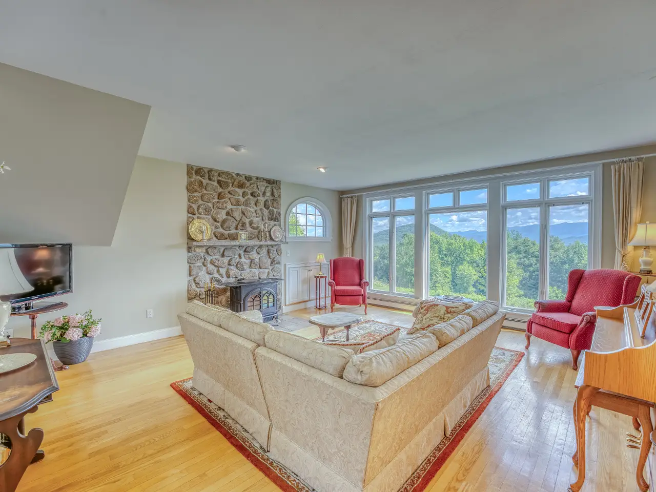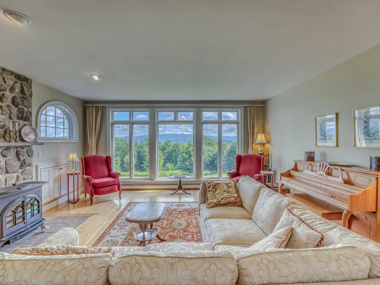 Elegance, quality, and refinement define this exceptional property inside and out. As you travel down the long private driveway, you’re welcomed by beautifully maintained grounds and gardens leading to the front entrance. Along the way, glimpses of the property's breathtaking views peek through the trees, hinting at what's to come. Inside, you're immediately struck by the home's impeccable condition and craftsmanship. The living room features oversized windows that frame a sweeping panorama of the White Mountains—from Franconia Notch in the north to Sandwich Dome in the east. Just off the kitchen, the sunroom is a true showpiece. Whether you're enjoying coffee here or on the adjacent deck, the stunning views over fields and mountains create a peaceful, relaxing atmosphere sure to melt stress away and set the tone for your day. Upstairs, the primary suite includes its own private deck with the same breathtaking views. Two additional bedrooms, a guest room, and a home office provide plenty of flexible space. The finished lower level includes a complete in-law apartment with its own kitchen, bath, and laundry—perfect for extended family or guests. Every detail of this home reflects pride of ownership and thoughtful design. Far from ordinary, this elegant property offers a refined, private sanctuary in which you can peacefully enjoy the pleasures of New Hampshire's White Mountains.