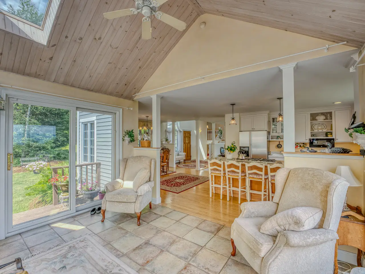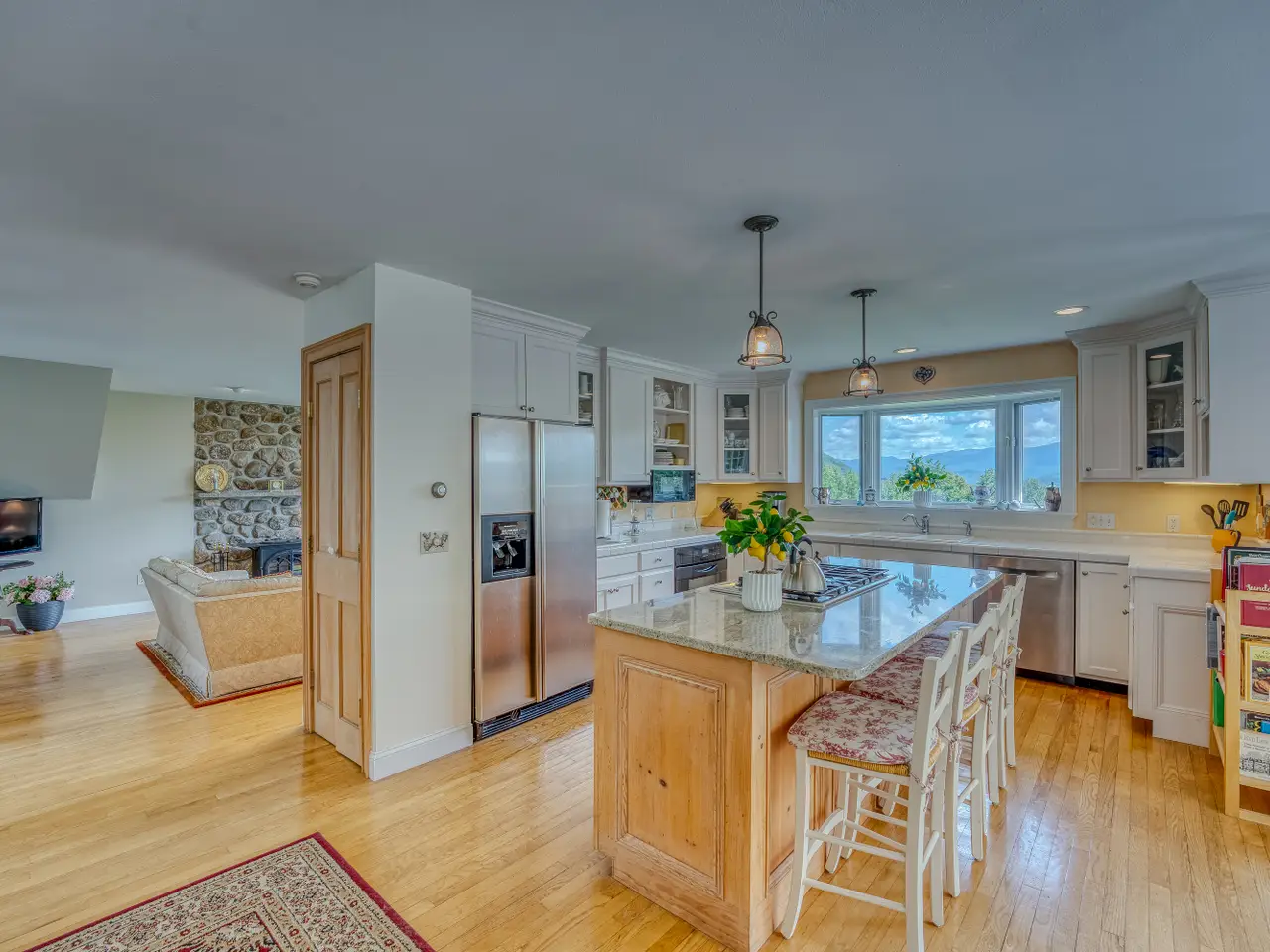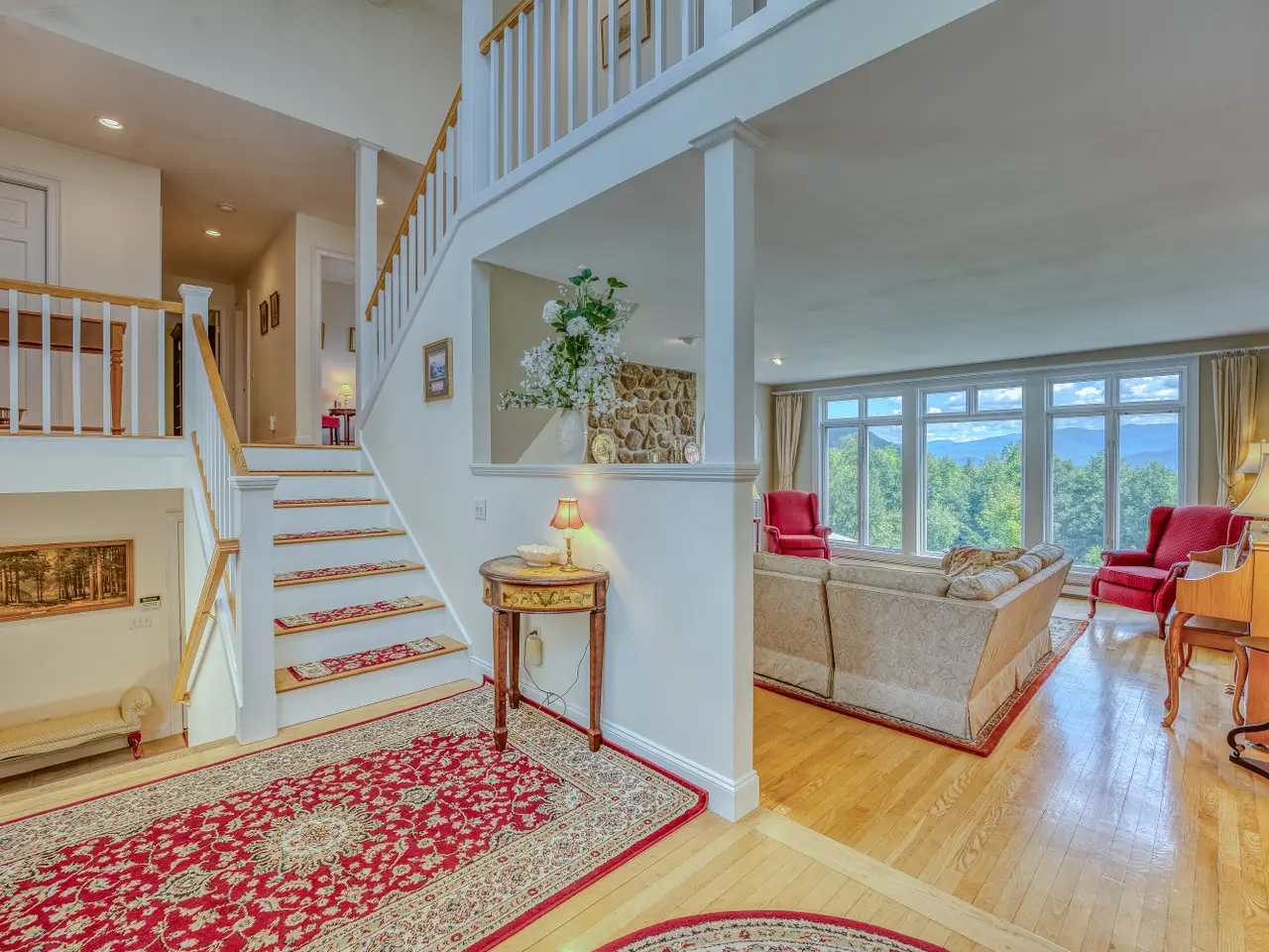 Elegance, quality, and refinement define this exceptional property inside and out. As you travel down the long private driveway, you’re welcomed by beautifully maintained grounds and gardens leading to the front entrance. Along the way, glimpses of the property's breathtaking views peek through the trees, hinting at what's to come. Inside, you're immediately struck by the home's impeccable condition and craftsmanship. The living room features oversized windows that frame a sweeping panorama of the White Mountains—from Franconia Notch in the north to Sandwich Dome in the east. Just off the kitchen, the sunroom is a true showpiece. Whether you're enjoying coffee here or on the adjacent deck, the stunning views over fields and mountains create a peaceful, relaxing atmosphere sure to melt stress away and set the tone for your day. Upstairs, the primary suite includes its own private deck with the same breathtaking views. Two additional bedrooms, a guest room, and a home office provide plenty of flexible space. The finished lower level includes a complete in-law apartment with its own kitchen, bath, and laundry—perfect for extended family or guests. Every detail of this home reflects pride of ownership and thoughtful design. Far from ordinary, this elegant property offers a refined, private sanctuary in which you can peacefully enjoy the pleasures of New Hampshire's White Mountains.
