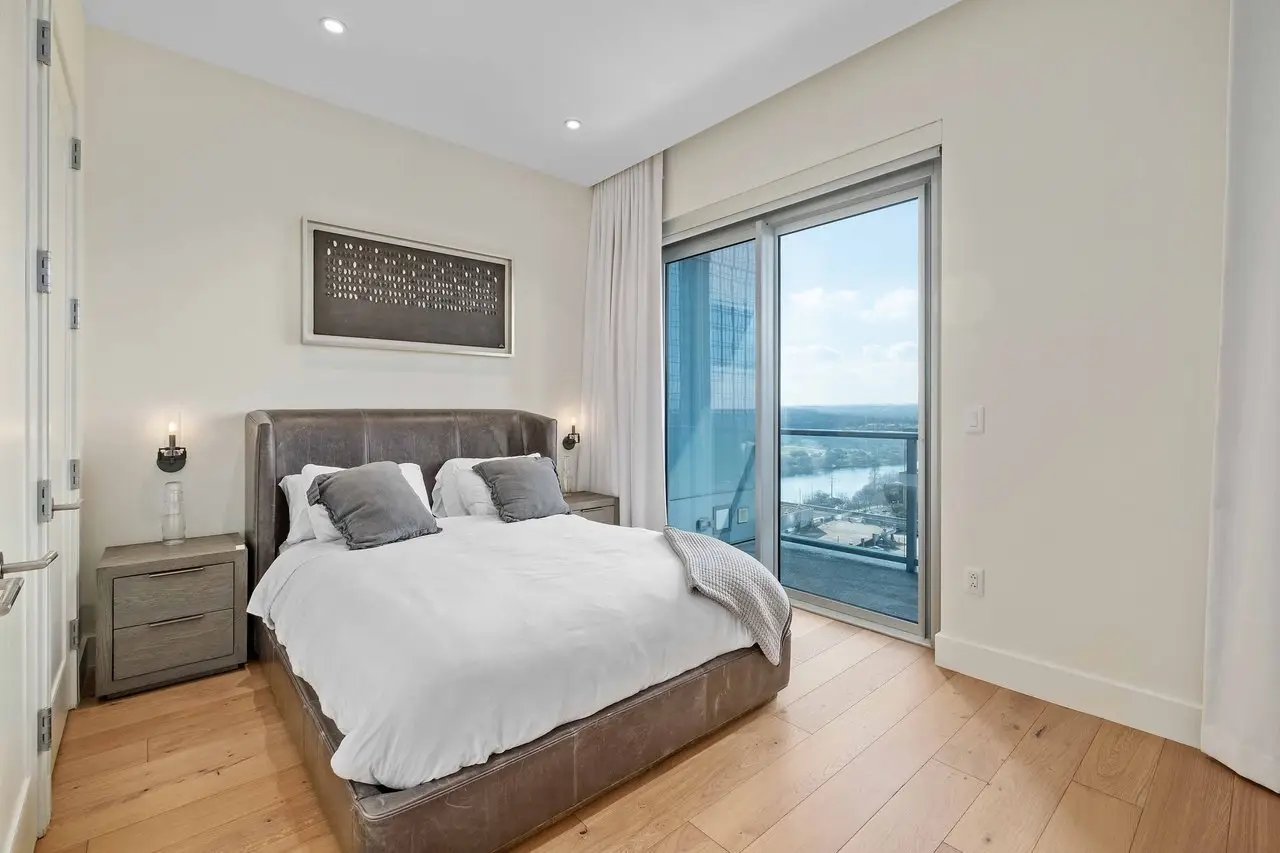 Contemporary 3-Bedroom Residence at The Austonian Enjoy views of Congress Avenue, the Frost Tower and State Capitol from this North and West facing 18th floor residence at The Austonian. Beautifully showcased by museum white walls against floor-to-ceiling windows that artfully light up Austin’s iconic skyline. Picturesque views of Congress Avenue adorn the North balcony and master suite, while Texas sunsets paint views over Lady Bird Lake from the kitchen, living and dining. An entertainer’s dream open plan displays dark Scavolini cabinetry, white stone countertops, and an expansive prepping island. Outfitted with Waterworks fixtures, Wolf appliances, Sub-Zero refrigerator and an oversized wine fridge; the kitchen serves as both a gathering place and a superior prepping space. Take in the city views from both north and west-facing terraces. Two additional bedroom suites complete the south end of the residence with a West facing balcony. The Austonian is the epitome of luxury downtown living, leading the market since its inception in 2008, and constantly challenging the status-quo with its world-class services, amenities, and design. 18AE sits atop this glorious building, presenting you with a backdrop of Austin’s famed skyline, including two balconies. Feel on top of the world and let this extraordinary home welcome you to ultra-luxury living. With Austin’s finest restaurants and entertainment within walking distance, this home offers a lifestyle unmatched in downtown Austin. And in addition to the Austonian’s world-class services and amenities, 18AE also conveys with three parking spaces and a climate-controlled storage unit. Location is supreme – with coveted views and coveted centrality. This dream-home in the sky caters to all your needs and is an extraordinary opportunity to live in a custom-built dream home.