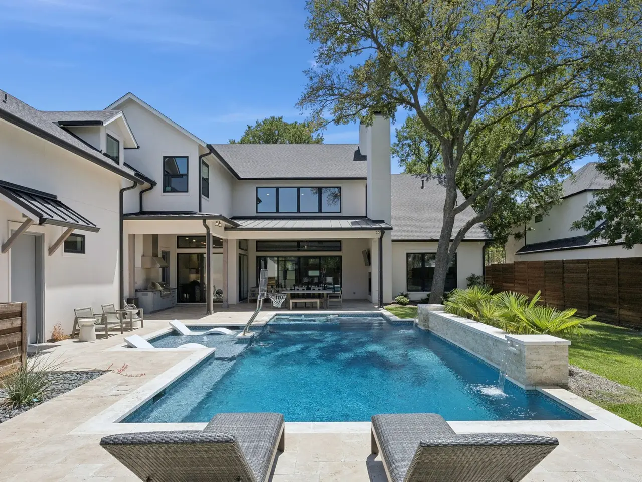 Do not miss this opportunity to own an exclusive Desco Custom Home that shows like brand new in the exclusive North Dallas' Melshire Estates inside the Preston Hollow vicinity. Step inside this immaculate 6,500 square foot estate on a half-acre corner lot with a four-car garage plus five bedrooms, six full baths, one half bath plus a huge bonus room that could be a 6th bedroom! Entertain in the incredible chef's kitchen with an oversized island, high-end stainless appliances, plus a sophisticated, private catering kitchen! Excellent resale value with the downstairs primary suite with a 350 square foot stunning closet plus a downstairs guest suite, a private executive study, a media room and wet bar. Upstairs you will find the other three bedrooms each with their own private bathroom and fabulous playroom which could be another living space plus the huge bonus room that could be an oversized 6th bedroom! This home has tons of storage and walk-in attic spaces! And yes, for the car enthusiast, 5861 Meletio feautures the best of the best garage from the floor treatment to the top of the immaculate 4 car garage at its own 1,263 sq ft alone! The almost brand new pool awaits with waterfalls, HUGE backyard space, as well, plus two covered patios: one for living (23 x 16) with a wood burning fireplace, and the other for grilling (11 x 14) with Coyote grill. Ready to entertain a crowd or simply enjoy your own private luxury retreat!