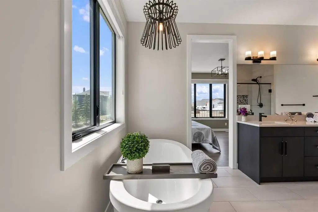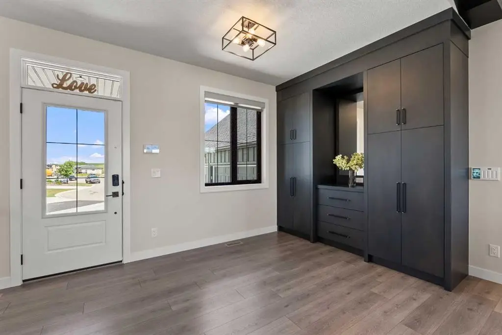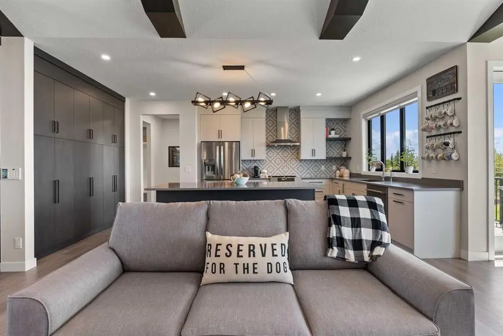 Discover this beautiful home just outside of Cochrane in Monterra. Offering nearly 3,400 sq ft of thoughtfully developed living space on a generous 0.45-acre lot, it delivers the top-tier essentials buyers crave. The main floor impresses with an open, airy design featuring vaulted ceilings that create a bright, inviting atmosphere. The spacious kitchen boasts a large island and soft-close cabinets, flowing seamlessly into the dining and living areas—ideal for hosting family and friends. The primary suite is a private sanctuary, with an elegant ensuite that includes a soaker tub, shower, and dual sinks, complemented by a large walk-in closet with built-in organizers. Convenience is key with a well-appointed laundry room located along the corridor to the heated, insulated triple garage. Step outside onto expansive decks—12x28 feet on both levels—that are perfect for outdoor entertaining. The lower deck features a hot tub, offering a relaxing retreat with stunning mountain views. Throughout the home, you’ll find custom built-ins, including a dedicated office with custom cabinetry and a built-in pantry for ample storage. The finished basement provides additional living space with two bedrooms, a spacious rec room that opens to a large patio, and a versatile three-season room equipped with retractable screens to enjoy the outdoors in comfort. This property combines luxurious finishes, practical design, and breathtaking natural scenery—making it an exceptional place to live and entertain.