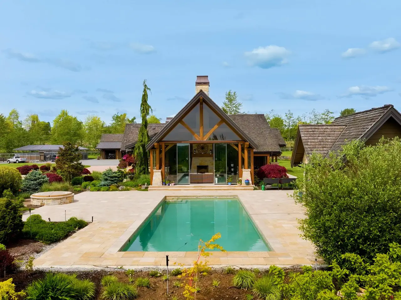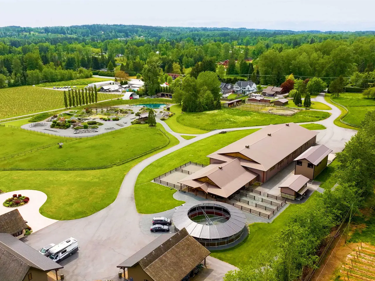 This private 15.19-acre equestrian estate in Campbell Valley offers stunning views of Mt Baker & Chaberton Estate Winery. Designed for horse enthusiasts, it features an indoor riding ring, 10 paddocks, heated tack room, equestrian mountain course, a perimeter riding track, & a covered hot walker. The 4,000+ sqft rancher includes 3 bedrooms, 4 bathrooms, & an elegant layout with spacious living areas. Outdoor highlights include lush gardens, pool, & a gated entrance offering privacy & tranquility. For vehicle storage & hobbies, enjoy a 4-car attached garage, a separate 3-car garage, & a large shop. This rare offering blends equestrian excellence with luxury living in one of Langley’s most sought-after locations, providing the perfect balance of nature, recreation & refined country living.