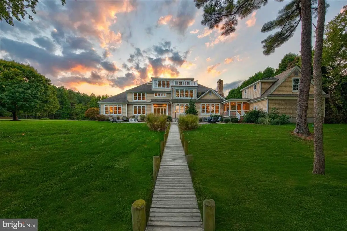 This stunning waterfront estate home in the Cedar Creek community blends Coastal and Transitional architecture. Surrounded with ultimate luxury, comfort and breathtaking accents, this thoughtfully designed and well-appointed custom-built home by White Creek Homes, LLC. is sited on 2+ waterfront acres and a natural shoreline. Standing at the ready, a private dock, an upgraded boardwalk invites water activities including jet skiing, kayaking, canoeing, fishing or just relaxing in the sun. Enjoy endless entertainment venues including a screened porch, Professional landscaping and hardscaping including expansive paver patios, as well as a gas hook up for grilling and fire pit. Inside, a gracious foyer is sided by formal living with a fireplace and built-ins, and a formal dining room opposite with a bay window, designer chandelier and adjacent wet bar with wine cooler. The extended foyer draws your sightline and offers immediate access to outdoor living and water views. Tailored to perfection, the main level living offers elevator service to all three levels and a private wing with a secluded primary bedroom suite with water views, a dressing room, two walk-in closets and a spa like luxury shower and jetted tub. Windows abound and frame water views in a stunning work at home office outfitted with refined coastal paneling and a wall of built-in cabinetry. Robust with light streaming from waterside windows, the adjacent breakfast room embraces water views on one side and an outstanding chef's kitchen on the other side. A commanding entertainers island with a breakfast bar and pendants is accompanied by Wolf Appliances, custom cabinetry, back splash and full size Sub-Zero fridge and freezer seamlessly paneled and flanking a barrel vaulted Dutch door that opens to a secondary side entry, drop cubbies, half bath, and second laundry. The thoughtfully curated floor plan unfolds seamlessly to a family room crowned by a dramatic vaulted ceiling and decorative trusses adding a curated and artful aesthetic with access to the screened in porch. Entertaining venues allow guests to meander from outdoor to indoor spaces by way of the screened porch, central hall porch, or side secondary entry. Enhancements that conclude the main level include an extended butler's service station, dry-bar with kick-vac and secondary back stair. Upstairs, there are four more en-suite bedrooms, a guest flex bedroom, and a spacious laundry room with cabinetry, surfaces for folding, and a utility sink. Another winding staircase with a sun-lit landing rises to the billiards area, half bath, and recreation room with more inviting panoramic views from the waterside balcony on the top level. This resort styled property is serenely private and secluded, yet within minutes to the vibrant amenities in nearby Ocean City by car or pontoon. Design elegance, quality finishes, and attention to detail distinguish this home from all others, and it will surely satisfy every expectation with every imaginable amenity. Come home to a very special lifestyle with enduring waterfront comfort and quality that has been immaculately maintained.