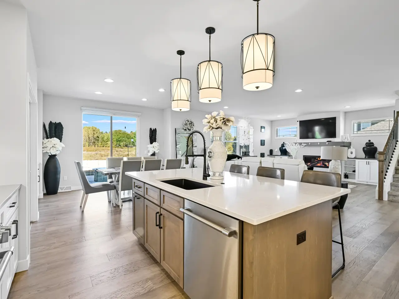 This stunning Veridian home is Quality 360 certified, exceeding energy-efficiency standards and performing, on average, 70% better than a typical used home. The living room features a cozy gas fireplace, while both the lower and upper levels offer electric fireplaces for added warmth and ambiance. The dining area is perfect for family gatherings, and the kitchen delights with abundant cabinetry, quartz countertops, an oversized island, and a convenient butler's pantry. The finished basement includes a rec area and theater for entertainment. All furniture is included, even the outdoor patio set with fire pit. A Lorex smart home system adds modern convenience and security. Located minutes from dining, shopping, the Mequon Public Market, and top-rated Mequon schools. Why build when this opportunity is ready for you!