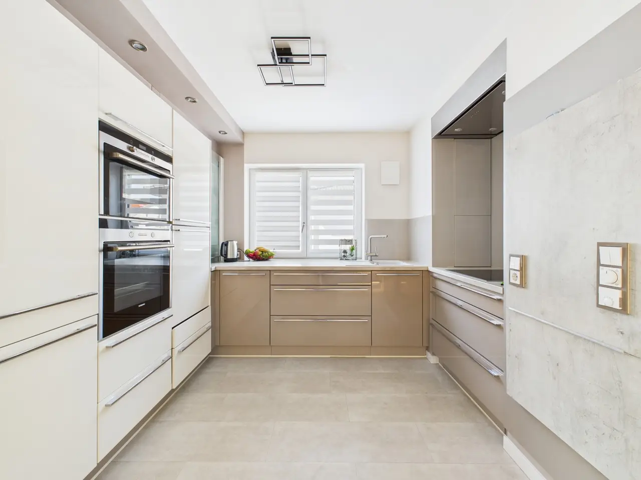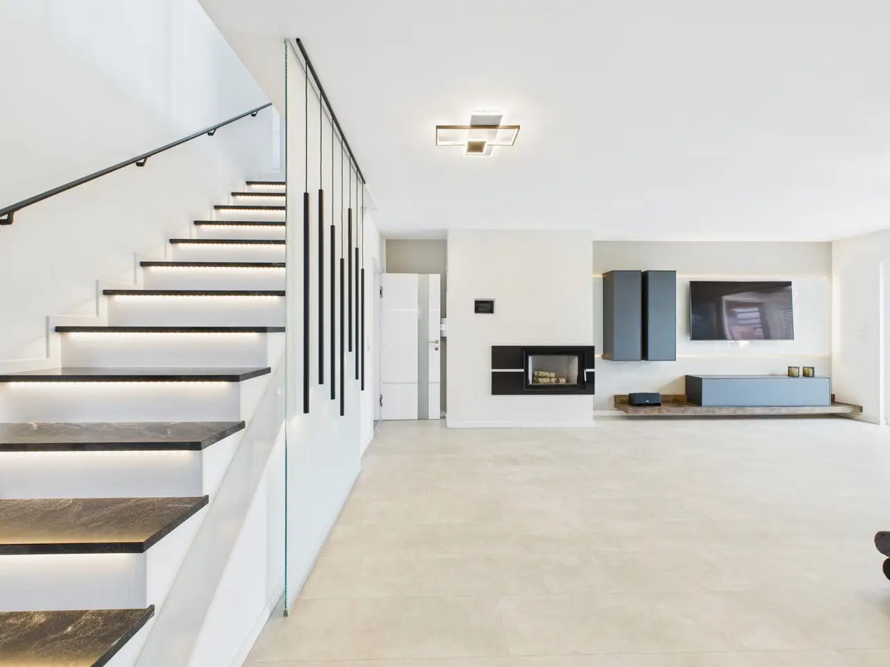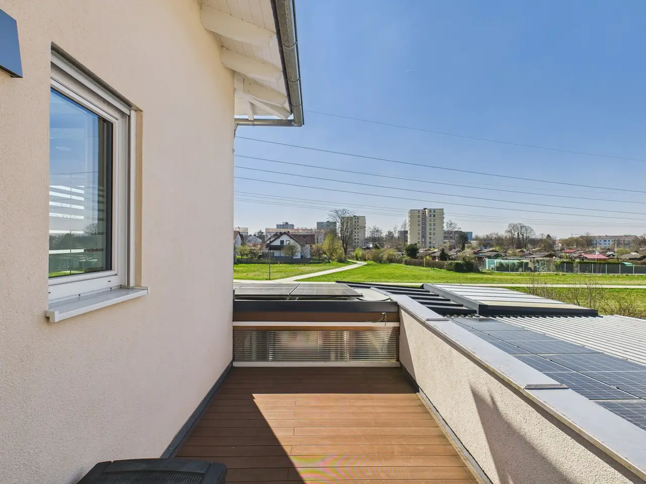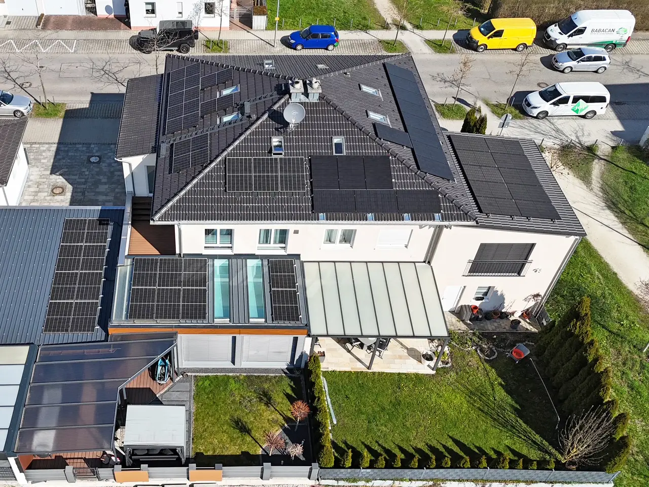 In the middle of the popular and quiet Wolfgangsiedlung estate in Landshut, this exceptional home awaits you with an intelligent room layout, modern technology and a special feel-good character on around 170 m² of living space. Whether as a family home, multi-generational home or a combination of living and working - here you will find space for your visions. Even the bright, open entrance area conveys a feeling of spaciousness. Directly adjacent, the large, modern living room with floor-to-ceiling windows and flowing transition to the dining area invites you to arrive and relax. The timeless kitchen impresses with its clear lines and functionality - perfect for anyone who loves cooking and design in equal measure. A conservatory with a view of the greenery and a covered terrace with a stylish partition wall to the neighbor create an outdoor retreat that unfolds its charm at any time of year - private, idyllic and sheltered. The light-flooded, open staircases with elegant glass walls harmoniously connect the four levels of this house. On the upper floor, you will find a romantically designed bathroom with high-quality fittings, a barrier-free shower, elegant stretch ceilings and a fantastic view of the greenery directly from the bathtub. The spacious master bedroom has a separate dressing room, while two bright children's bedrooms - one of which has access to its own roof terrace - offer individual retreats for each family member. The converted attic creates additional living or storage space - ideal as a work area, studio or teenager's room. Two further rooms await you in the basement: a bright room with a large window and a large hobby room for sports, leisure or home office. The basement is completed by a separate shower room with toilet and a room prepared for a sauna - for your private wellness oasis. If required, the property can also be used as a two-party house - with a separate entrance to the possible granny apartment. This leaves room for flexible living concepts - regardless of whether you are planning for a family, want to unite several generations under one roof or combine living and working. The house is technically well equipped: PV system with storage Groundwater heat pump Triple-glazed plastic windows Decentralized ventilation system with central control Central vacuum cleaner system Modern decalcification system Summary: This modern semi-detached house is a real space miracle in one of Landshut's most sought-after locations. The Wolfgangsiedlung offers a perfect combination of tranquillity, family-friendliness and urban proximity - a place where you will feel at home for a long time. You can call up the 360-degree digital tour under this link: