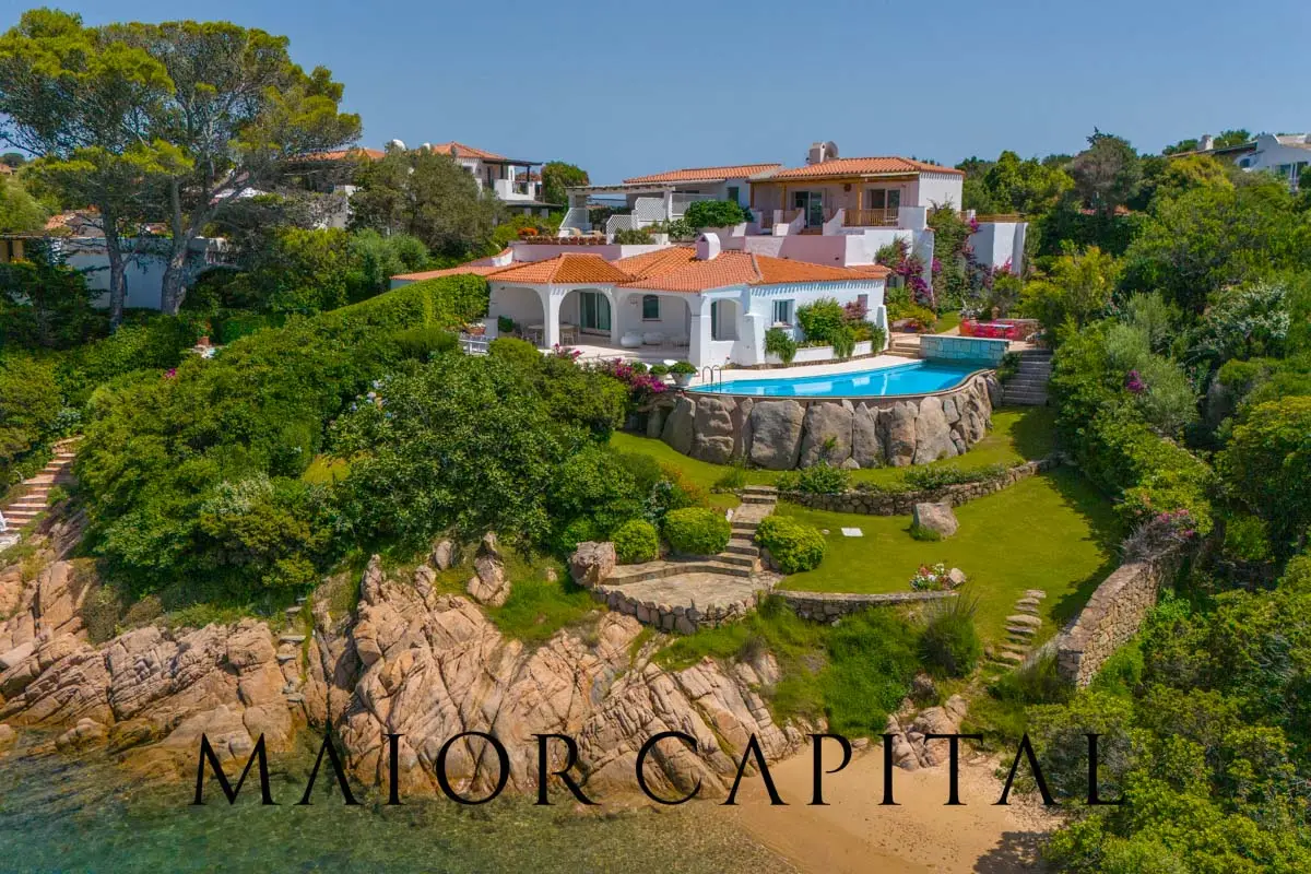 This exclusive villa, a rare and precious gem, stands on the front row of the sea in Porto Cervo, offering breathtaking views of the crystal clear Sardinian sea. With a privileged location providing direct access to the sea and the most exclusive amenities, this property is the perfect embodiment of Costa Smeralda™ living. Iconic architecture and elegant spaces: Designed in the 1960s by renowned architect Luigi Vietti, this luxury villa fully reflects the iconic Costa Smeralda style. Covering an area of approximately 340 sqm and surrounded by a lush 1300 sqm garden, the property envelops its guests in an oasis of tranquillity and privacy, leading directly to a small beach on the harbour. Experience Luxury: Imagine waking up every day surrounded by the incomparable beauty of the Sardinian sea, strolling along the beach just a few steps from your door, or setting sail to enchanting islands and coves, discovering a new corner of paradise every day. Admire the spectacle of yachts and superyachts sailing majestically over the crystal-clear waters, making every moment spent outdoors an experience of luxury and serenity. Panoramic terraces for exclusive relaxation: The villa's private entrance opens onto a series of verandas and uncovered terraces, from which there are spectacular views of Porto Cervo's Marina Nuova and the Yachting Club. On these terraces, it is easy to indulge in total relaxation, living a unique experience that few in the world can afford. Fine details and modern comfort: The villa is enhanced by a magnificent infinity pool, with a large solarium and an internal patio ideal for contemplating the surrounding panorama. The interior, completely renovated in 2011, combines tradition and modernity while maintaining Vietti's original design. The simple, organic forms blend perfectly with nature, while the local materials - such as juniper wood, granite and lime masonry - evoke Sardinian, Gallura, Provençal and Spanish influences. Exclusive privacy and comfort: The property also includes covered parking spaces, ensuring maximum comfort and privacy. This villa is not just a residence, but an exclusive retreat, a unique experience in the heart of the Mediterranean. Here, with an unparalleled view of Porto Cervo and direct access to the best boutiques and exclusive clubs, luxury becomes a way of life. The villa is composed as follows: • Entrance • Living room with sea view • Kitchen • Five bedrooms with en suite bathroom • Guest bathroom • Laundry room • Verandas and uncovered terraces • Large solarium with pool • Annexe with two bedrooms and a bathroom • Private garden on three sides 10 good reasons to choose it: #1 Unique location, first row on the sea in Porto Cervo #2 Exclusivity: designed by renowned architect Luigi Vietti, this villa represents a unique piece of the Costa Smeralda's architectural heritage #3 Luxury and comfort with spacious interiors enhanced by a renovation #4 Total relaxation: enjoy panoramic terraces overlooking the sea and harbour, ideal for relaxation and well-being in a luxurious setting #5 Absolute privacy, surrounded by a lush 1300 sqm garden on three sides, providing privacy and tranquillity #6 Infinity pool for a unique luxury experience, overlooking the crystal-clear Sardinian sea #7 Direct access to the sea: perfect for nautical enthusiasts #8 Fine materials and Sardinian tradition #9 Exclusive lifestyle: a few steps away from the best boutiques and the most exclusive clubs in Porto Cervo, for an all-round luxury experience #10 Prestigious investment: a unique property representing a secure investment in the luxury real estate market of the Costa Smeralda™.