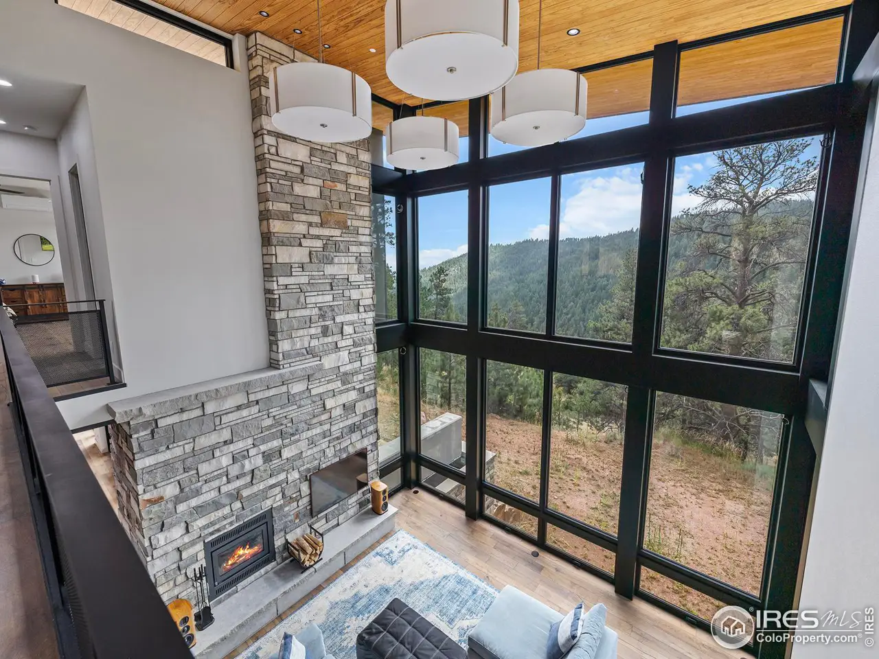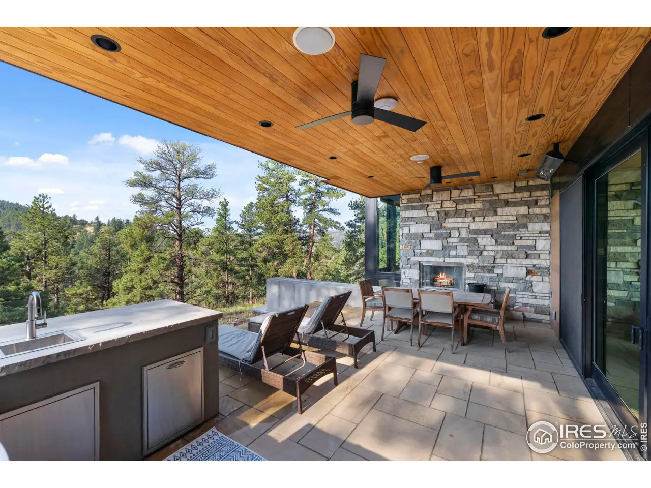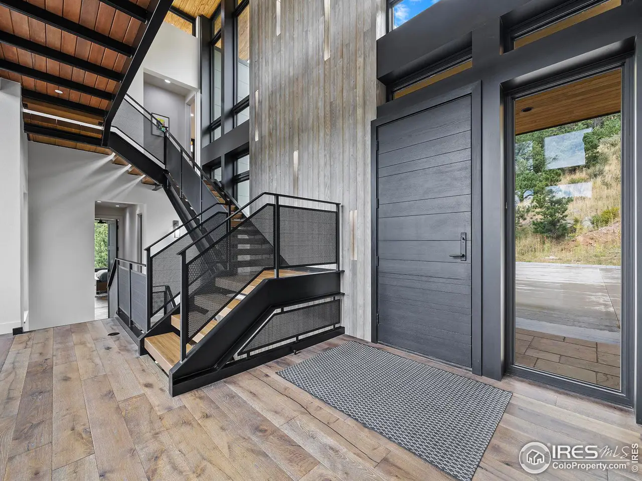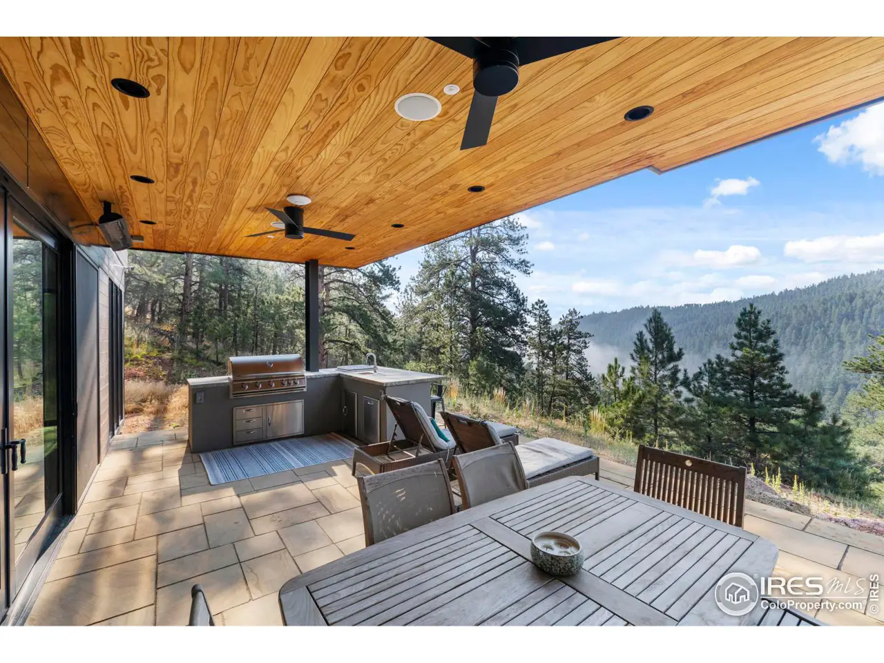 This is your rare chance to own a truly one-of-a-kind 6801 sq ft mountain modern retreat, complete with a brand new 2025 GMC HUMMER EV, on 40 private acres with private trail access to Horsetooth Mountain via Lory State Park, which borders the property on two sides. Whether you're seeking a full-time luxury residence, a high-end second home, or an excellent investment, this property delivers turnkey perfection with trusted service providers already in place. Only 12 miles from Fort Collins, with easy access to Boulder, RMNP, and DIA, this amazing home offers seamless luxury in one of Colorado's most iconic landscapes. Just three years old, impeccably designed, and tucked behind the gates of Redstone Canyon and surrounded by Roosevelt National Forest, this home offers views that go on forever, a profound sense of quiet, and nature in every direction. Floor-to-ceiling windows frame dramatic mountain vistas where passing storms and golden sunsets give way to full rainbows in the valley below - a rare, ever-changing display of Colorado's natural beauty. Crafted by the award-winning Vertical Arts and Hammersmith Structures, the architecture fuses warm materials like steel, stone, and concrete with soaring ceilings and wide-open sightlines. This is a home built for real living - thoughtful storage, durable materials, zero-maintenance and fireproof exterior finishes, and energy-conscious systems including solar/geothermal prep, EV chargers, heat pumps, and a 5,000-gallon water cistern. The home features a chef's kitchen with commercial appliances, a massive island, and a full outdoor kitchen. Thoughtfully designed living spaces include flexible offices, a spa-like main suite, en suite guest quarters, a bar and game room, home theater, and a reinforced safe room. Outdoors, enjoy private trail access and an oversized garage with EV chargers and optional third car bay. Every detail is handled-just move in and enjoy.