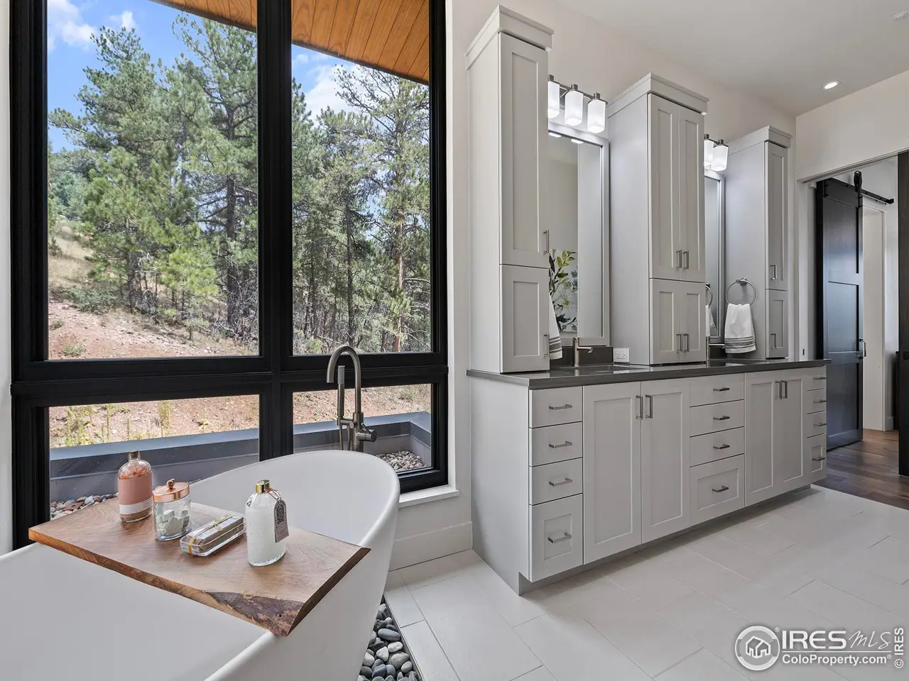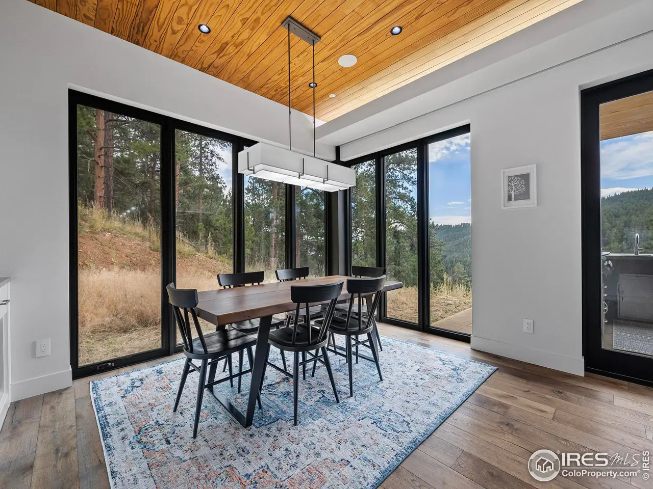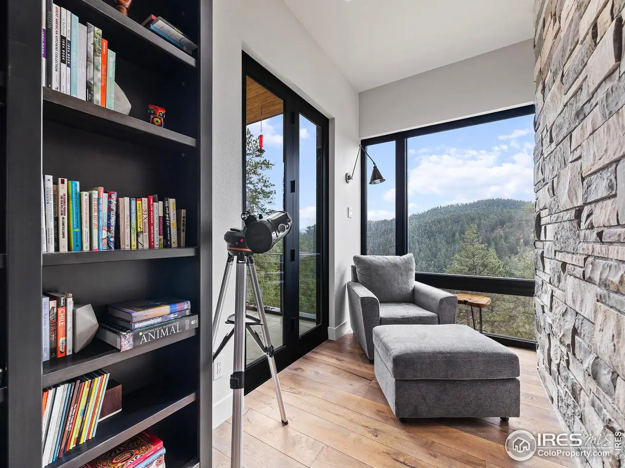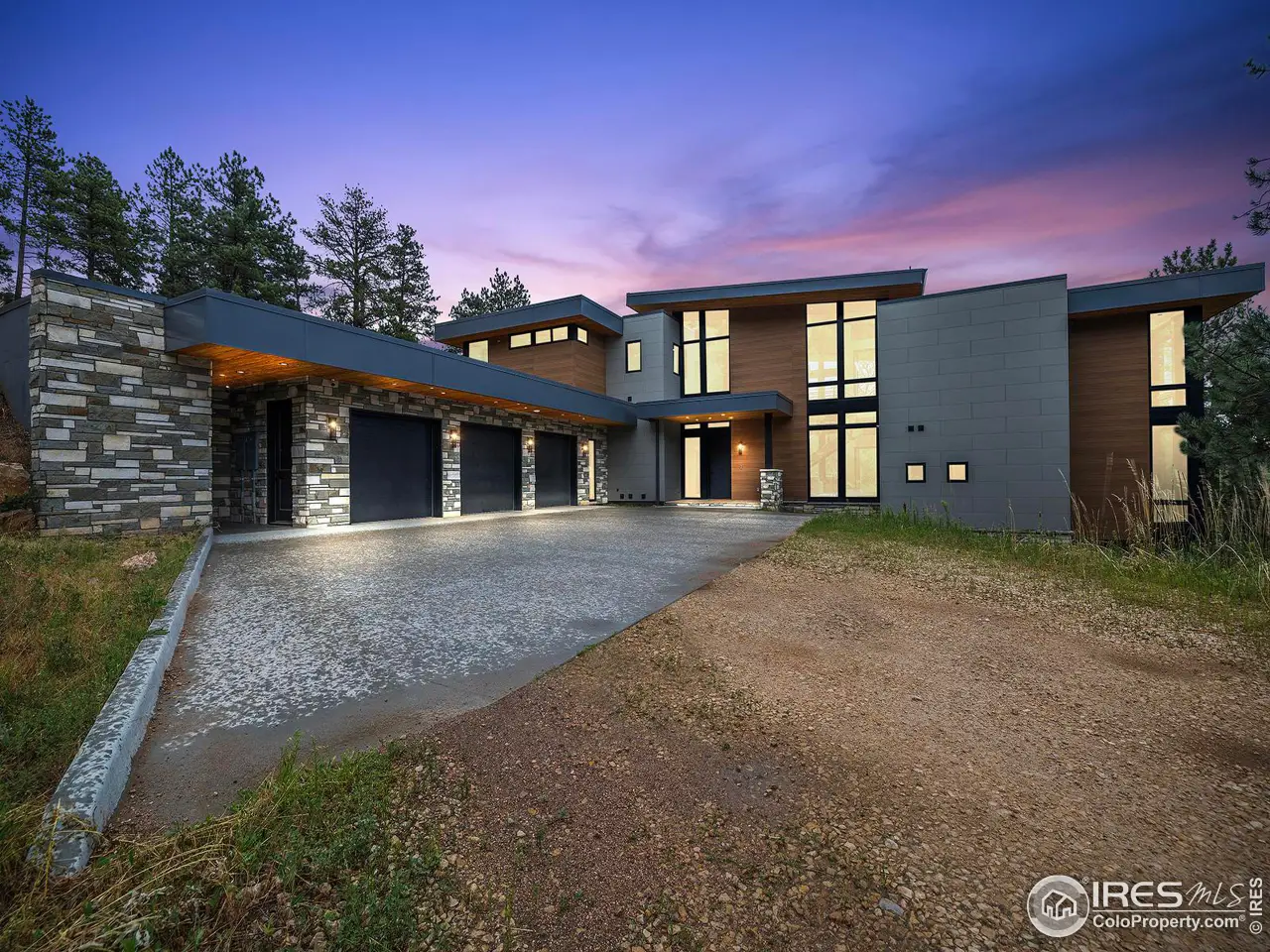 This is your rare chance to own a truly one-of-a-kind 6801 sq ft mountain modern retreat, complete with a brand new 2025 GMC HUMMER EV, on 40 private acres with private trail access to Horsetooth Mountain via Lory State Park, which borders the property on two sides. Whether you're seeking a full-time luxury residence, a high-end second home, or an excellent investment, this property delivers turnkey perfection with trusted service providers already in place. Only 12 miles from Fort Collins, with easy access to Boulder, RMNP, and DIA, this amazing home offers seamless luxury in one of Colorado's most iconic landscapes. Just three years old, impeccably designed, and tucked behind the gates of Redstone Canyon and surrounded by Roosevelt National Forest, this home offers views that go on forever, a profound sense of quiet, and nature in every direction. Floor-to-ceiling windows frame dramatic mountain vistas where passing storms and golden sunsets give way to full rainbows in the valley below - a rare, ever-changing display of Colorado's natural beauty. Crafted by the award-winning Vertical Arts and Hammersmith Structures, the architecture fuses warm materials like steel, stone, and concrete with soaring ceilings and wide-open sightlines. This is a home built for real living - thoughtful storage, durable materials, zero-maintenance and fireproof exterior finishes, and energy-conscious systems including solar/geothermal prep, EV chargers, heat pumps, and a 5,000-gallon water cistern. The home features a chef's kitchen with commercial appliances, a massive island, and a full outdoor kitchen. Thoughtfully designed living spaces include flexible offices, a spa-like main suite, en suite guest quarters, a bar and game room, home theater, and a reinforced safe room. Outdoors, enjoy private trail access and an oversized garage with EV chargers and optional third car bay. Every detail is handled-just move in and enjoy.