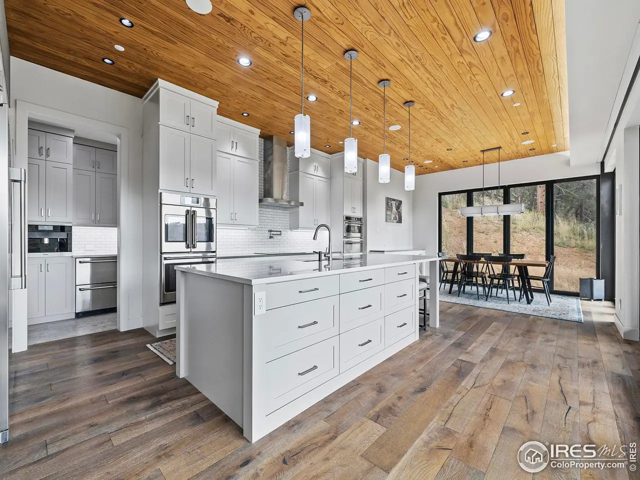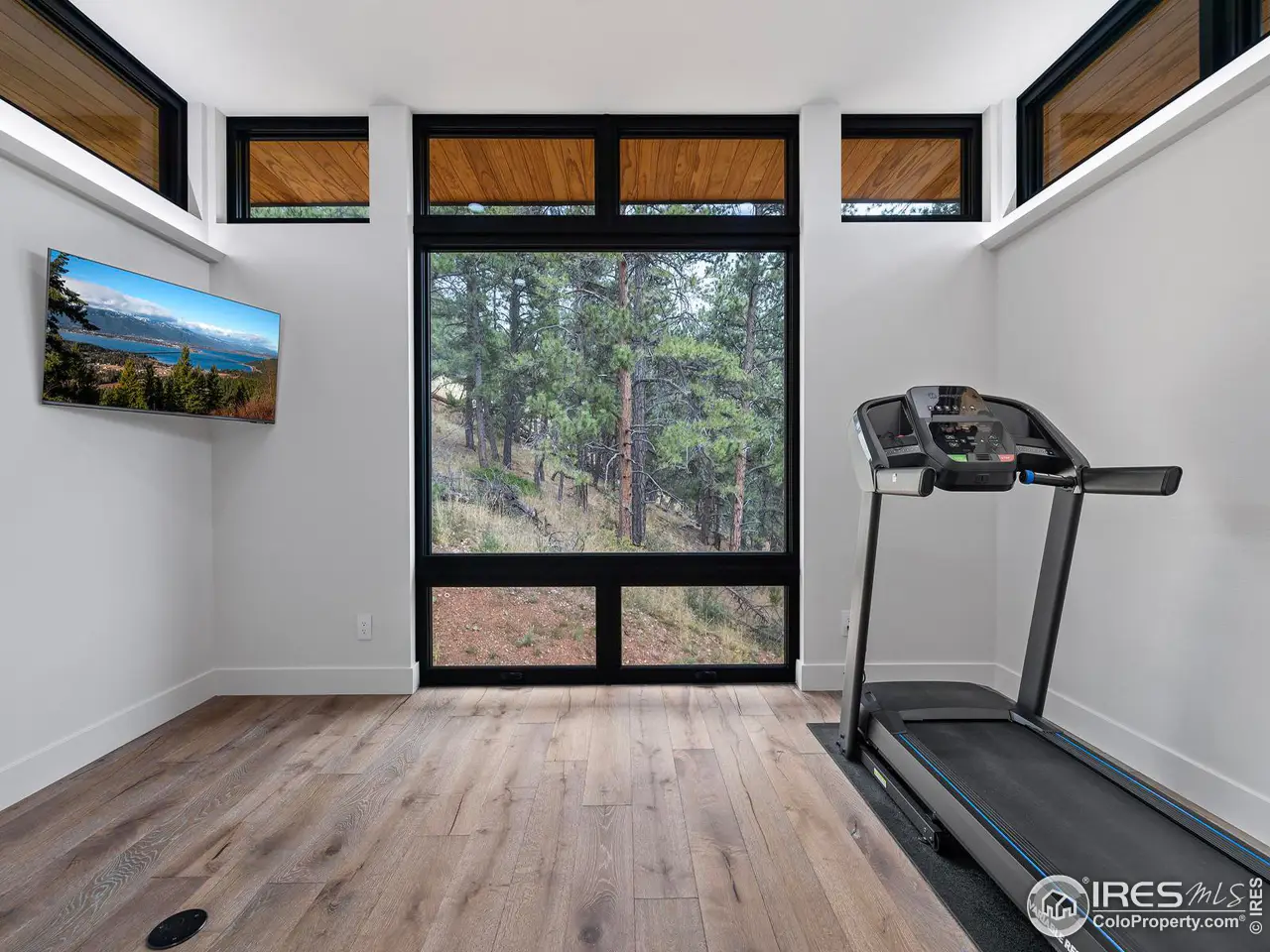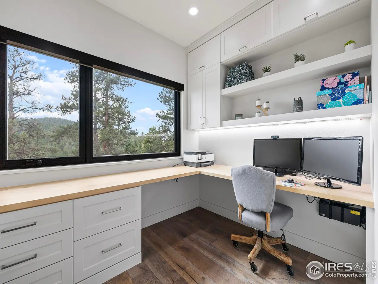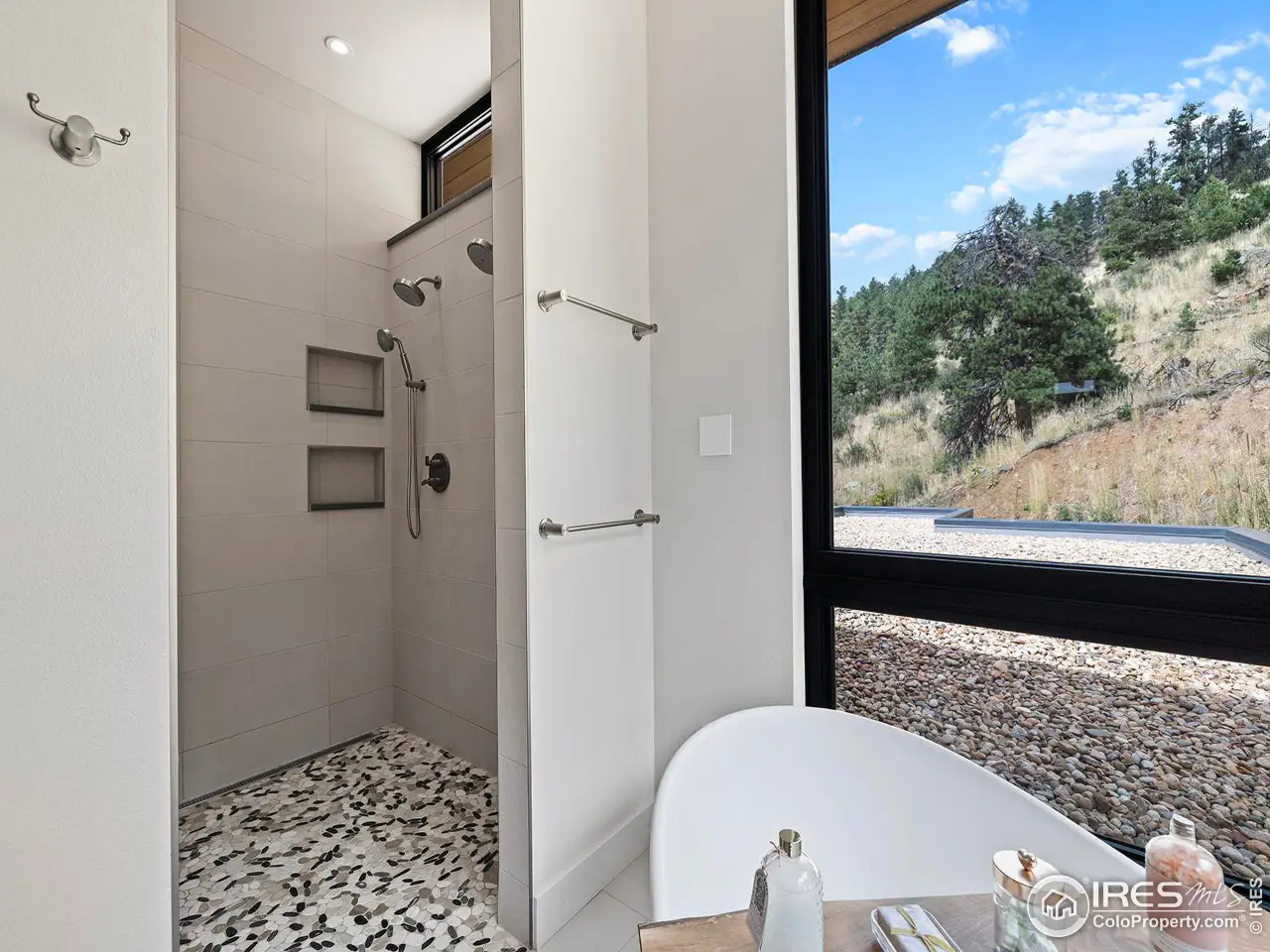 This is your rare chance to own a truly one-of-a-kind 6801 sq ft mountain modern retreat, complete with a brand new 2025 GMC HUMMER EV, on 40 private acres with private trail access to Horsetooth Mountain via Lory State Park, which borders the property on two sides. Whether you're seeking a full-time luxury residence, a high-end second home, or an excellent investment, this property delivers turnkey perfection with trusted service providers already in place. Only 12 miles from Fort Collins, with easy access to Boulder, RMNP, and DIA, this amazing home offers seamless luxury in one of Colorado's most iconic landscapes. Just three years old, impeccably designed, and tucked behind the gates of Redstone Canyon and surrounded by Roosevelt National Forest, this home offers views that go on forever, a profound sense of quiet, and nature in every direction. Floor-to-ceiling windows frame dramatic mountain vistas where passing storms and golden sunsets give way to full rainbows in the valley below - a rare, ever-changing display of Colorado's natural beauty. Crafted by the award-winning Vertical Arts and Hammersmith Structures, the architecture fuses warm materials like steel, stone, and concrete with soaring ceilings and wide-open sightlines. This is a home built for real living - thoughtful storage, durable materials, zero-maintenance and fireproof exterior finishes, and energy-conscious systems including solar/geothermal prep, EV chargers, heat pumps, and a 5,000-gallon water cistern. The home features a chef's kitchen with commercial appliances, a massive island, and a full outdoor kitchen. Thoughtfully designed living spaces include flexible offices, a spa-like main suite, en suite guest quarters, a bar and game room, home theater, and a reinforced safe room. Outdoors, enjoy private trail access and an oversized garage with EV chargers and optional third car bay. Every detail is handled-just move in and enjoy.