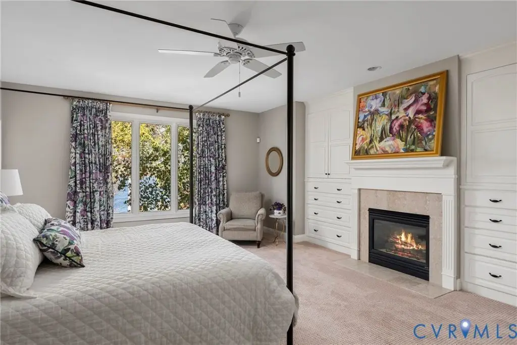 Welcome to this exceptional waterfront 5,884 sq ft home in the heart of Woodlake, offering panoramic water views and luxury at every turn. This 5-bedroom, 4.5-bath home sits on one of the best lots on the Swift Creek Reservoir, with multi-level outdoor spaces designed to take full advantage of the peaceful, private setting. The elegant entryway opens to a grand dining room with detailed trim and moldings. Soaring 10-foot ceilings and floor-to-ceiling windows in the formal living room showcase breathtaking views of the reservoir, while the inviting family room features a gas fireplace and custom-built bookcases. The bright, open kitchen has been freshly painted in 2024 and includes a large center island, new range, and expansive breakfast area-ideal for entertaining. The first-floor primary suite is a true retreat, offering abundant built-in storage, a gas fireplace, and a spa-inspired bath with tiled floors and a soaking tub with tile surround. Upstairs, you'll find three spacious bedrooms-including one with a private ensuite bath and walk-in closet. The finished walkout basement is an entertainer's dream and adds another layer of luxury with a fifth bedroom suite, a full bar, gas fireplace, den, exercise room with mirrors, and direct access to multiple outdoor living spaces. Relax year-round on the breezy covered porch with gas fireplace or unwind on the lower patio with stamped concrete, wood burning fireplace and a new built-in Alfresco grill. Additional highlights include a freshly painted interior and trim (2024), three interior fireplaces, and a convenient 3-bay side-entry garage. Enjoy the full Woodlake lifestyle with access to miles of paved trails, tennis and swim clubs, fitness center, parks, fishing docks, boat launch ramps, and more. Homes like this rarely come to market-don't miss your chance to experience premier waterfront living in one of Chesterfield's most desirable communities.